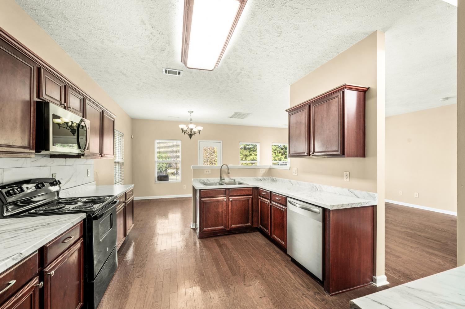 Welcome to this beautiful 3-bedroom, 2-bathroom home in Brentwood, perfectly situated within walking distance of local shops and businesses. Spanning 2,206 square feet, this charming property combines comfort, convenience, and style. Spacious Front Yard & Covered Porch – Ideal for relaxing or entertaining outdoors. The Inviting Living Area with Hardwood floors and a cozy fireplace creates a warm, welcoming atmosphere. Open Kitchen – Flooded with natural light, featuring an eat-in area with views of the large, fenced-in backyard. Primary Suite (Main Floor) – Includes a tub, separate shower, and double vanities for added luxury. Upstairs – Two additional bedrooms plus a bonus room located above the spacious two-car garage.