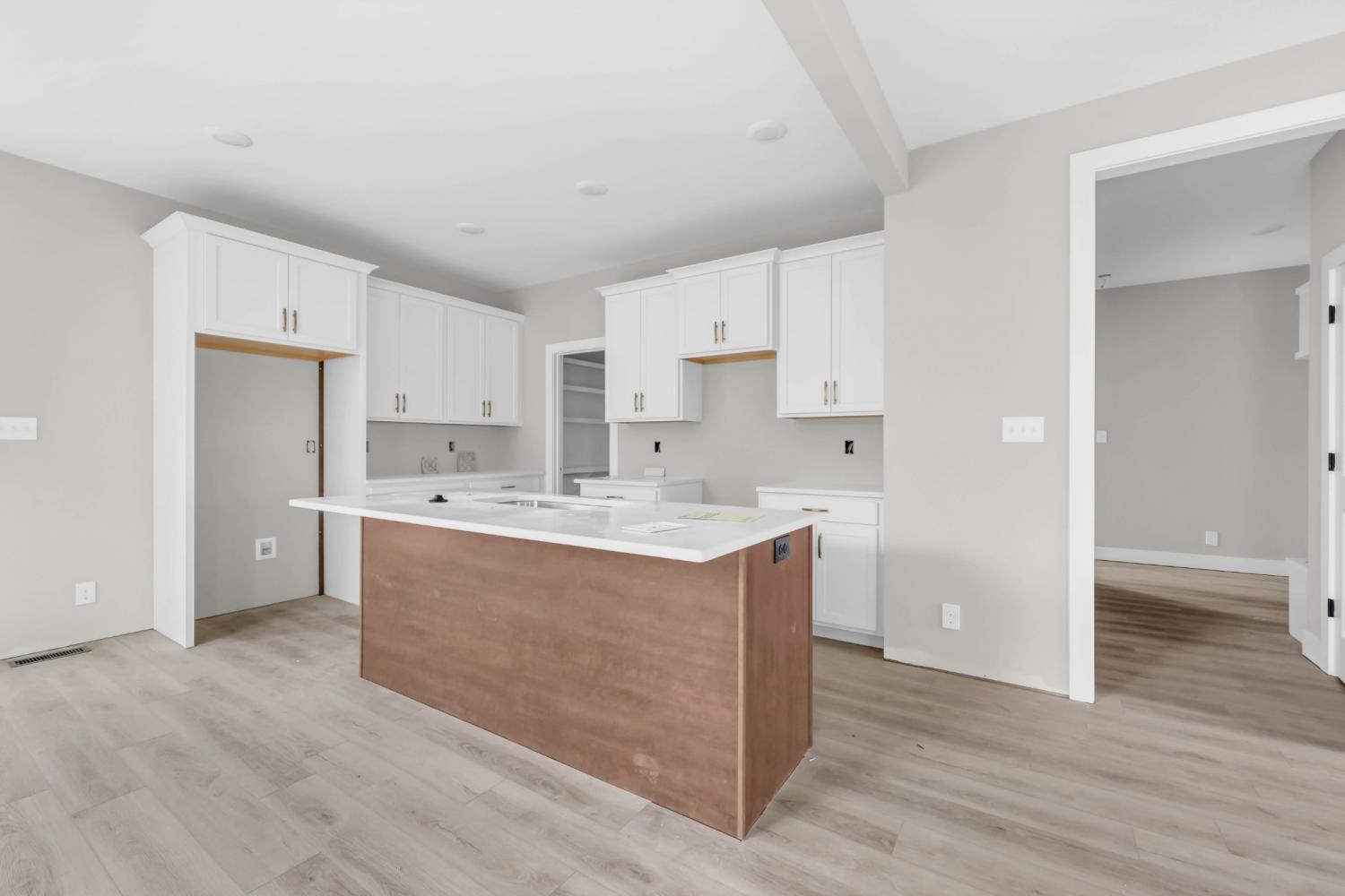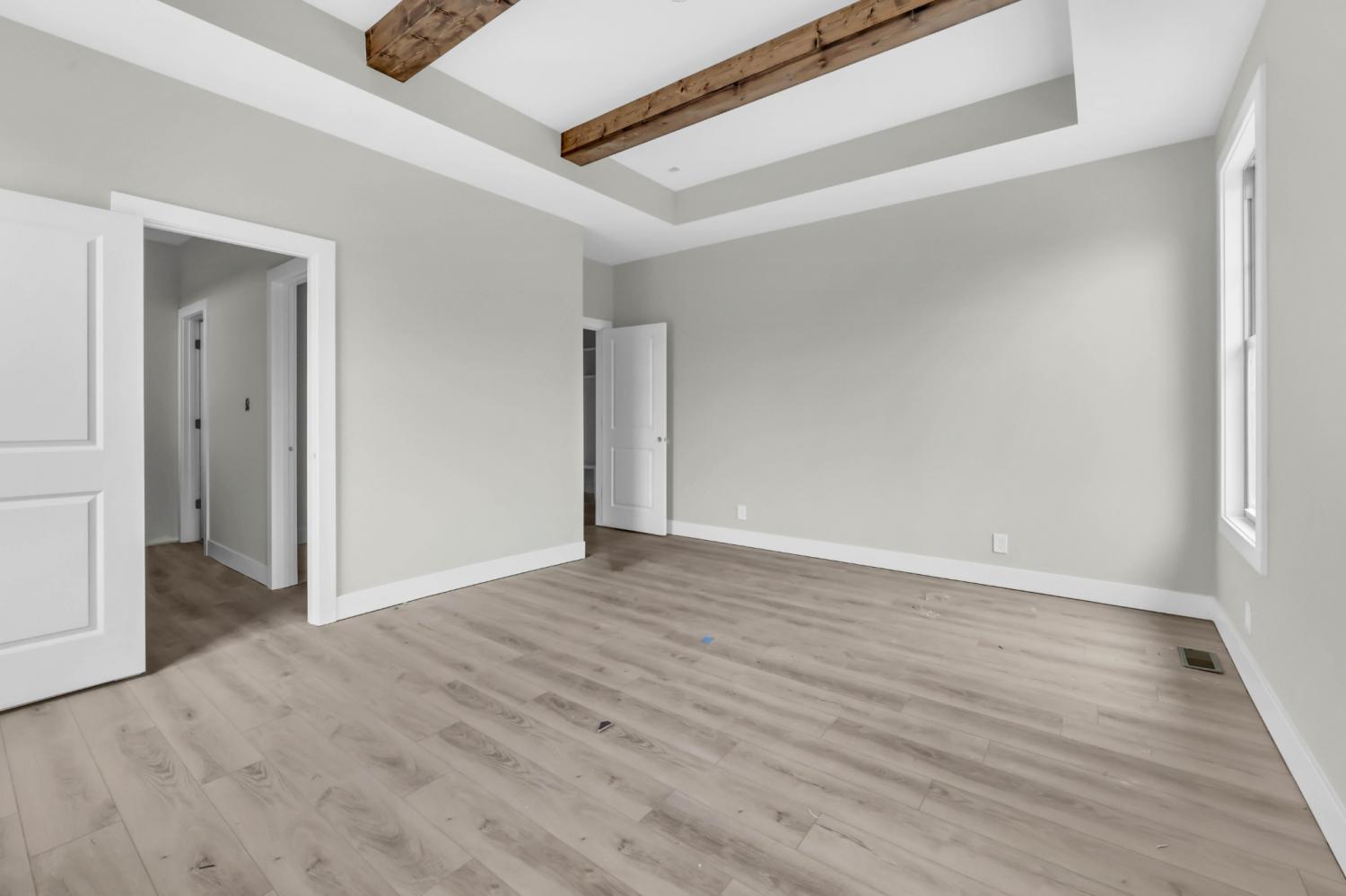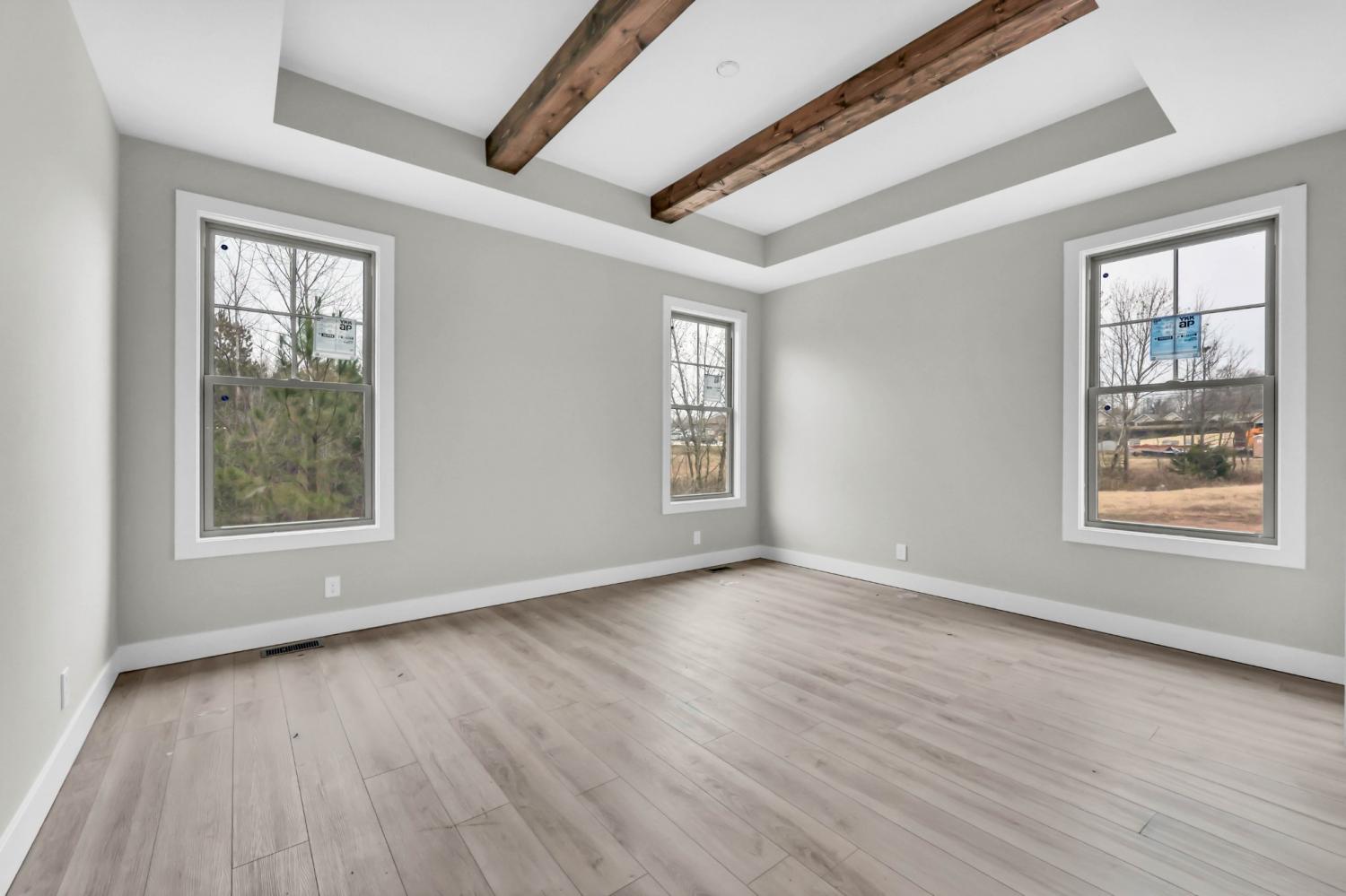 This beautifully designed home blends timeless style with thoughtful functionality. Step through the impressive two-story foyer (11x11) filled with natural light, setting the tone for the rest of this warm and inviting space. The primary suite offers a tranquil retreat with a tray ceiling accented by wood beams, while the spacious office (10x11) features a vaulted ceiling with beams—perfect for working or studying from home. The eat-in kitchen is both practical and stylish, complete with a walk-in pantry and easy flow into the living and dining areas. A generous mudroom (8x9) and laundry room (10x6) add convenience and storage for busy households. Enjoy peaceful mornings and cozy evenings on the covered back porch, overlooking the private backyard. A walk-in attic (21x27) provides exceptional storage or potential for future expansion. Located in a desirable neighborhood, this home combines beautiful craftsmanship with modern livability—perfect for those who appreciate thoughtful details and comfortable spaces.