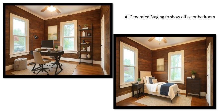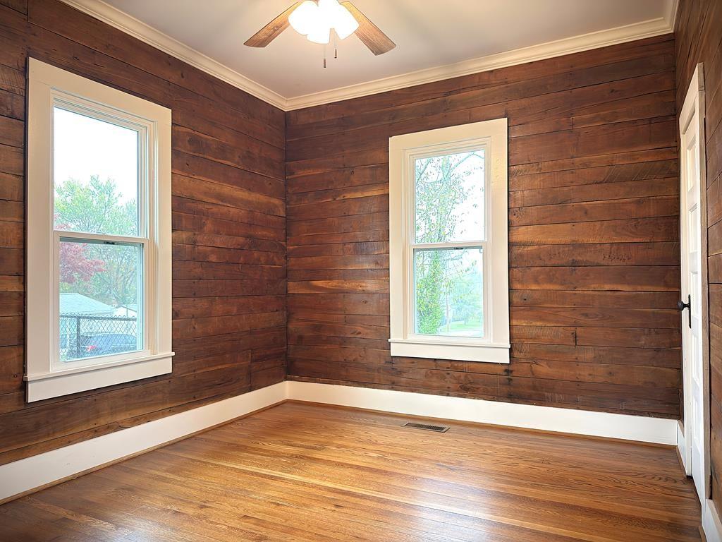 Looking for an investment property with short-term rental potential or a quality home to start your family or down-size in style? This cozy bungalow is perfect! Previously built by a family that owned a sawmill, the interior walls are all walnut and cherry planks. Original hardwood floors have been skillfully refinished, ALL the windows have been replaced and the back yard fenced. Conveniently located and completely remodeled within the last few years, This 2 bed/2 bath has it all!