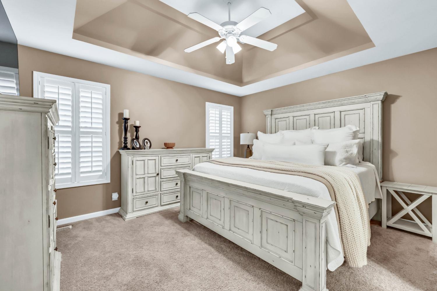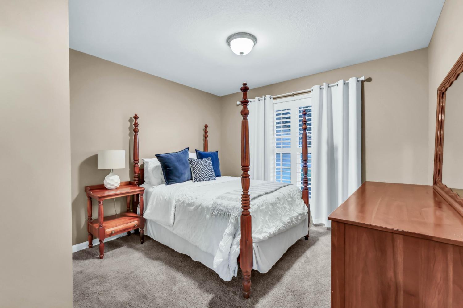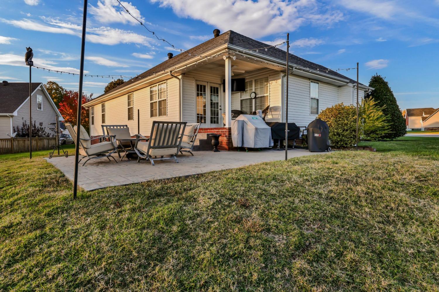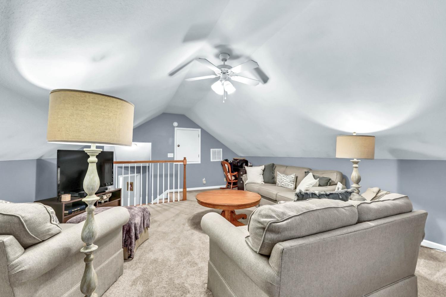 This super-cute home offers the perfect blend of comfort, style, and convenience! Step inside to a welcoming living room with a cozy gas fireplace and plantation blinds that add a touch of Southern charm. The eat-in kitchen features granite countertops, a pantry, and plenty of space for family meals. The primary suite includes a tray ceiling, spacious closet, and private bath, while the hall bath is beautifully finished with tile. Upstairs, you’ll find a large bonus room — perfect for a playroom, home office, or media space. Enjoy outdoor living on the covered back porch and separate patio, ideal for relaxing or entertaining. Additional highlights include a contemporary style 4-lite fiberglass front door and a friendly well-kept neighborhood close to shopping, dining, and schools. Come see why this one feels like home the moment you walk through the door!