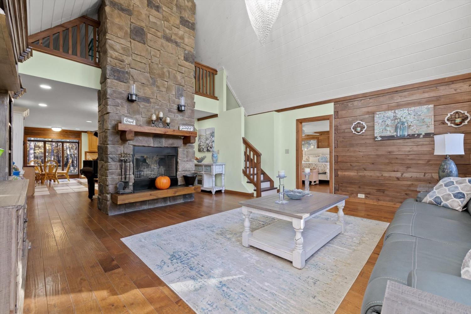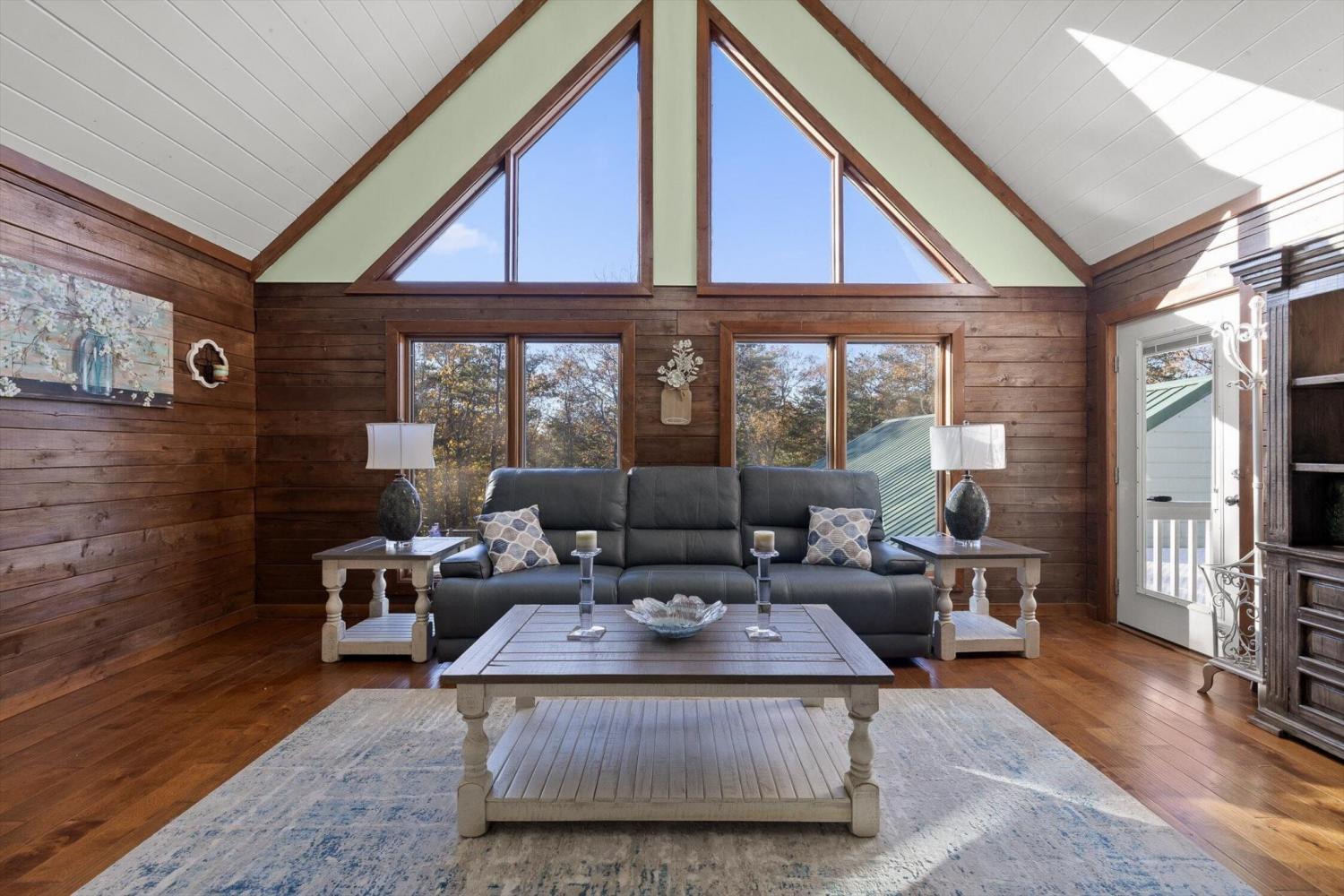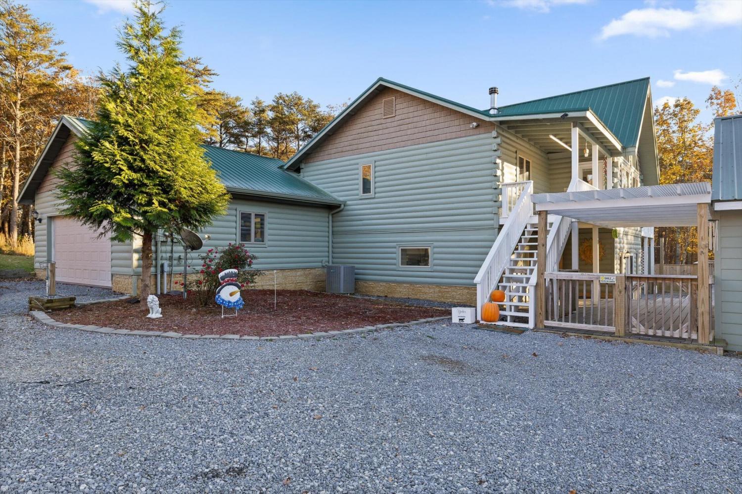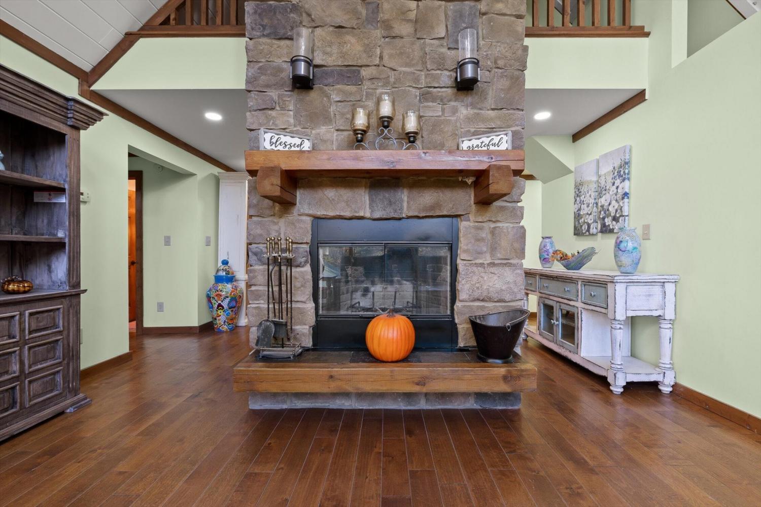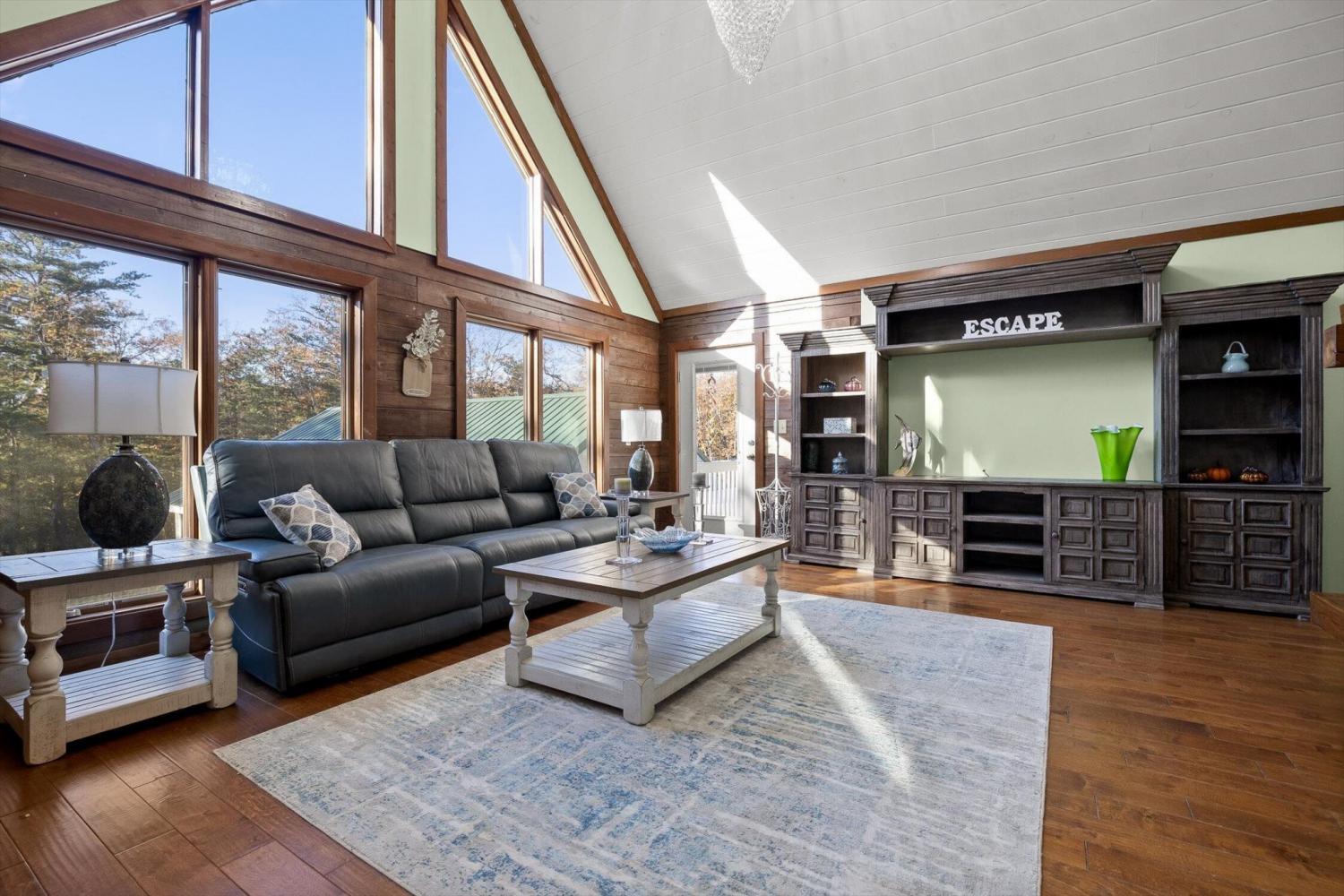 Welcome to 504 Wolf Run, a breathtaking A-frame stone and hardwood log cabin nestled in the sought-after Lookout Highlands community. Set on just under 5.5 acres, this property blends rustic craftsmanship with modern versatility—perfect for multi-family living or a beautiful residential retreat. The main home features five bedrooms and four bathrooms, showcasing warm wood finishes, vaulted ceilings, and the timeless charm of exposed beams. With three full kitchens, the layout offers incredible flexibility for hosting, extended family, or rental opportunities. Multiple expansive decks provide ideal spaces for outdoor living, while the in-ground pool, just needing a quick refresh, is ready to shine again. A separate guest house or living space adds even more value, offering privacy for visitors or potential income. Located within Lookout Highlands, residents enjoy a peaceful, gated mountain community with access to lakes for fishing and kayaking, scenic hiking trails leading to waterfalls, and a community pavilion for gatherings and events—all surrounded by natural beauty and modern conveniences like high-speed fiber internet. With its timeless log cabin design, flexible living spaces, and access to some of the area's most stunning scenery, 504 Wolf Run is more than a home—it's a lifestyle of comfort, connection, and mountain elegance.