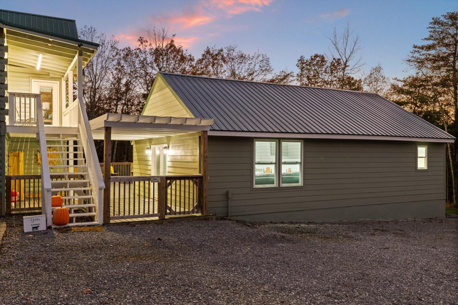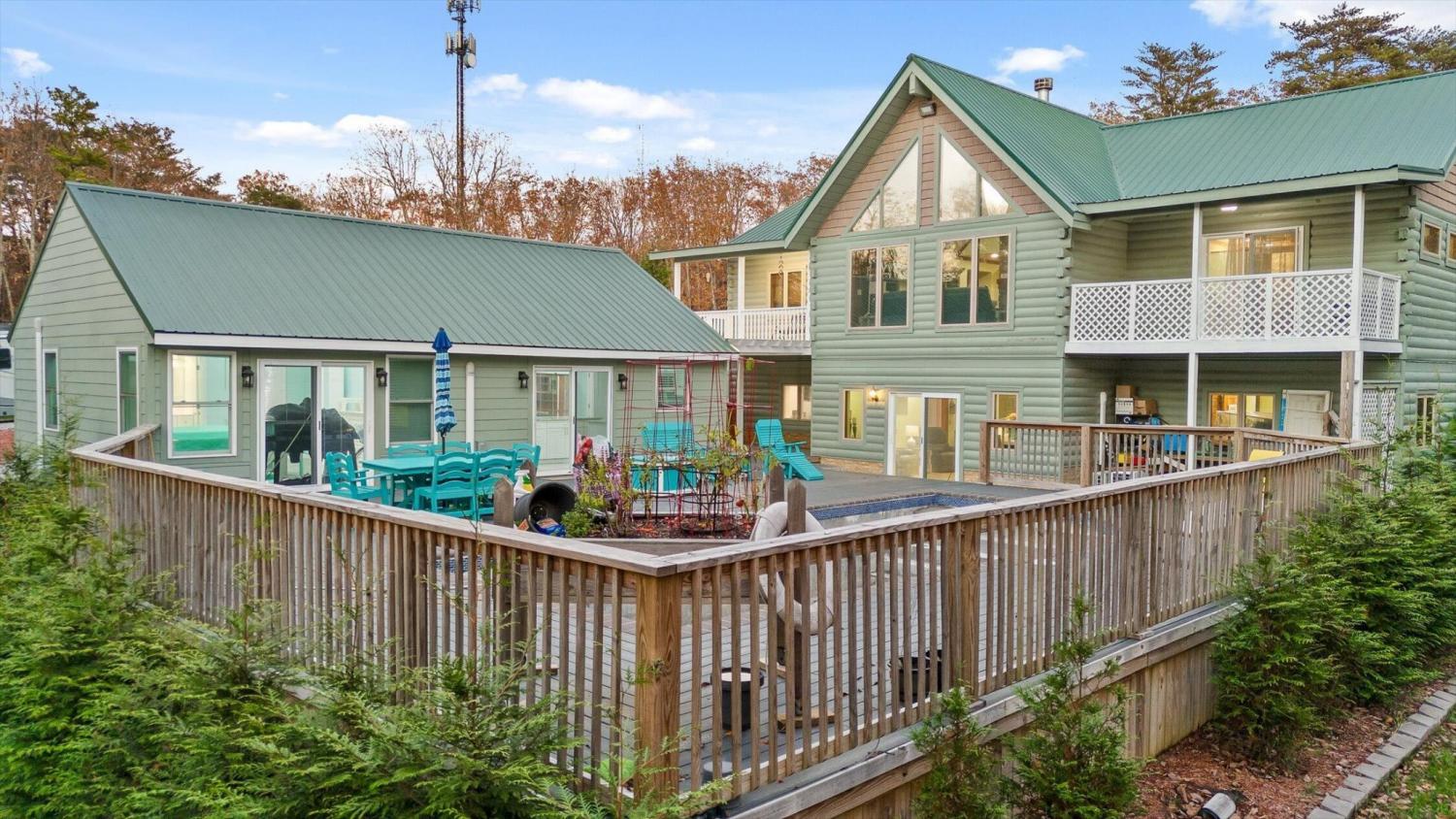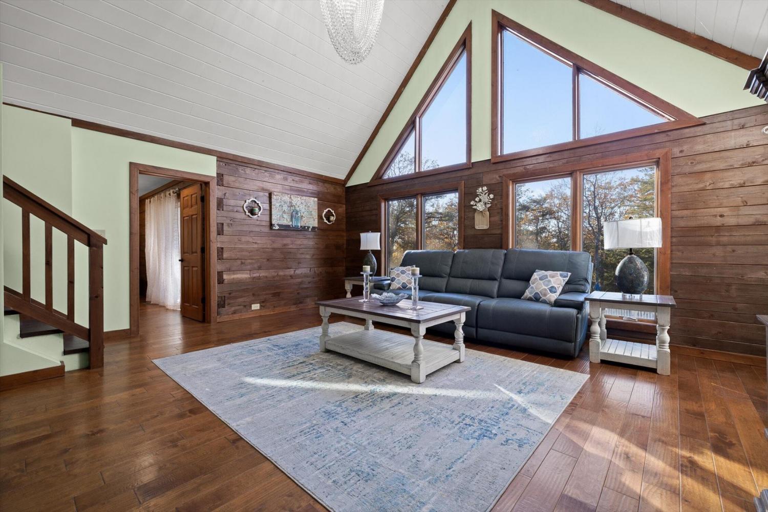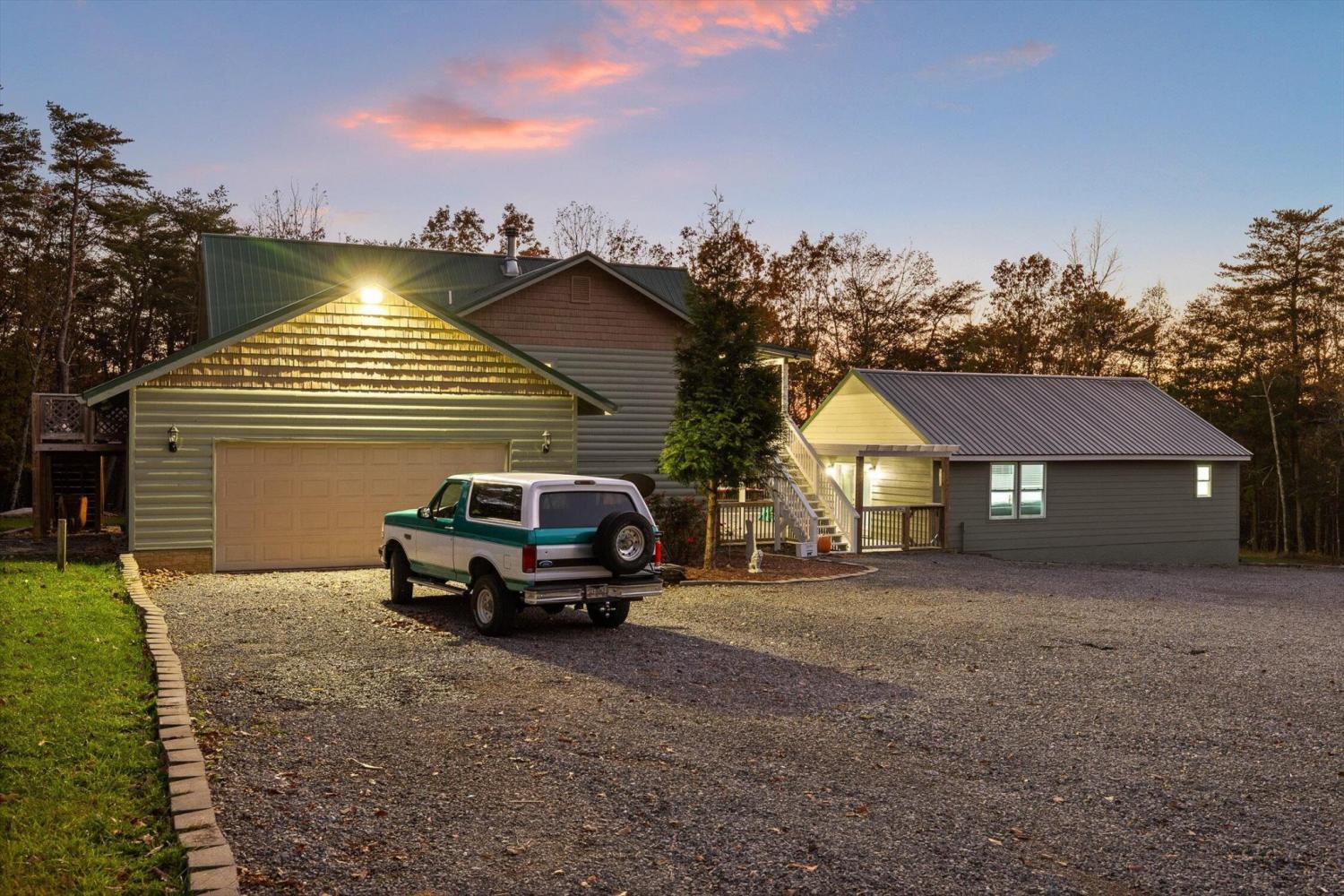 Welcome to 504 Wolf Run, a breathtaking A-frame stone and hardwood log cabin nestled in the sought-after Lookout Highlands community. Set on just under 5.5 acres, this property blends rustic craftsmanship with modern versatility—perfect for multi-family living or a beautiful residential retreat. The main home features five bedrooms and four bathrooms, showcasing warm wood finishes, vaulted ceilings, and the timeless charm of exposed beams. With three full kitchens, the layout offers incredible flexibility for hosting, extended family, or rental opportunities. Multiple expansive decks provide ideal spaces for outdoor living, while the in-ground pool, just needing a quick refresh, is ready to shine again. A separate guest house or living space adds even more value, offering privacy for visitors or potential income. Located within Lookout Highlands, residents enjoy a peaceful, gated mountain community with access to lakes for fishing and kayaking, scenic hiking trails leading to waterfalls, and a community pavilion for gatherings and events—all surrounded by natural beauty and modern conveniences like high-speed fiber internet. With its timeless log cabin design, flexible living spaces, and access to some of the area's most stunning scenery, 504 Wolf Run is more than a home—it's a lifestyle of comfort, connection, and mountain elegance.