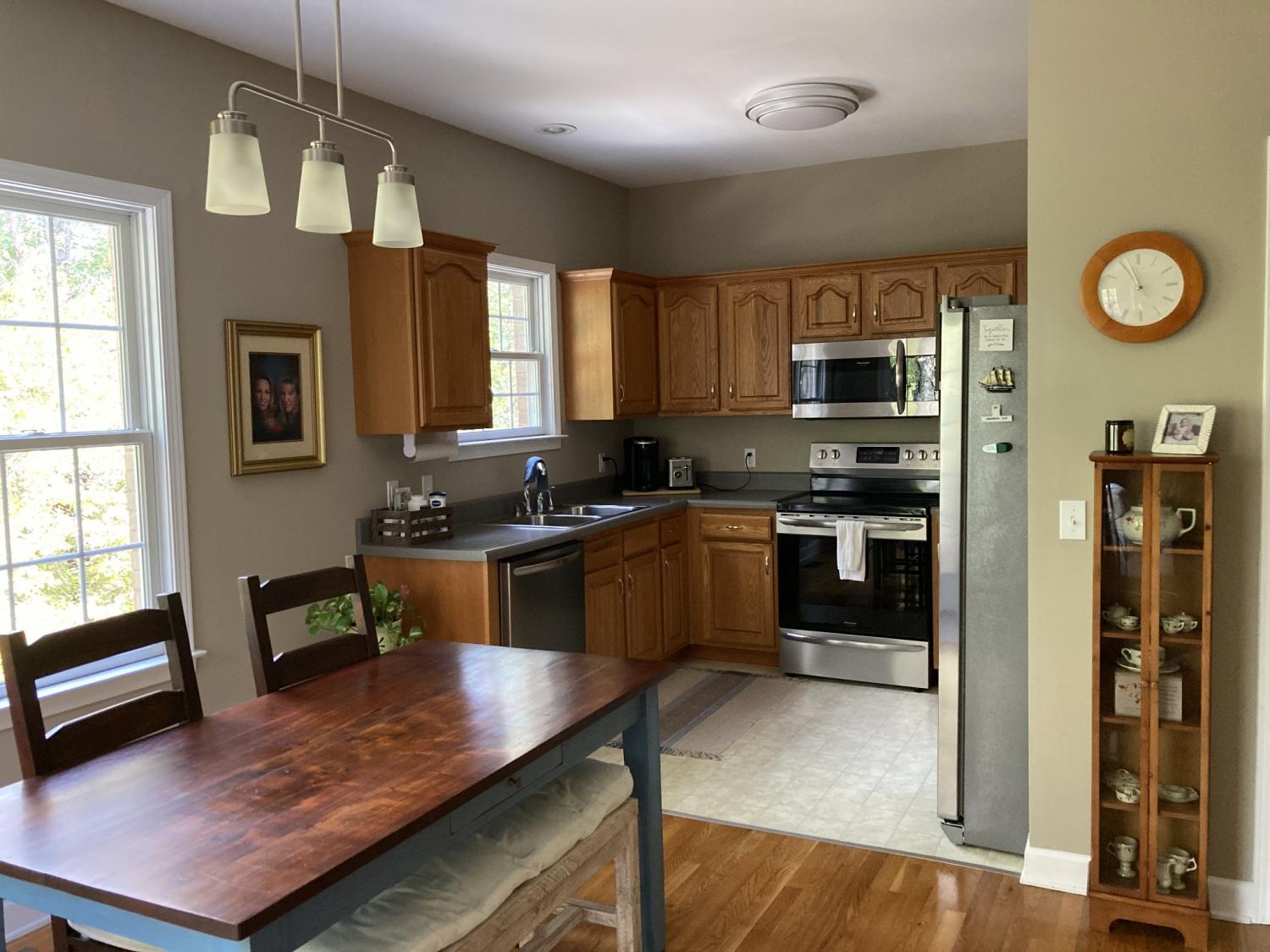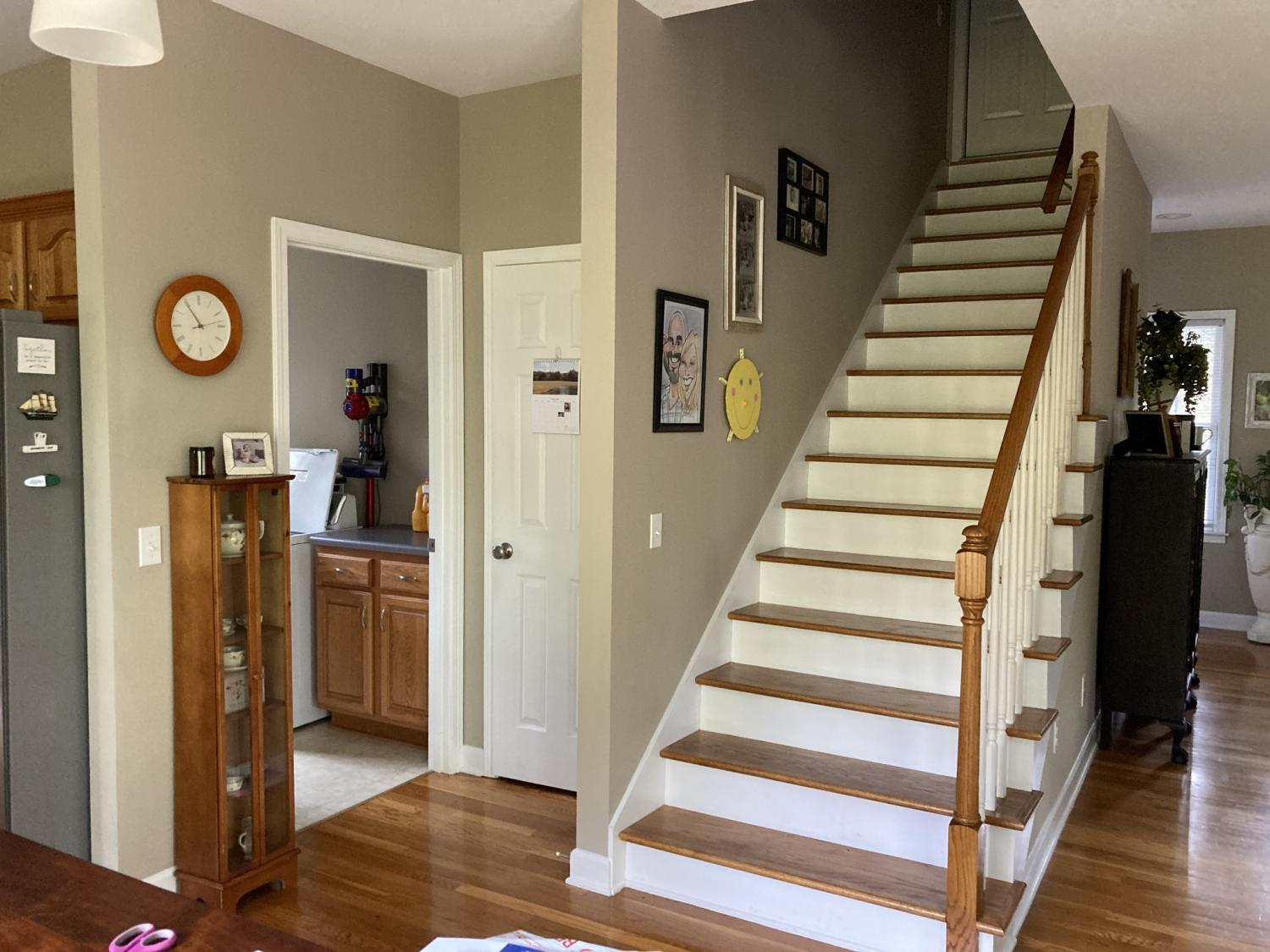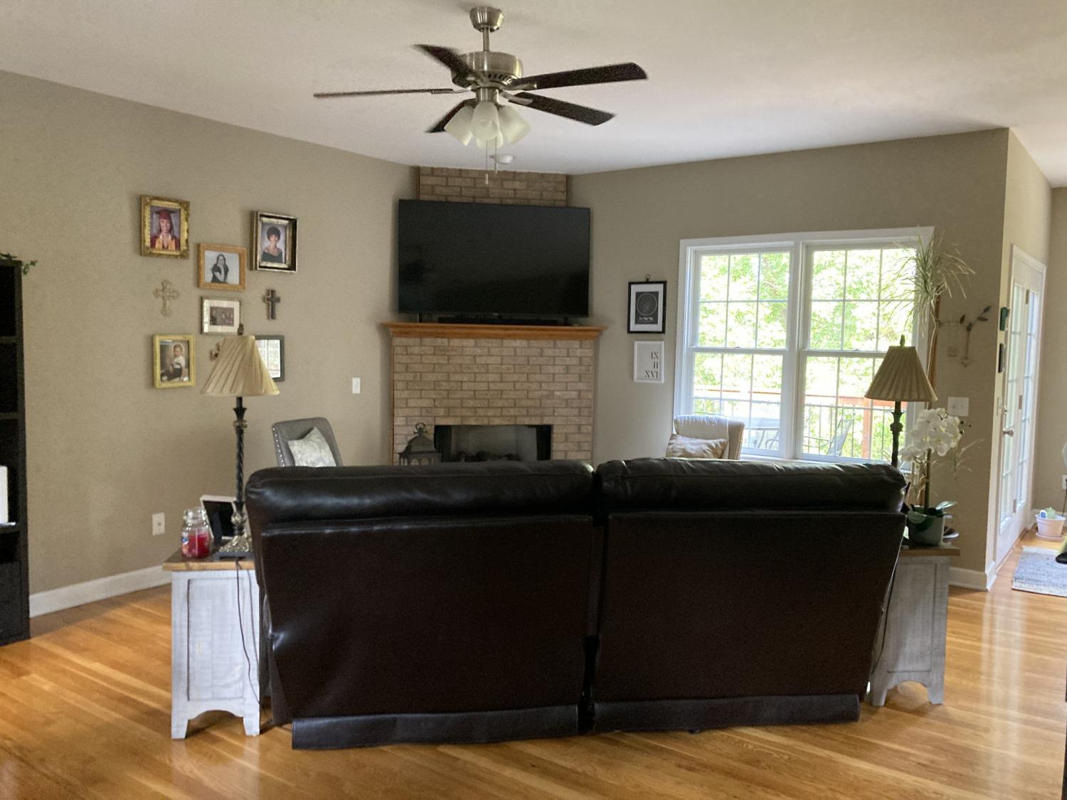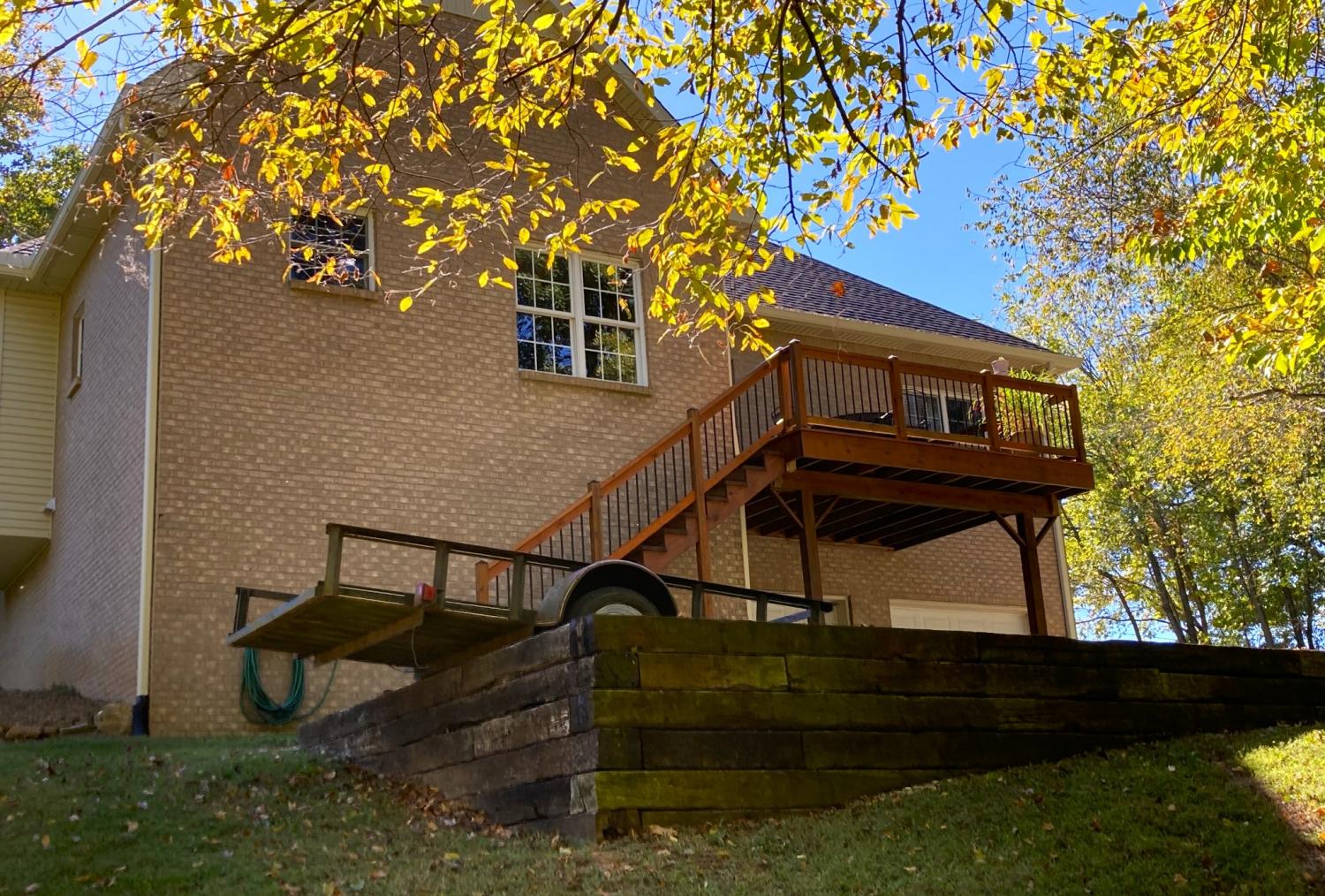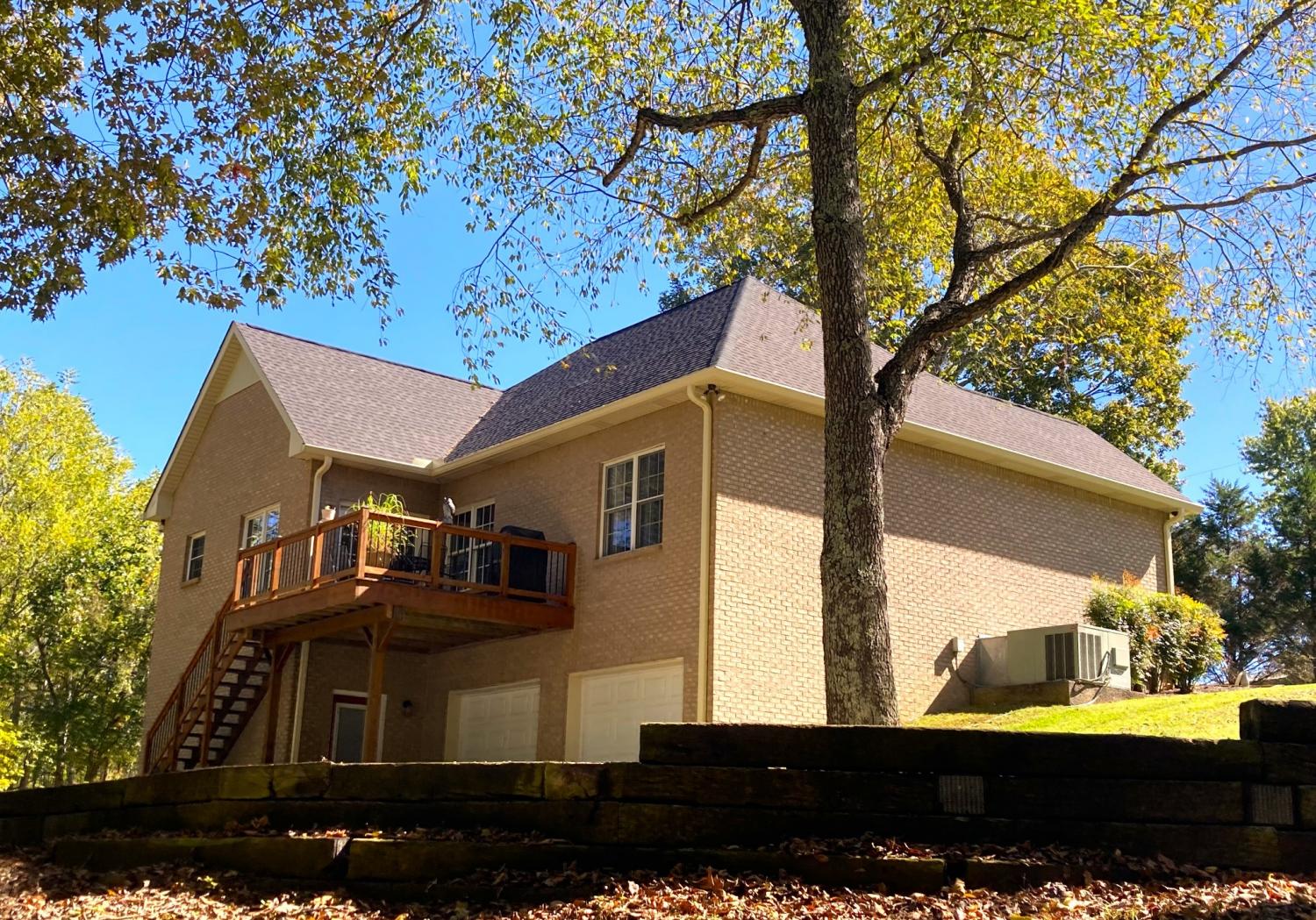 Beautiful views, country setting, and excellent location in Burns. Lots of privacy and room for expansion on third floor. All brick construction with heated/cooled walkout basement and oversized two-car garage with two areas for extra storage space. Nine-foot ceilings, large and airy living area with cozy gas log fireplace and hardwood flooring. Deck overlooking quiet wooded area is four years old. Deck off master bedroom is three years old. Roof is less than three years old. Basement renovated with stained concrete floor, 9 1/2 foot ceilings, and exposed black rafters. Two year-old roof and one-year old oversized gutters with leaf guards. Third floor is expandable with approximately 1,000 extra square feet available to add living space.