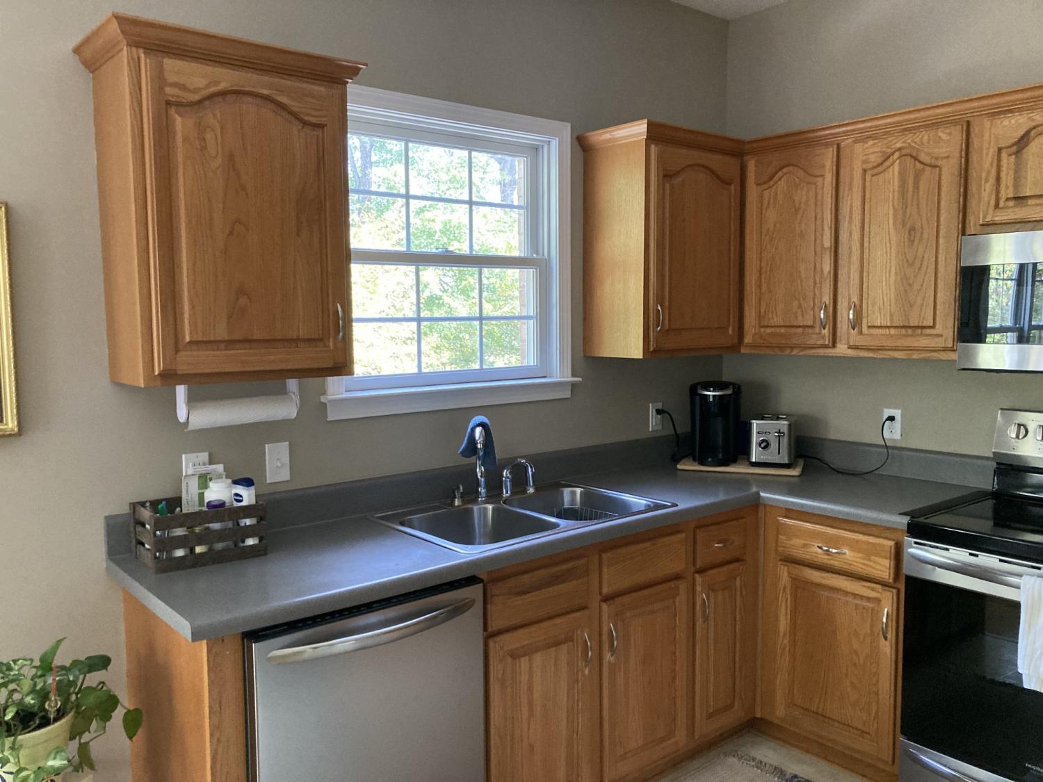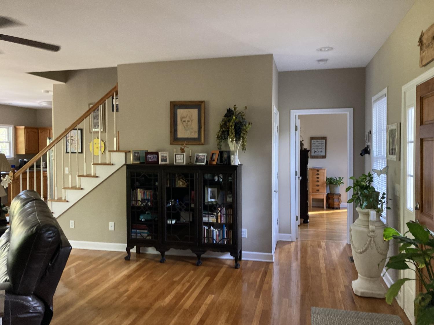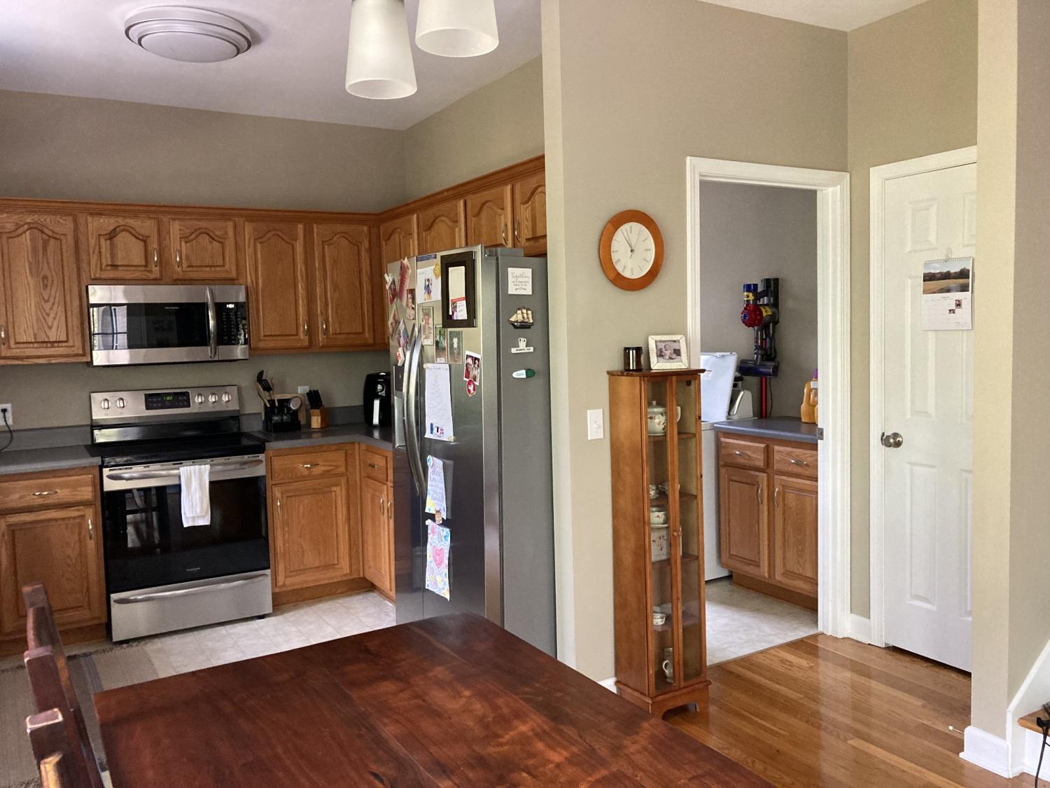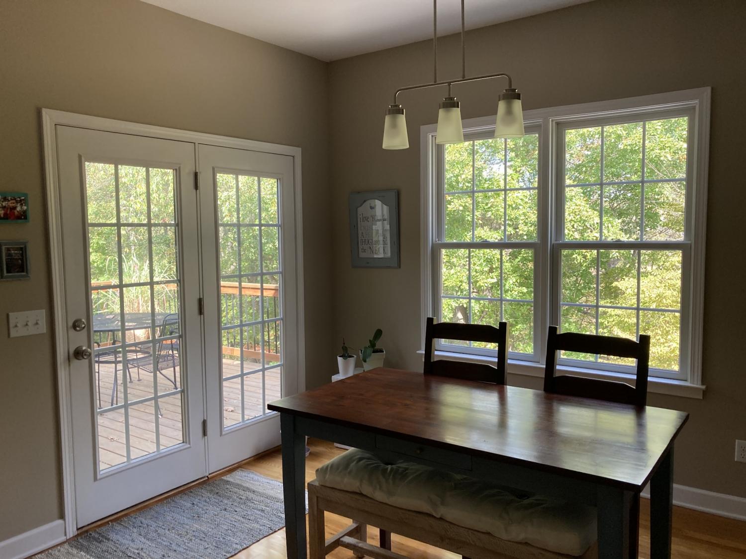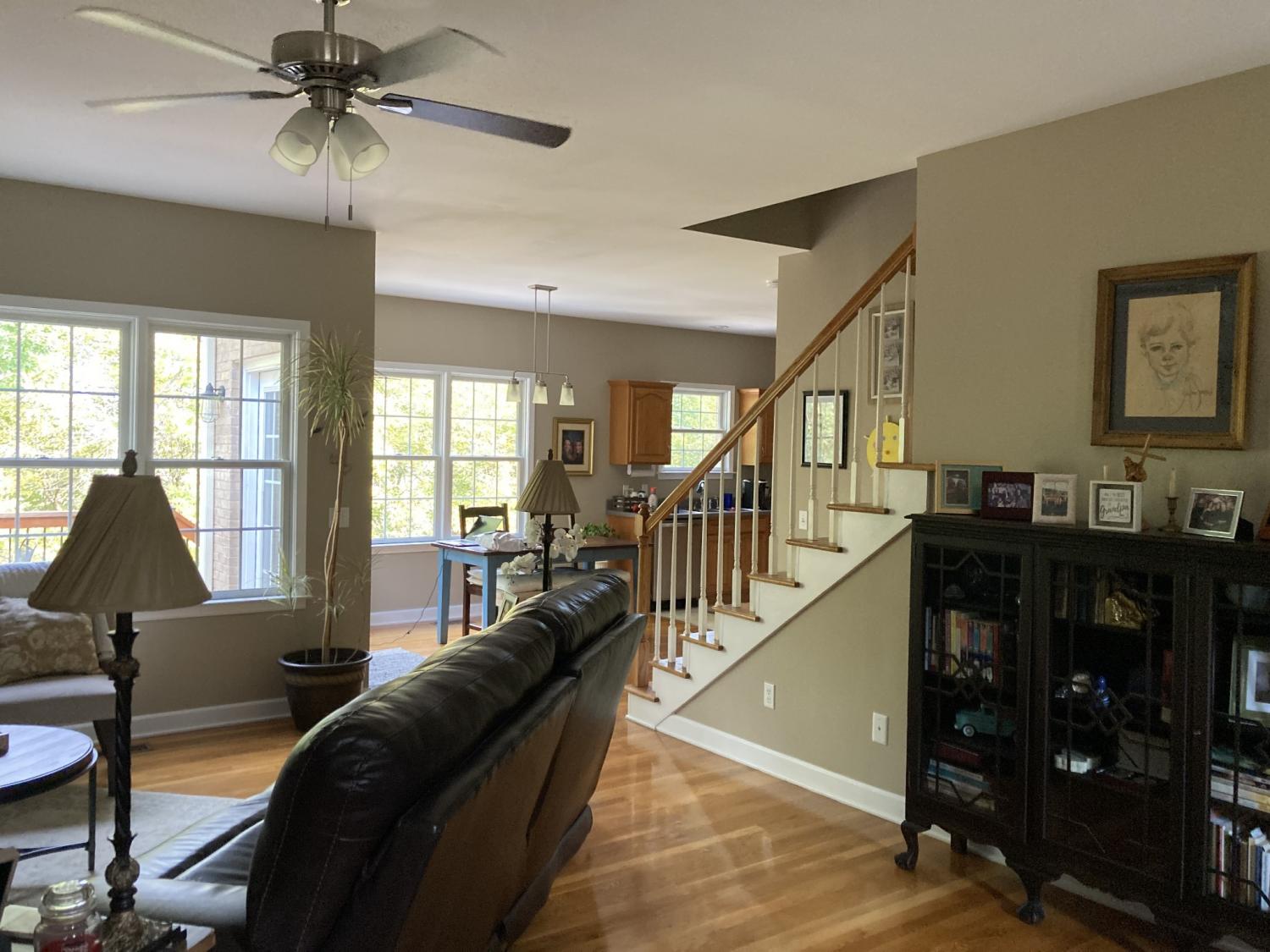 Beautiful views, country setting, and excellent location in Burns. Lots of privacy and room for expansion on third floor. All brick construction with heated/cooled walkout basement and oversized two-car garage with two areas for extra storage space. Nine-foot ceilings, large and airy living area with cozy gas log fireplace and hardwood flooring. Deck overlooking quiet wooded area is four years old. Deck off master bedroom is three years old. Roof is less than three years old. Basement renovated with stained concrete floor, 9 1/2 foot ceilings, and exposed black rafters. Two year-old roof and one-year old oversized gutters with leaf guards. Third floor is expandable with approximately 1,000 extra square feet available to add living space.