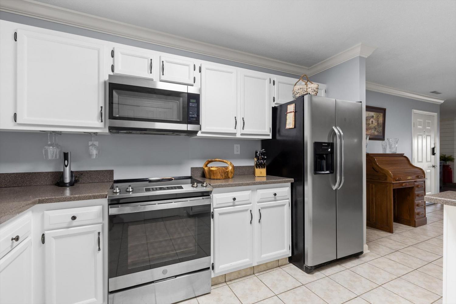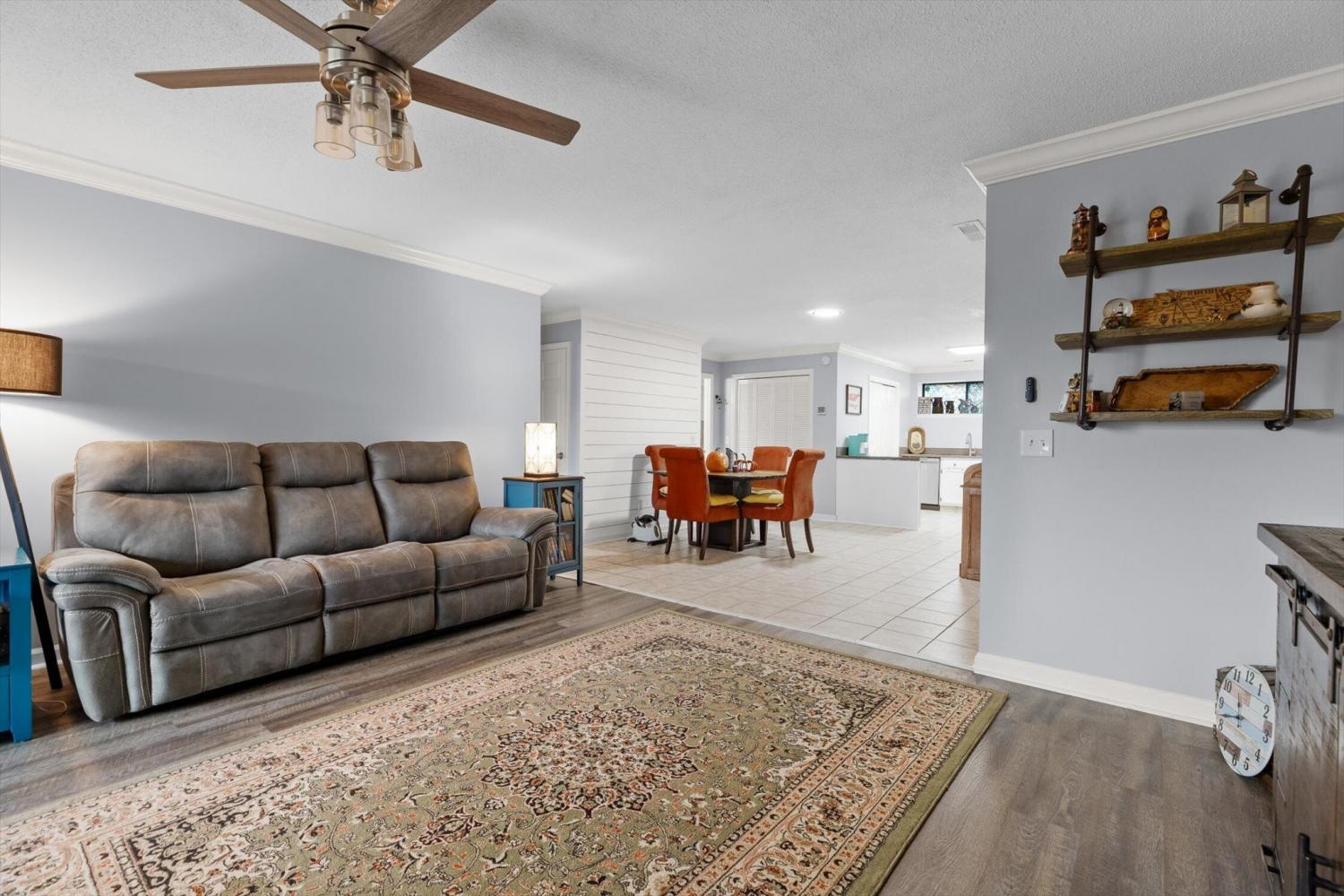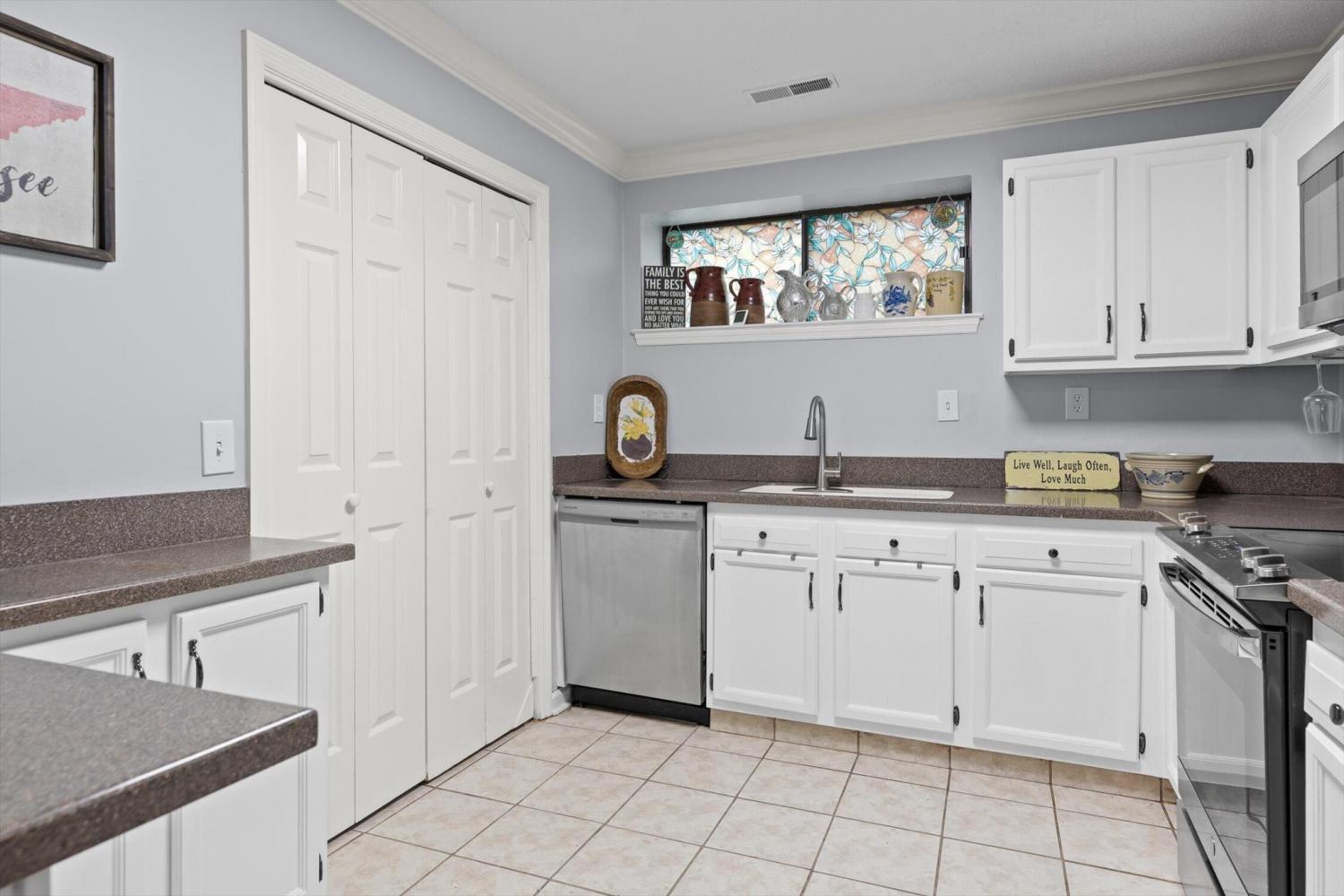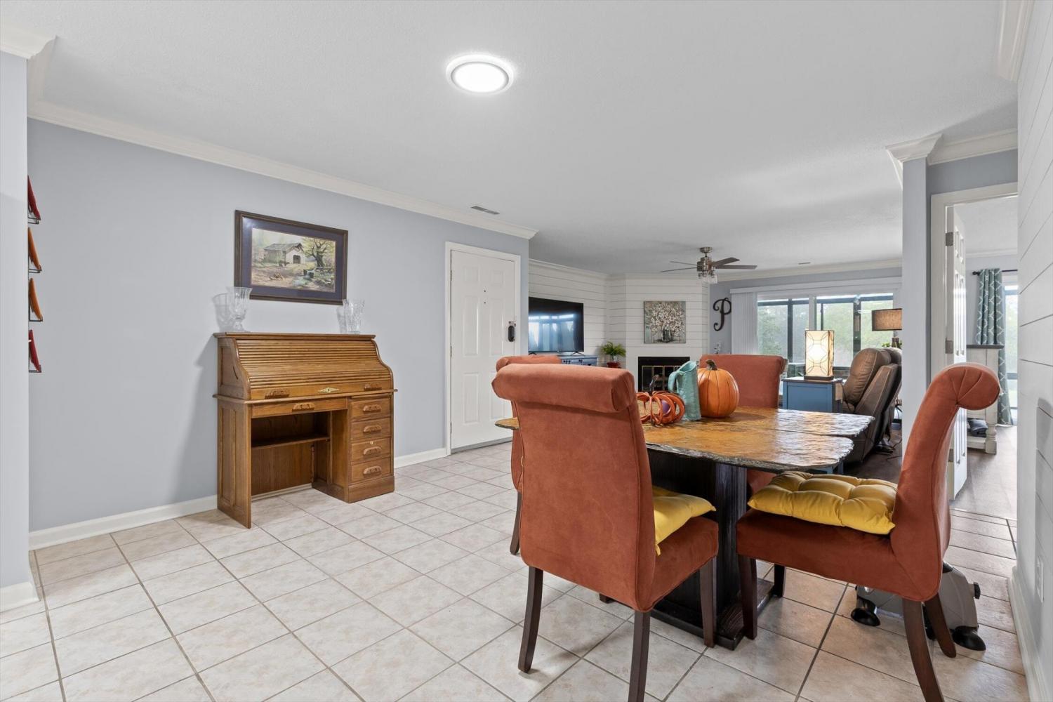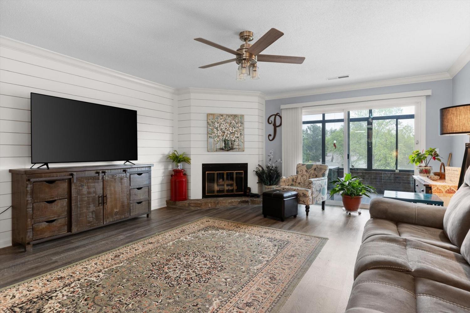 Welcome to the easy living, low-maintenance life in the sought-after Lakeshore community. This updated ground-level 2-bed, 2-bath condo is minutes to Hixson shopping, dining, and HWY 153. Inside, enjoy newer LVP flooring and lighting, plus neutral paint throughout. The living room features a stylish shiplap accent wall and fireplace, and opens seamlessly to the dining area and kitchen—ideal for everyday living and entertaining. The kitchen offers stainless appliances and abundant cabinet and counter space. Just off the living room, the enclosed patio creates a versatile flex room—perfect as a home office, reading nook, or hobby porch—overlooking a grassy common area with a distant lake view. The owner's suite includes a large walk-in closet and a private bath; the second bedroom also enjoys its own bath, ideal for guests or a roommate setup. Here is your rare opportunity to own a true ground-level unit in Lakeshore with your own covered parking. And don't forget to check out the huge storage closet just off the sunporch!