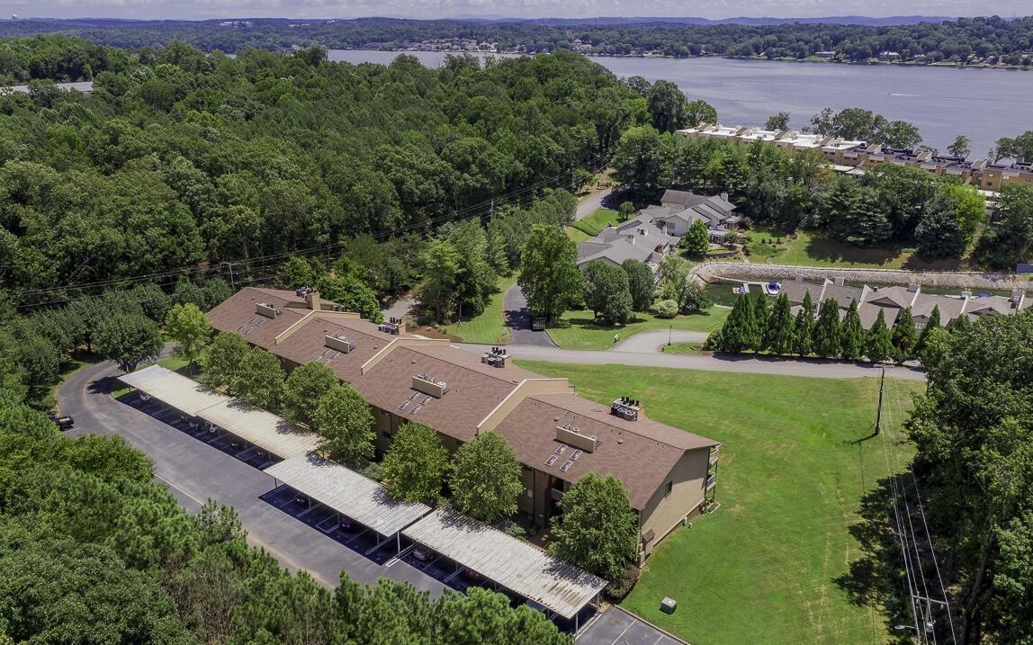 North on Hwy 153, take the exit for Lake Resort Drive, turn right on Lake Resort Terrace, turn left on Lake Shore Lane, turn left into Inlet Villas,