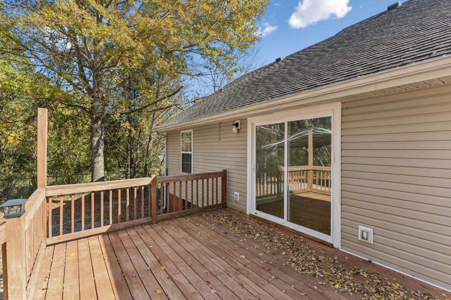Welcome to this beautifully maintained 3-bedroom, 2-bath home nestled on almost an acre of peaceful land with no HOA restrictions! Step inside to find an inviting open layout featuring tray ceilings and elegant crown molding in the living room, along with stunning hardwood floors throughout. The spacious primary suite boasts vaulted ceilings and ample natural light, creating a relaxing retreat. The kitchen is well-appointed with recessed lighting and plenty of cabinet space, perfect for everyday living or entertaining. Enjoy the outdoors on the large back deck overlooking the expansive yard, or relax on the covered front porch. The fenced front yard offers both privacy and charm, ideal for pets or play. Additional features include double closets in the bedrooms, new ductwork, and an attached 2-car garage. With its blend of modern touches, comfortable living spaces, and a serene setting, this home is ready for you to make it your own!