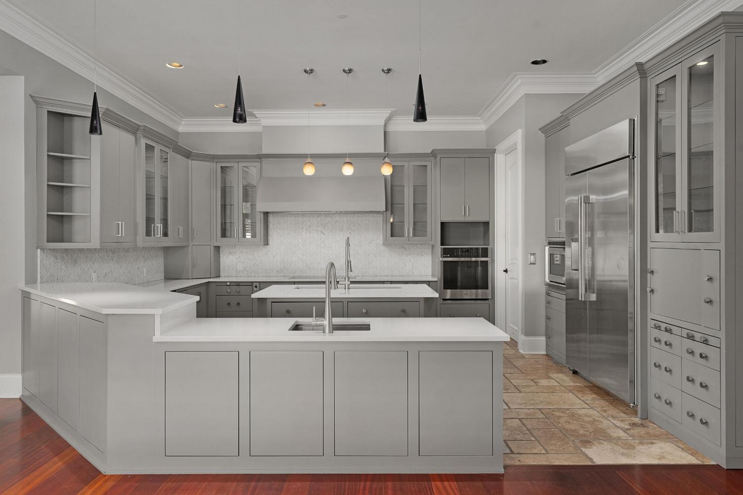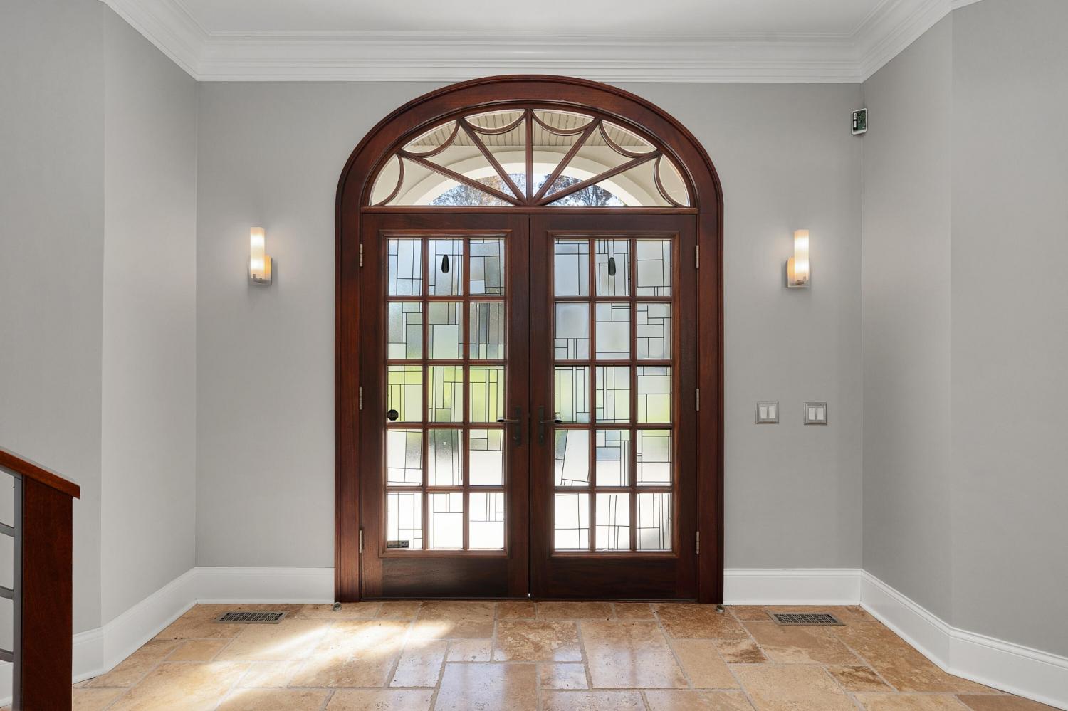 All brick, custom home in the desirable Bentley Park gated community in the heart of Cleveland. This elegant, yet comfortable 4 bedrooms, 4 full and 2 half bath home boasts a heated pool and fantastic outdoor living spaces and is positioned on a .62 +/-acre lot with a wooded backdrop providing a lovely natural setting. The neighborhood also offers sidewalks, a central park with fountain and patio areas, as well as a clubhouse with fitness center and tennis courts. This spacious home offers accessibility features throughout. including an elevator, which could be adjusted by the new owner if desired. Entry to the home is via a beautiful double wood and leaded glass door to a 2-story foyer setting the tone for your tour. You will immediately note the lofty ceilings, gorgeous crown moldings, stone and Brazilian Cherry hardwood flooring, decorative and recessed lighting, granite and quartz countertops, custom cabinetry, plantation shutters, specialty ceilings, amazing closet systems, 5 fireplaces, and more. The heart of the home is the wonderfully open great room, kitchen and dining room. The great room has a gas fireplace, built-in shelving and French doors to the pool and patio areas. The dining room also has a gas fireplace providing warmth and ambiance for every meal. The kitchen has a center island with elongated stainless sink, a 2nd prep sink, stainless appliances including 2 Bosch dishwashers, glass display cabinetry, pull-out drawers, and a large walk-in pantry. The main level laundry room is just steps away via a mudroom area which has access to the deep 2-bay garage and the side covered entry - perfect for loading or unloading and everyday ingress and egress. The luxurious primary suite is located on the other side of the house and is a retreat unto itself. The bedroom has a gas fireplace, French doors to the pool and patio area, and a walk-in closet that will inspire envy.