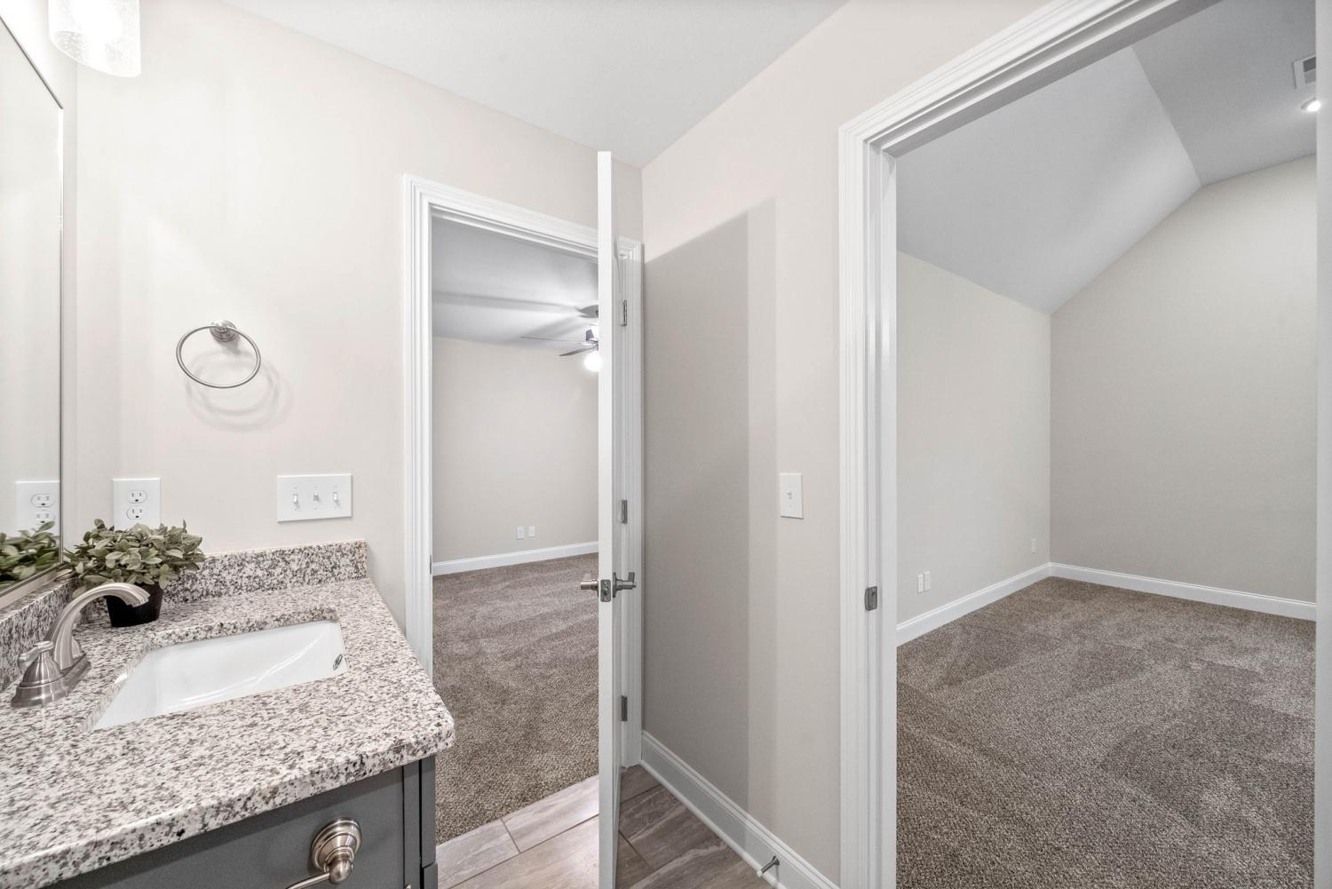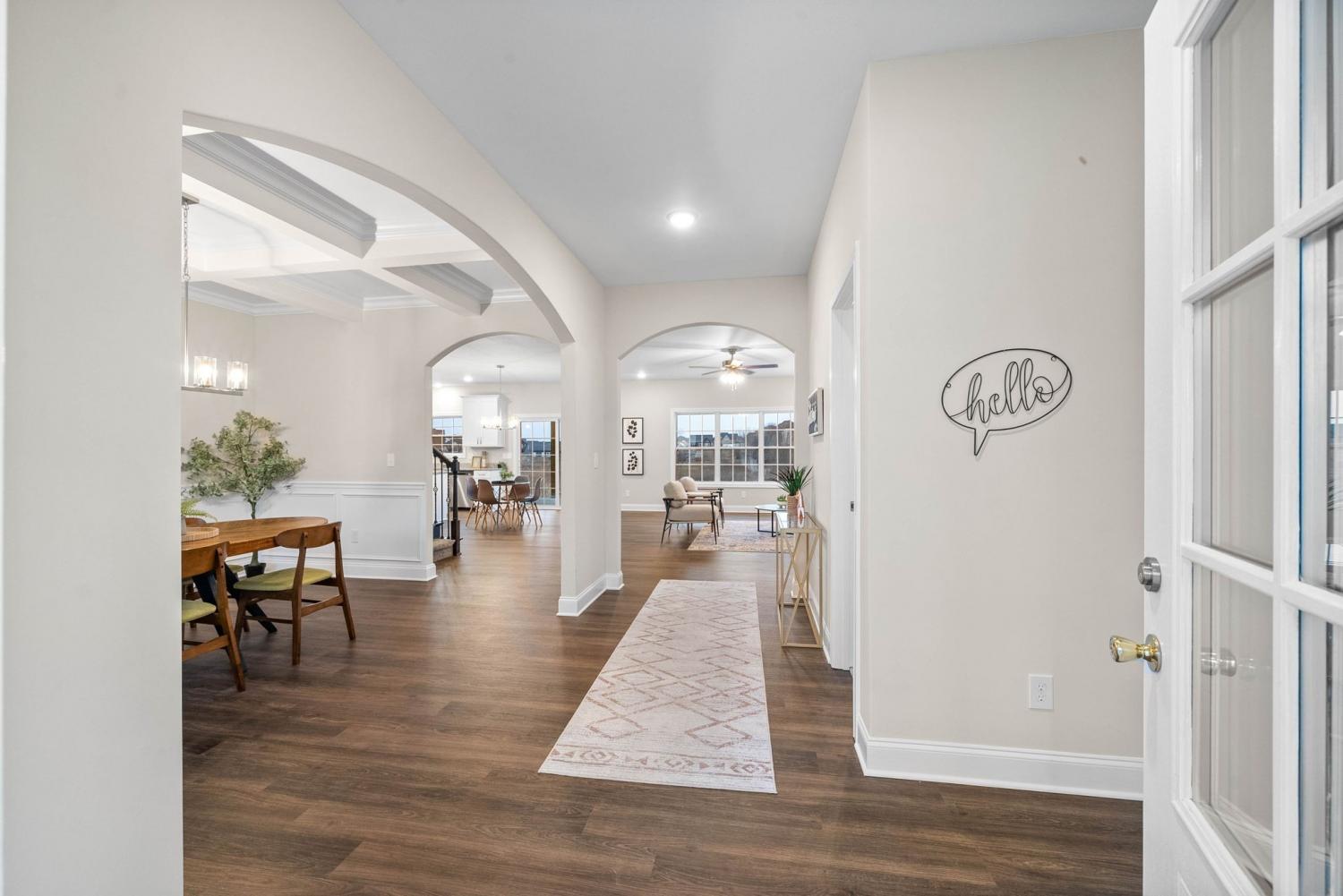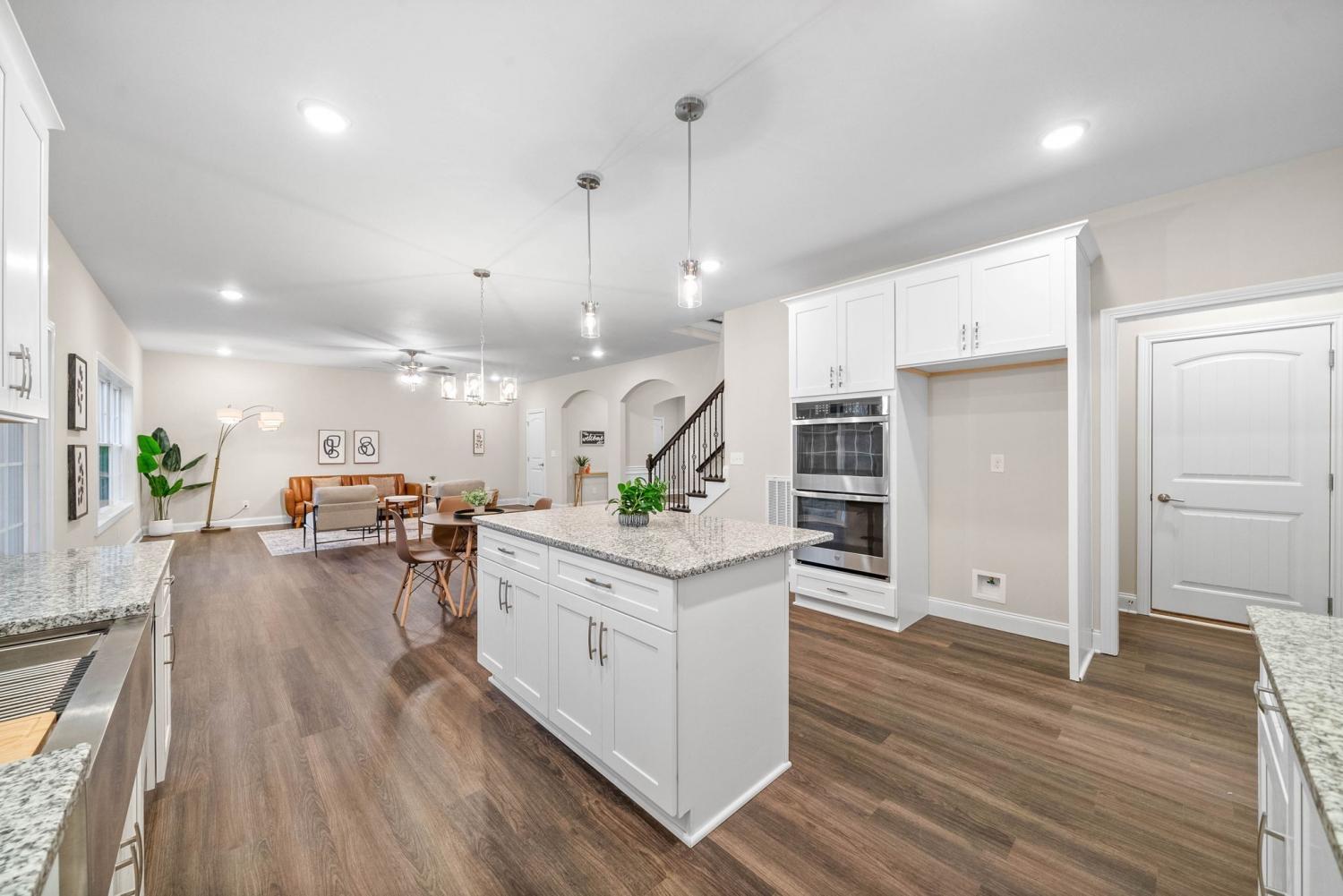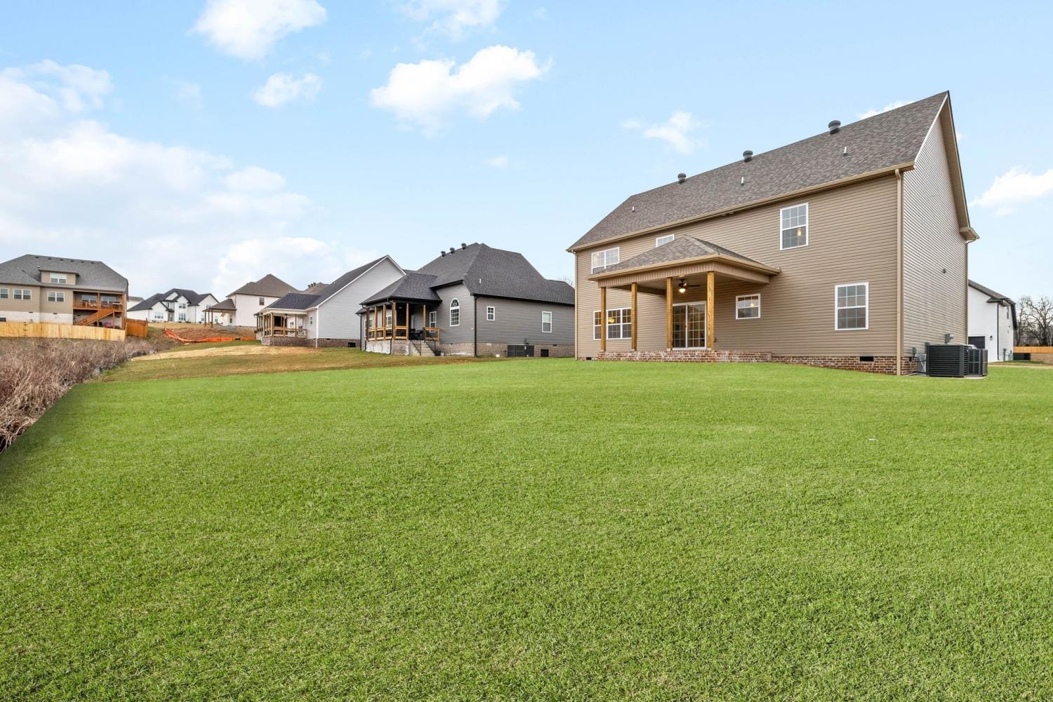 This stunning new build combines modern elegance with thoughtful design, offering 4 bedrooms, 3.5 baths, a bonus room, and over 3,100 square feet of living space. As you step inside, you’ll be greeted by a spacious open floor plan with natural light pouring through large picture windows. The gourmet kitchen is a chef’s delight, featuring granite countertops, a massive island, soft-close cabinetry, double oven, and a walk-in pantry. The main level boasts a spacious living area, a formal dining room, and a dedicated office space. Upstairs, you’ll find 4 generously sized bedrooms, 3 full bathrooms, a laundry room with counter space and cabinetry, and a versatile bonus room perfect for a media space, playroom, or additional bedroom. The luxurious primary suite is a true retreat, with a spa-inspired bathroom complete with a soaking tub, walk-in shower, and dual vanities. The outdoor area includes a covered patio with lighting and a ceiling fan, no backyard neighbors, ideal for entertaining or relaxing year-round. Located just minutes from I-24, shopping, and dining, this home offers convenience without compromising privacy.