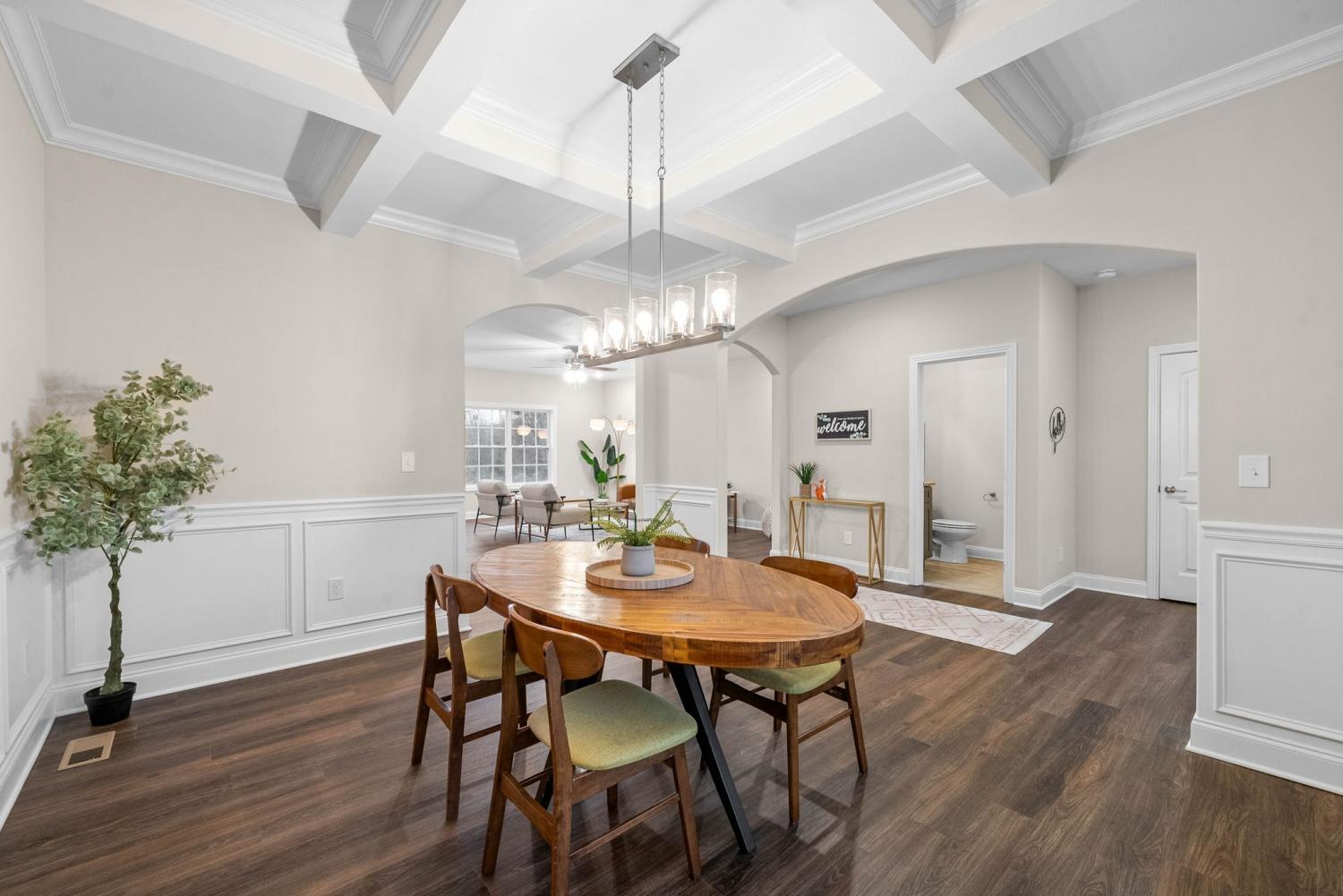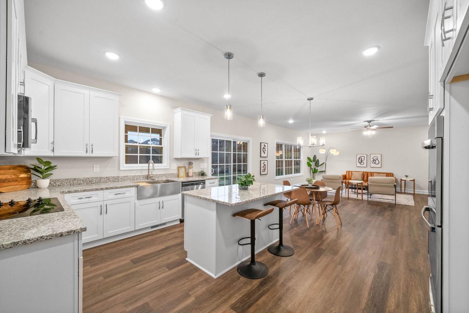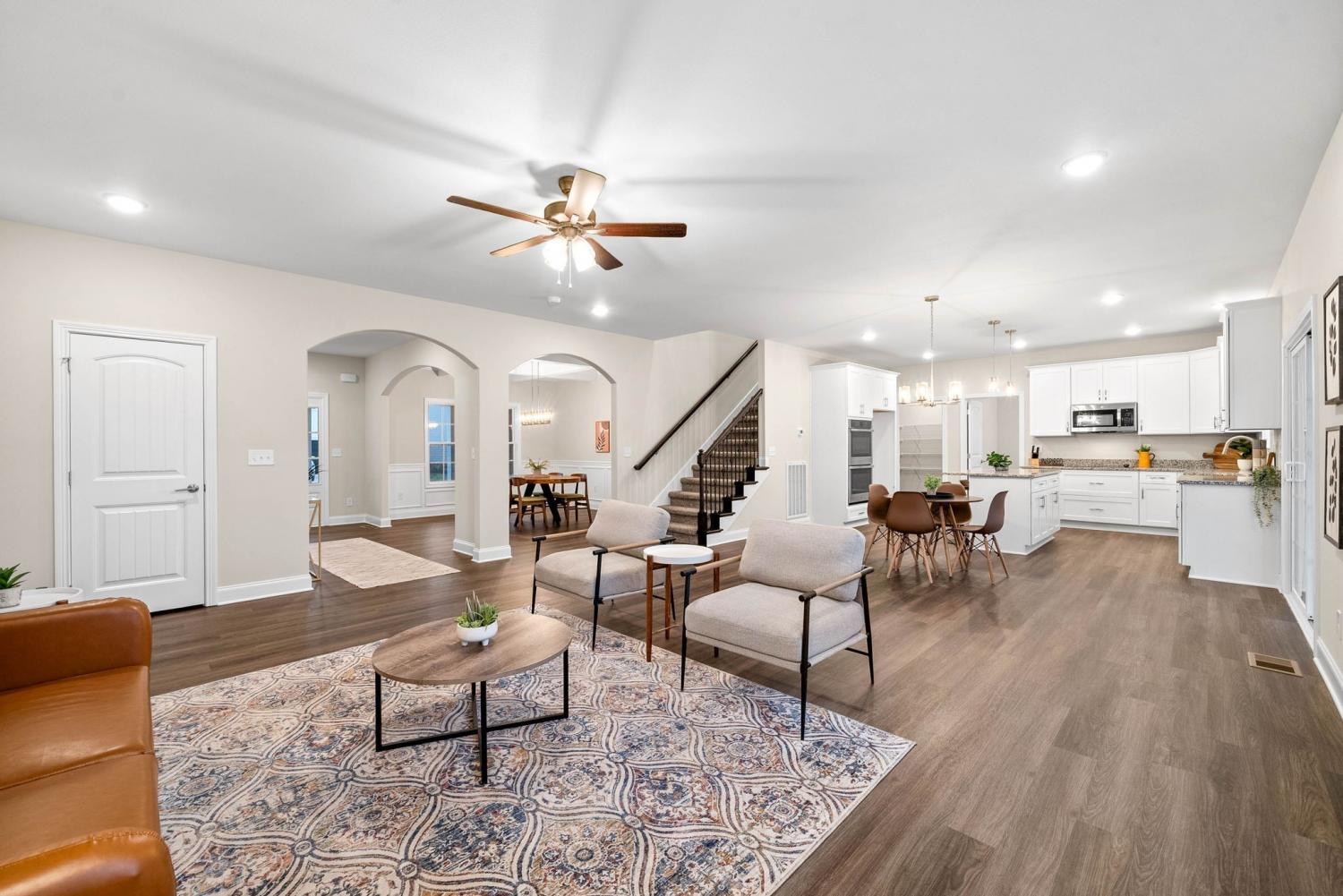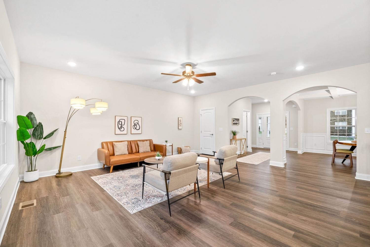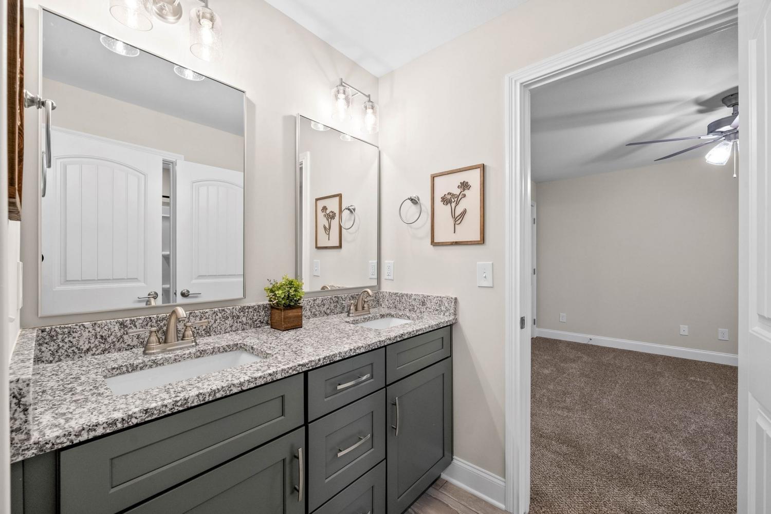 This stunning new build combines modern elegance with thoughtful design, offering 4 bedrooms, 3.5 baths, a bonus room, and over 3,100 square feet of living space. As you step inside, you’ll be greeted by a spacious open floor plan with natural light pouring through large picture windows. The gourmet kitchen is a chef’s delight, featuring granite countertops, a massive island, soft-close cabinetry, double oven, and a walk-in pantry. The main level boasts a spacious living area, a formal dining room, and a dedicated office space. Upstairs, you’ll find 4 generously sized bedrooms, 3 full bathrooms, a laundry room with counter space and cabinetry, and a versatile bonus room perfect for a media space, playroom, or additional bedroom. The luxurious primary suite is a true retreat, with a spa-inspired bathroom complete with a soaking tub, walk-in shower, and dual vanities. The outdoor area includes a covered patio with lighting and a ceiling fan, no backyard neighbors, ideal for entertaining or relaxing year-round. Located just minutes from I-24, shopping, and dining, this home offers convenience without compromising privacy.