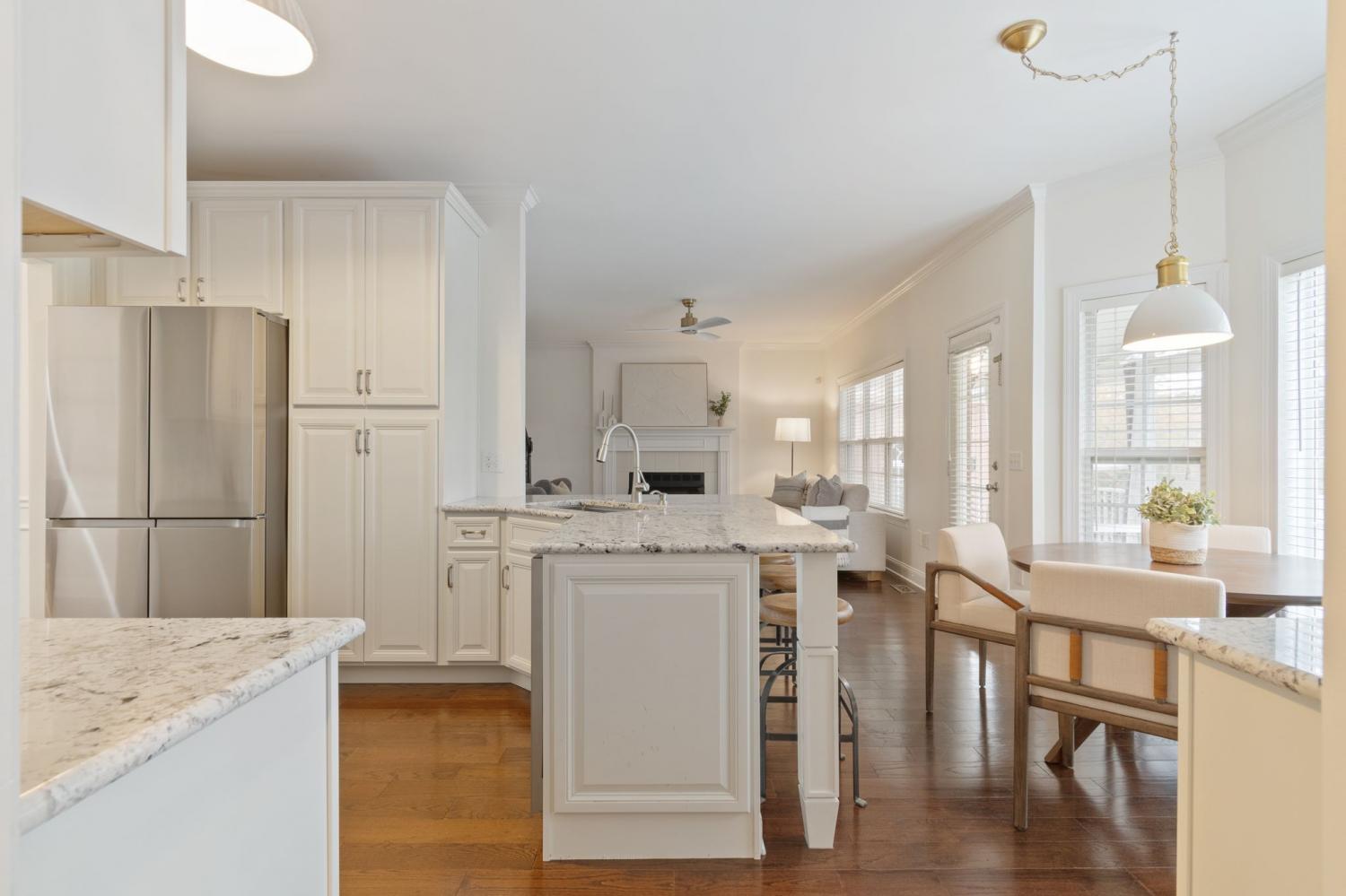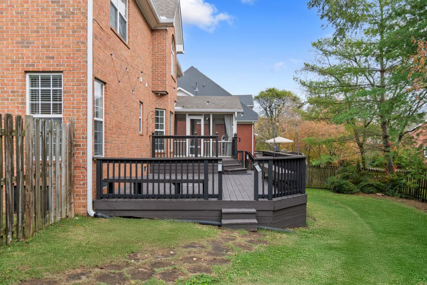 Experience timeless sophistication in one of Franklin’s most sought-after communities. This meticulously maintained + beautifully updated home with a new roof + gutters sits on a professionally landscaped lot in the heart of The Parks at Fieldstone Farms, offering a perfect blend of classic design and modern comfort. Step inside from the covered front porch to a light-filled foyer, where a formal dining room and a private home office with custom built-ins set an elegant tone. The inviting living room showcases expansive windows, a gas fireplace, and crafted millwork that enhance its warm, refined ambiance. The chef-inspired kitchen is the heart of the home, featuring luxury white cabinetry, a gas range, modern tile backsplash, and a sunny breakfast nook—ideal for casual mornings or effortless entertaining. Upstairs, the primary suite provides a tranquil retreat with a tray ceiling, walk-in closet, and a spa-like bath complete with a soaking tub and a separate tiled shower. Multiple flex and recreation spaces offer endless versatility for work, play, or relaxation. Outdoors, enjoy a screened-in patio that flows seamlessly onto a freshly stained deck overlooking a fenced backyard framed by mature trees—your private oasis for gatherings or quiet evenings at home. Residents of Fieldstone Farms enjoy two community pools, playgrounds, walking trails, and a clubhouse with fitness center, all just minutes from historic downtown Franklin and top-rated schools.