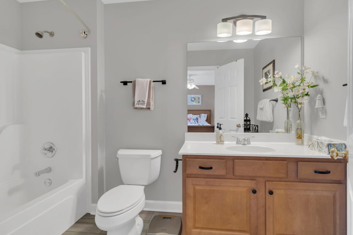 Tucked away on a peaceful cul-de-sac and backing up to a serene common area, this well-maintained home is full of thoughtful features and flexible living spaces. The primary suite is conveniently located on the main level, complete with a beautifully remodeled bath and a stunning tiled walk-in shower. The open floor plan offers hardwood floors throughout most of the main level and a spacious kitchen with a sunny breakfast nook. Upstairs you’ll find a Jack & Jill bath and two walk-in attics providing exceptional storage. Step outside to enjoy a huge new back deck — perfect for relaxing or entertaining — with additional covered storage underneath. One of the standout features is the 26x27 detached garage — heated, cooled, and complete with its own attic storage — perfect for a workshop, studio, or extra space for hobbies. Additional highlights include an alarm system, front yard irrigation, and a quiet location just minutes from everything you need. This is a rare find that checks all the boxes — space, storage, and a setting you’ll love coming home to! Buyer to verify schools and all pertinent information.