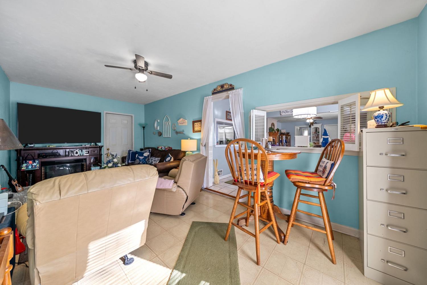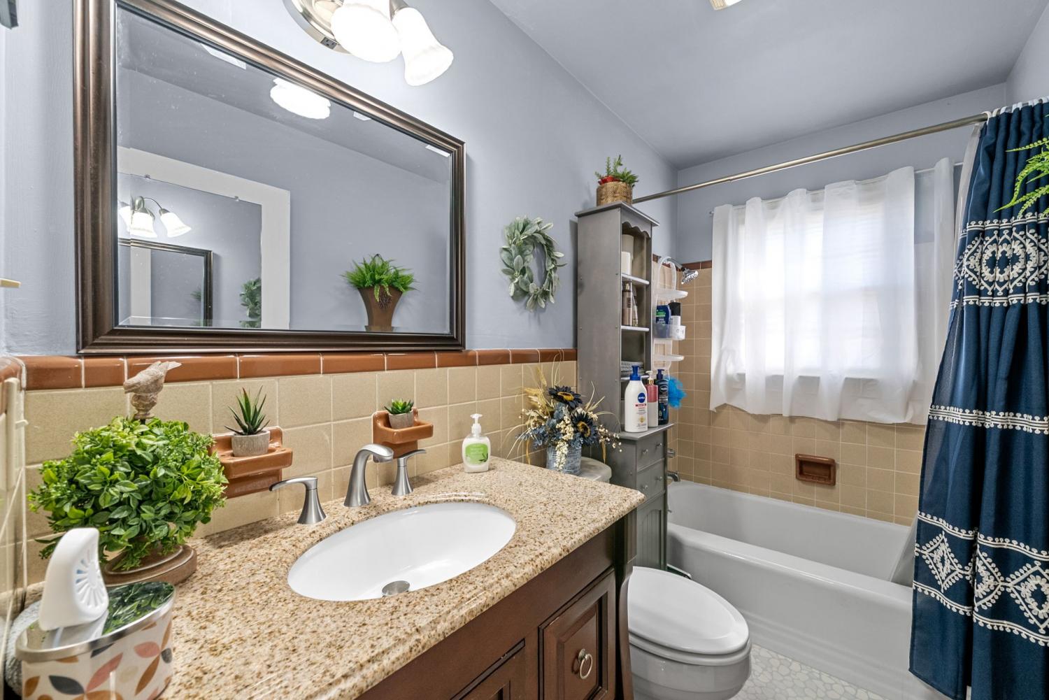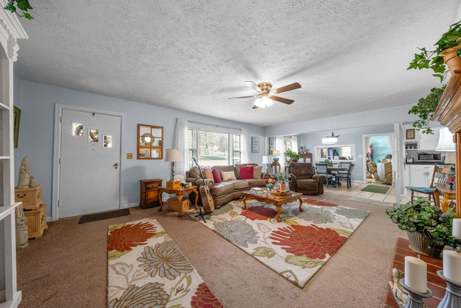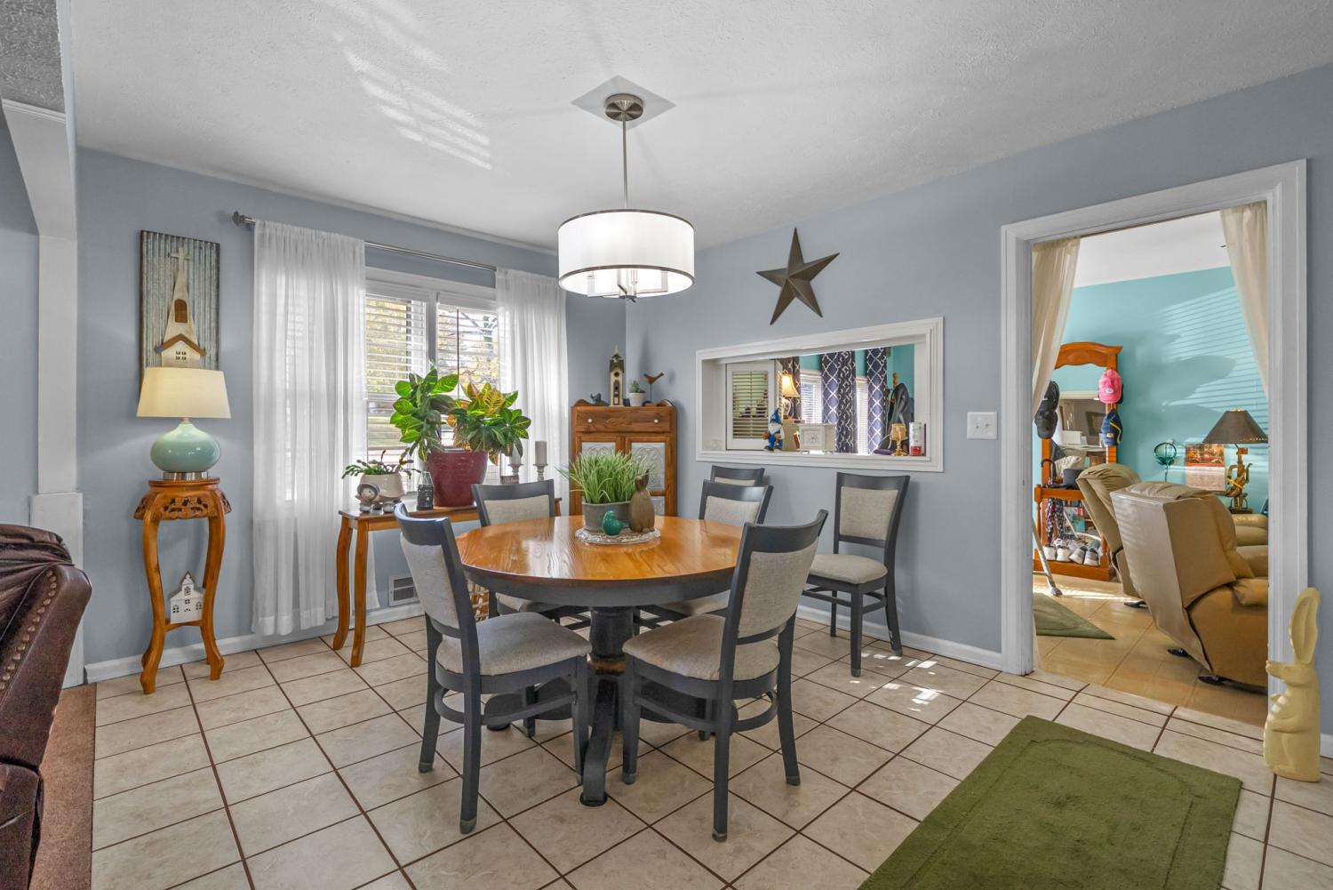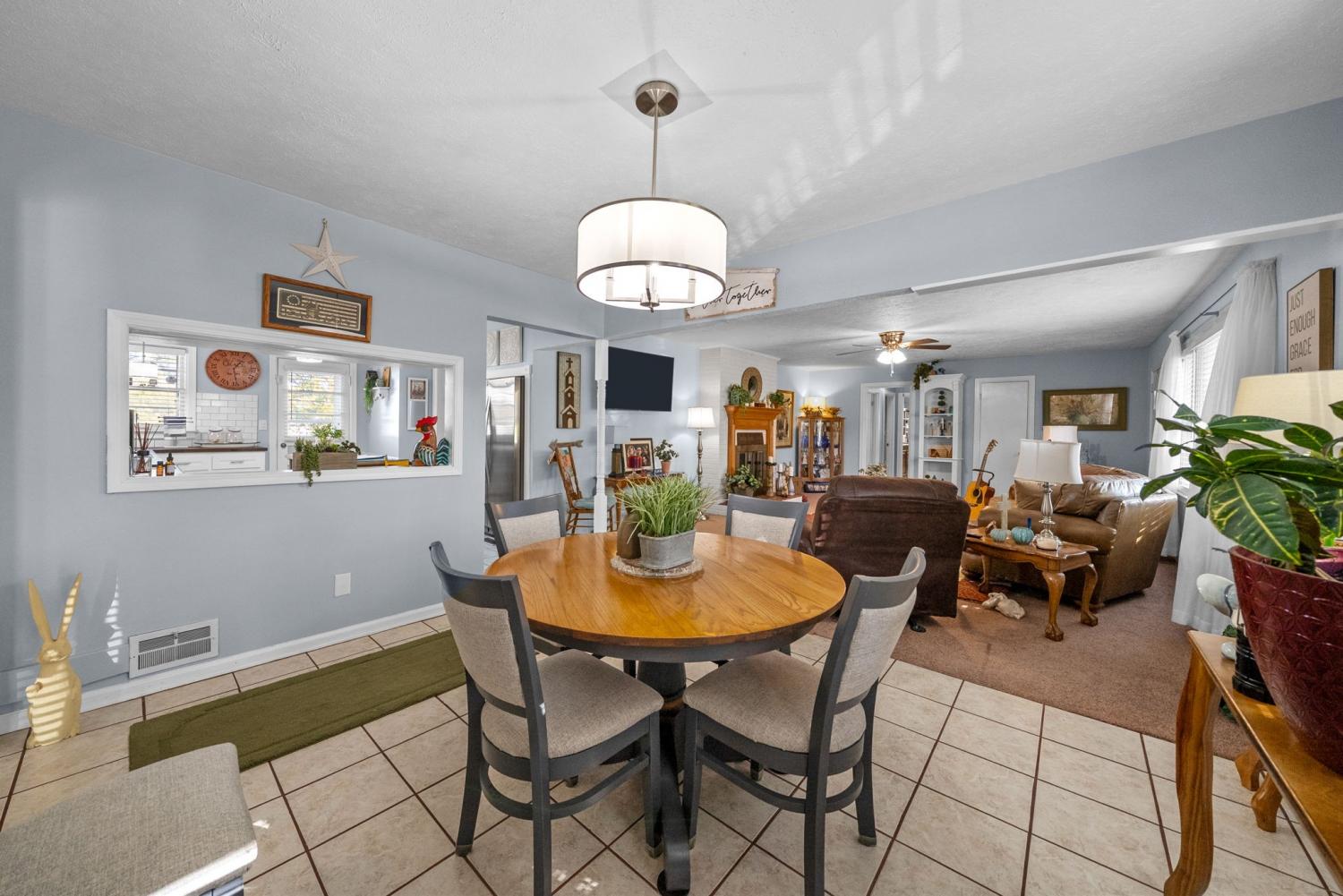 This beautifully maintained 3-bedroom, 1-bath brick home offers a functional layout and plenty of character. Enjoy cozy evenings by the fireplace and cook with style in the kitchen featuring wood countertops and classic subway tile. The home includes a mix of hardwood and tile flooring throughout. Step outside to a spacious deck perfect for entertaining, plus a storage building for extra space. Additional highlights include a concrete driveway and a convenient garage. Move-in ready and full of charm!