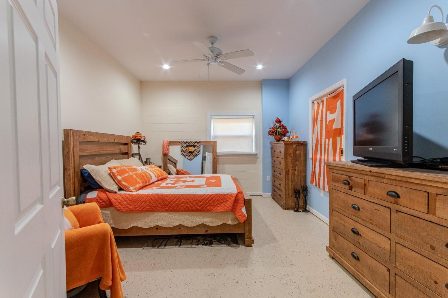 Check out this gorgeous home on 5.5 acres overlooking a beautiful creek with waterfall. It feels like your own little resort in paradise. With no neighbor in sight, you can enjoy the huge deck overlooking this tranquil scenery. Another plus to this property is that every bedroom on main floor has it's own full bathroom. This open floor concept kitchen, dining room, and living room offers lots of light and a great place to gather with a wood burning fireplace in the living room. Off of the living room area is a separate media room/office. Now lets talk about the basement. There's another bedroom and half bathroom in the basement. The basement has 9.5 foot ceilings and is completely heated and cooled. Basement also has a 60 sq ft safe room. There is a space and cabinets if you wanted a kitchen in basement. Lots of potential here for multi-family living. The creek on the property runs your property line and is a great sound to hear on them lazy nights with windows raised.