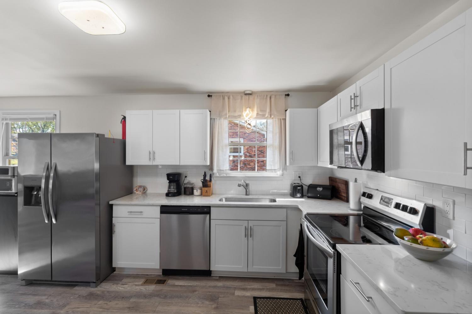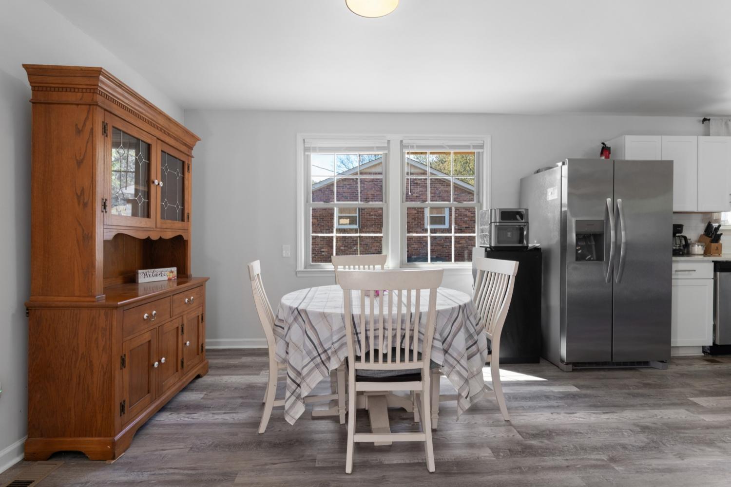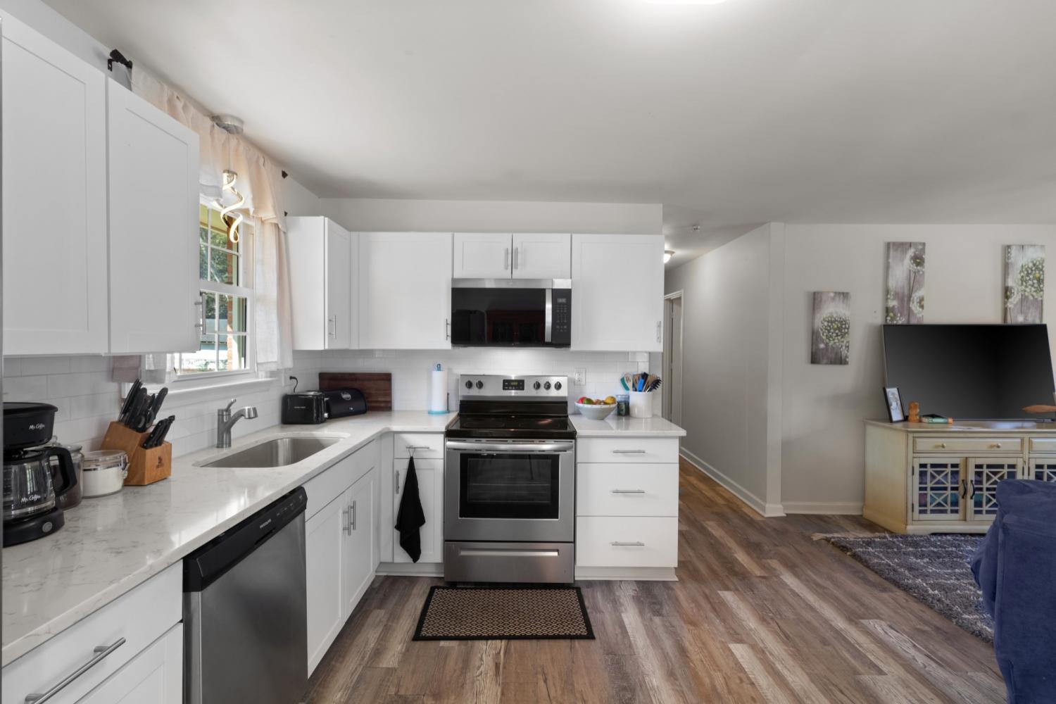 This fully renovated all-brick ranch is situated on a spacious corner lot in a quiet neighborhood. The large 18x18 shed is fully equipped with electricity and provides ample storage space for personal items and lawn equipment. The property underwent extensive renovations in 2022, transforming the living and dining areas into an open plan with a flex space suitable for a home office or gaming area. Additional updates include lifeproof vinyl flooring, quartz countertops, new cabinets, appliances, lighting, and ceiling fans. The bathrooms have also been updated. Furthermore, the ductwork has been recently cleaned. This property offers an ideal location, conveniently situated just minutes away from shopping and restaurants and the area’s highly rated schools. Free 1 year buydown offered by preferred lender. Contact listing agent for details.