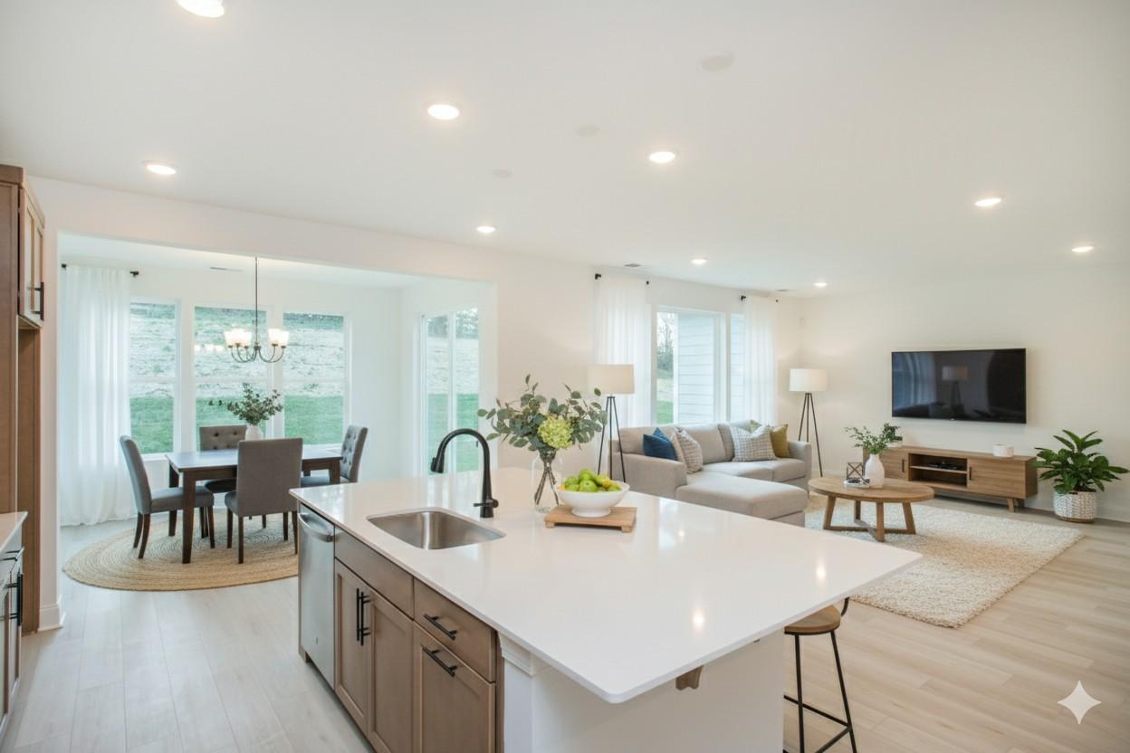 Home for the Holidays—Discover the Magic of One-Level Living-Decker floor plan (50) This beautifully designed Decker ranch-style home is move-in ready and nestled along a private wooded tree line, offering a peaceful, picturesque setting perfect for cozy winter mornings and festive celebrations. Step through the welcoming covered entry into a thoughtfully crafted space where comfort meets elegance. The gourmet kitchen—complete with a center island and walk-in pantry—is ready for holiday baking, warm meals, and joyful gatherings. The sunroom, filled with natural light, adds a cheerful touch to every day, while the open-concept great room provides the perfect backdrop for decorating, entertaining, and relaxing by the glow of seasonal lights. The spacious primary suite is a true retreat, featuring a deluxe bath with double sinks and a large walk-in closet—ideal for unwinding after a day of holiday cheer. A pocket office offers a quiet space for gift wrapping or working from home, and the mudroom and laundry room add everyday convenience with a touch of seasonal practicality. Whether you're hosting loved ones or enjoying a peaceful holiday at home, this rare one-level gem is ready to welcome you with open arms. Furnished photos are of the model; unfurnished photos show the actual home on Homesite #50. Quick close available—don’t miss your chance to be home for the holidays!
