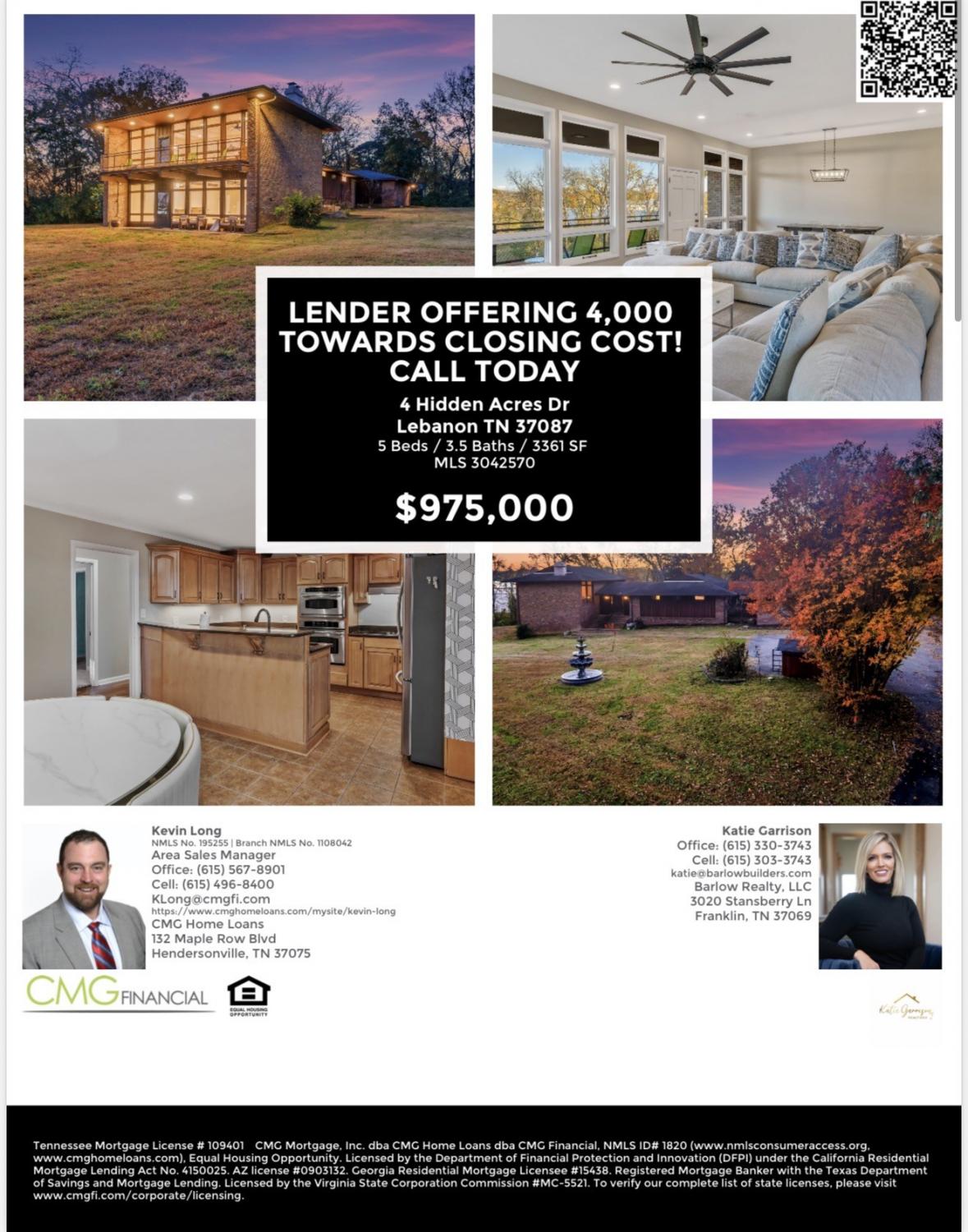 © 2025 Listings courtesy of RealTracs, Inc. as distributed by MLS GRID. IDX information is provided exclusively for consumers' personal non-commercial use and may not be used for any purpose other than to identify prospective properties consumers may be interested in purchasing. The IDX data is deemed reliable but is not guaranteed by MLS GRID and may be subject to an end user license agreement prescribed by the Member Participant's applicable MLS. Based on information submitted to the MLS GRID as of December 9, 2025 10:00 PM CST. All data is obtained from various sources and may not have been verified by broker or MLS GRID. Supplied Open House Information is subject to change without notice. All information should be independently reviewed and verified for accuracy. Properties may or may not be listed by the office/agent presenting the information. Some IDX listings have been excluded from this website.