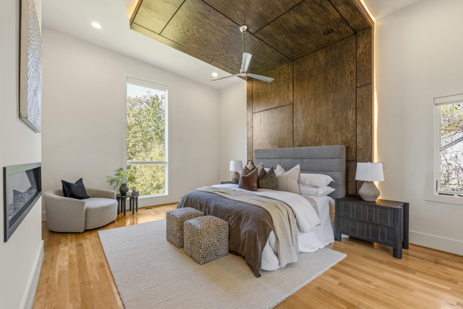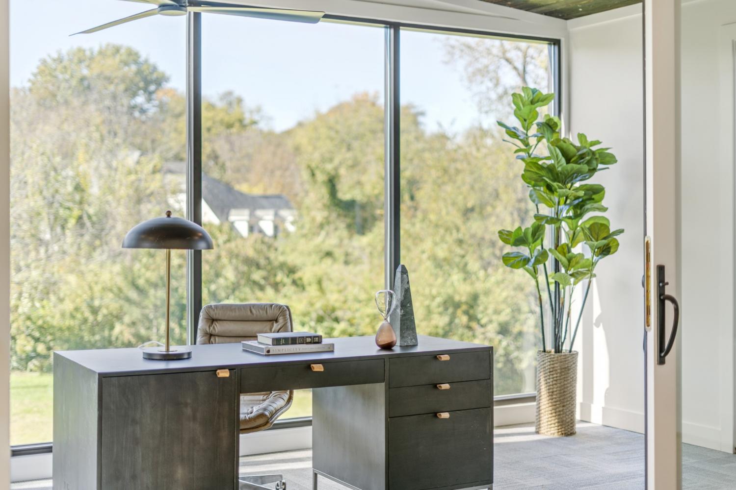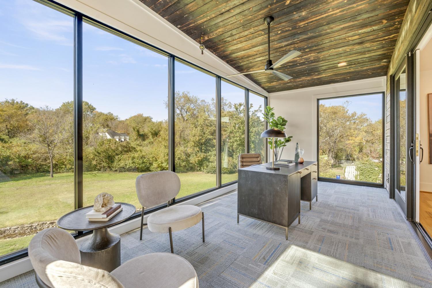 Extremely rare find! One of the only contemporary homes in the highly desired Oak Hill neighborhood. Designed by the beloved and local Root Arch and built with no detail spared… This one is captivating: the lot is set back among mature trees, with an open lawn and a private setting. The home is a work of art, but still inviting and warm. Perfect for cozy family gatherings, with the space to entertain family + friends for the holidays. Enjoy the rooftop deck, the back patio with an outdoor fireplace, and more. This home is complete with viking appliances, imported stones, reclaimed brick, and so much more. The sellers have added the office space and completed the 3rd garage bay with heating and cooling - great for an in-home gym, shop, etc.