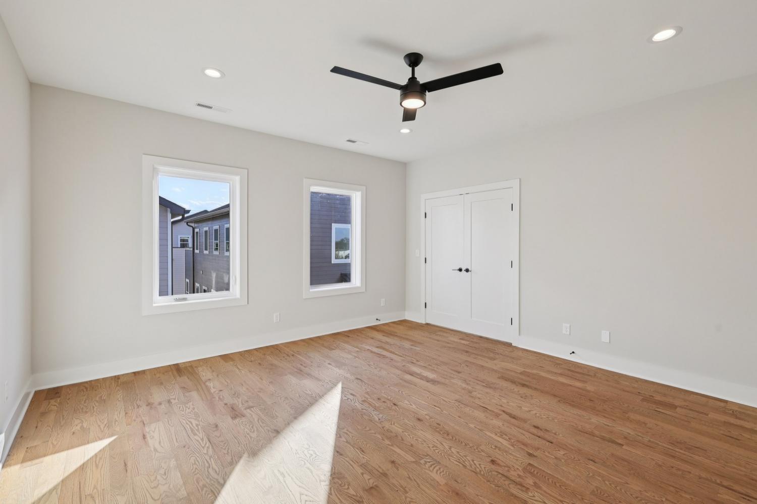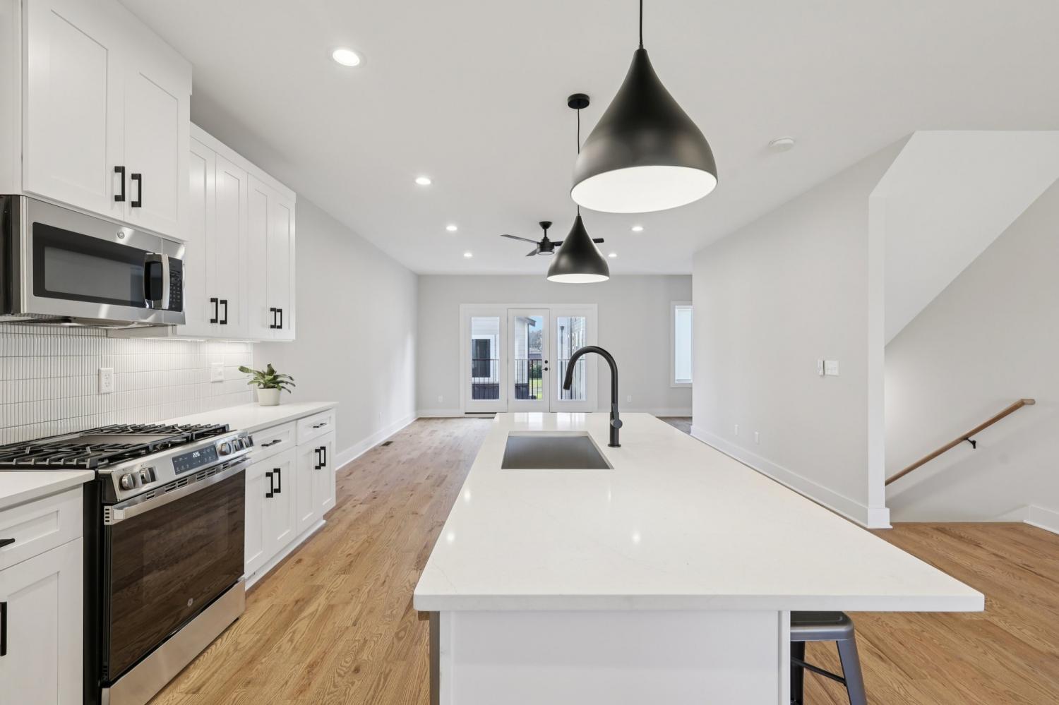100% Financing Available. Call agent for details!! One & only townhome offered at this price! This stunning townhome features beautiful design and high-end finishes throughout, featuring sand and finish hardwood floors and stairs on every floor, designer lighting, and a bright, open family room & kitchen flooded with natural light from expansive windows. The gourmet kitchen is well appointed & complete with a gas range, tile backsplash, under cabinet lighting, luxurious quartz countertops, soft close cabinet doors & drawers, huge island and refrigerator included. Each bedroom has hardwood flooring, built in closet shelving and a private bath with spa-inspired tile showers creating ideal flexibility for roommates, guests, or work-from-home living. The large two-car garage is such a luxury in this price range! Every detail reflects thoughtful design and quality construction—a perfect blend of comfort, functionality, and modern luxury in one of West Nashville’s most convenient locations.