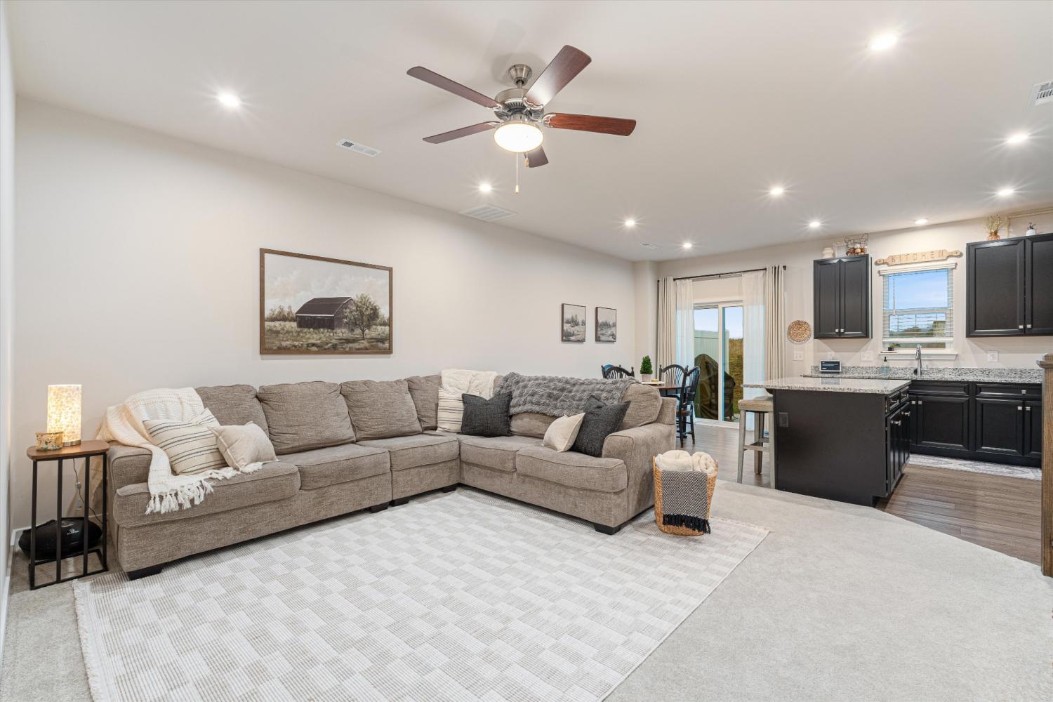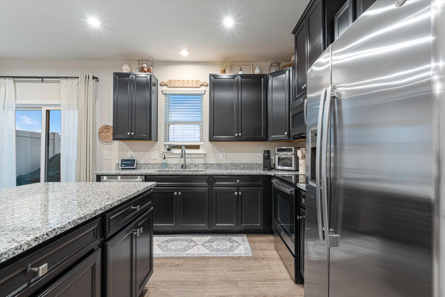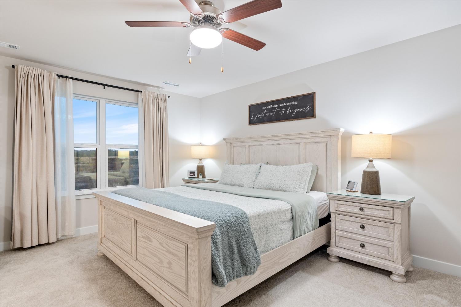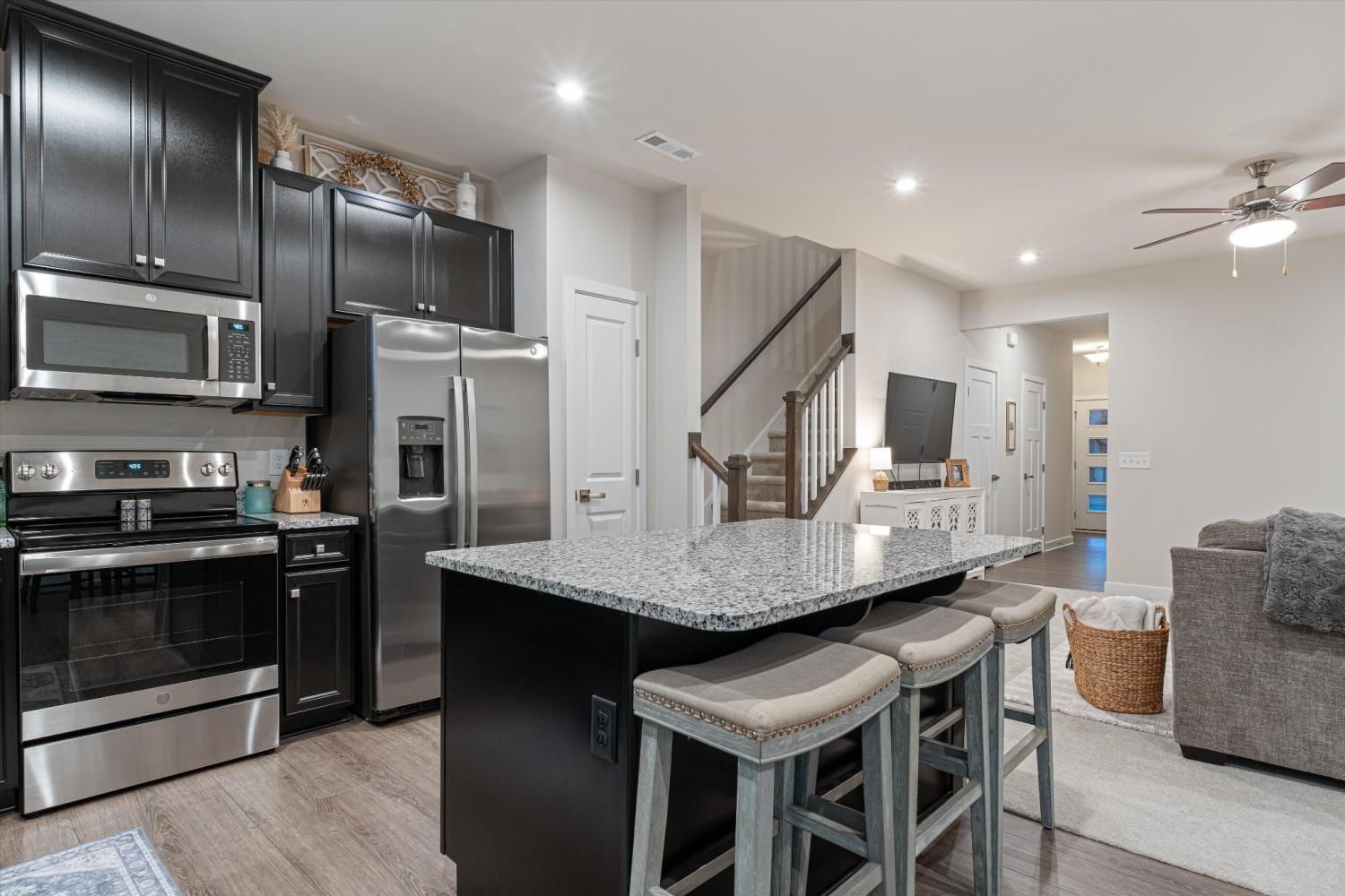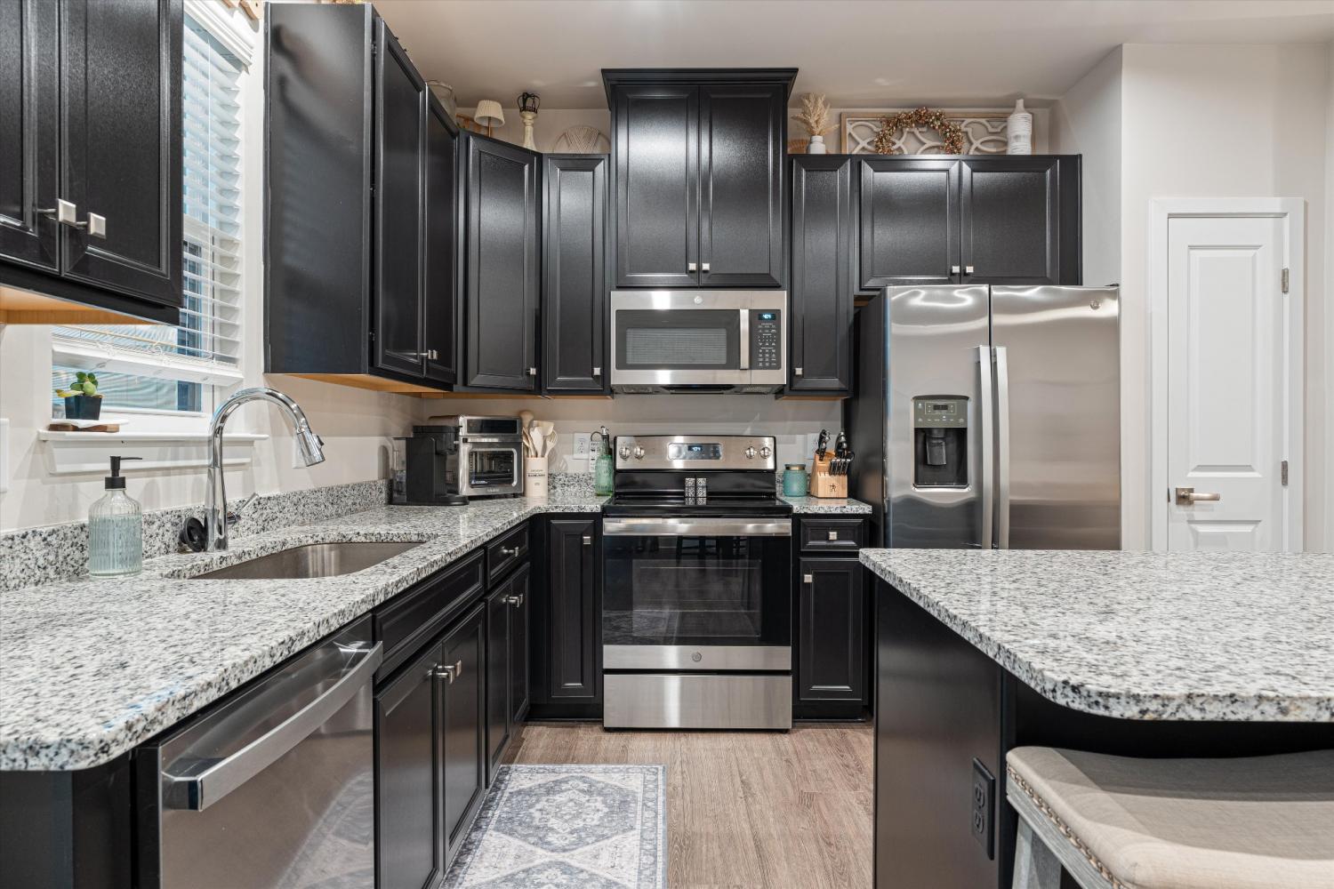 Imagine waking up in a home where every detail is crafted for comfort and style. This 1,576-square-foot townhouse features 3 bedrooms, 2.5 bathrooms, and a one car garage, providing ample space for relaxation and entertainment. Enjoy the sunsets from this back patio! The open-concept main floor is a hub of modern design, highlighted by a spacious kitchen with granite countertops, elegant cabinets, and luxury vinyl plank flooring. The kitchen also boast a large island, making it a perfect place for culinary adventures or casual dining. All bedrooms are conveniently located upstairs, offering privacy and tranquility. The primary suite is a true retreat with a walk-in closet and an en-suite bathroom featuring dual sinks, adding convenience to your daily routine. Storage rack has been added to the garage for more space! Also, designer curtain rods added above multiple windows to hang your favorite curtains! Connect with your new neighbors at the monthly HOA social events, plus with an array of amenities! Enjoy leisurely days at the clubhouse, playground, or pool, and explore scenic trails in the community. The homeowners association takes care of essential services including your Internet, pest and termite control, lawn care, irrigation, exterior insurance, and maintenance, allowing you to focus on enjoying your life. Plus you will love the close proximity to Gallatin Square with charming shops and cafe's!
