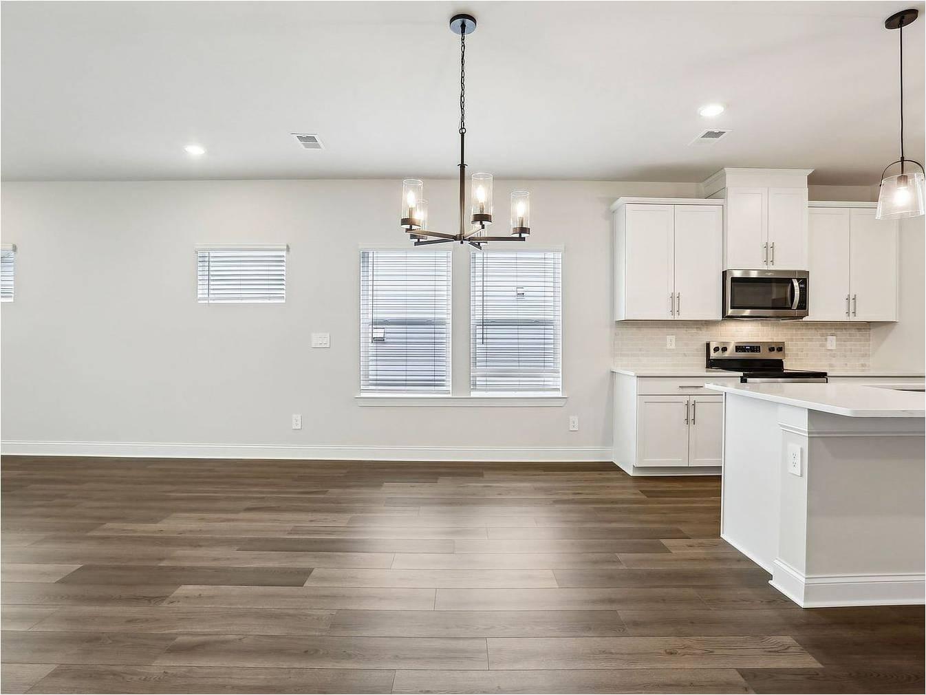 Welcome to this stunning new construction home! No previous owners have lived in this home! Let you be the first. Spacious covered front porch, 2 car garage, office space/rec area to the right when entering the home. My oh my what a beautiful kitchen area! All white cabinets, stunning island, comes with all SS appliances, spacious pantry, beautiful countertops. OPEN CONCEPT with kitchen/dining/living room area perfect for entertaining! LVP flooring throughout the main areas. Lots of natural light in these areas! Beautiful lighting to make sure you won't go in the dark! Sliding backdoor leading to the outside patio, Home has blinds throughout the home and washer/dryer for convenience.What a wonderful primary bedroom! Huge space and connects to a beautiful primary bathroom! Double vanities, stand up shower, huge WIC, tile in wet areas. Home also has a fully sodded yard! Amenities include a community dog park, playground, and plenty of open green space! Home is energy efficient! All bedrooms are upstairs except one downstairs. There's also a huge loft upstairs perfect for designing your own space! This home is a must see!