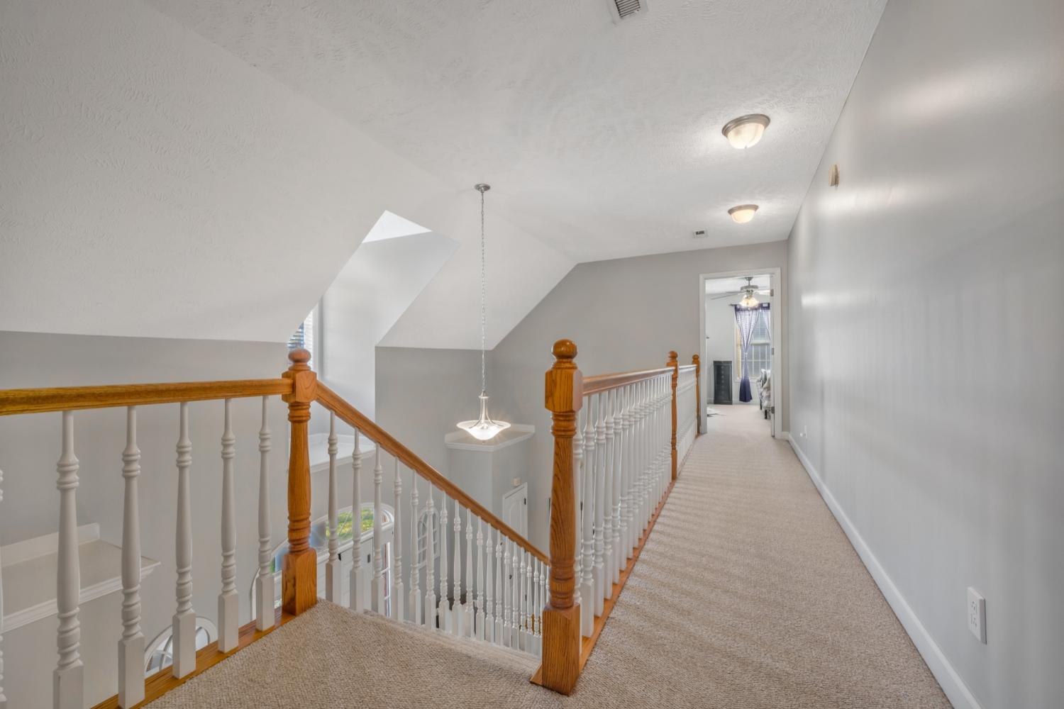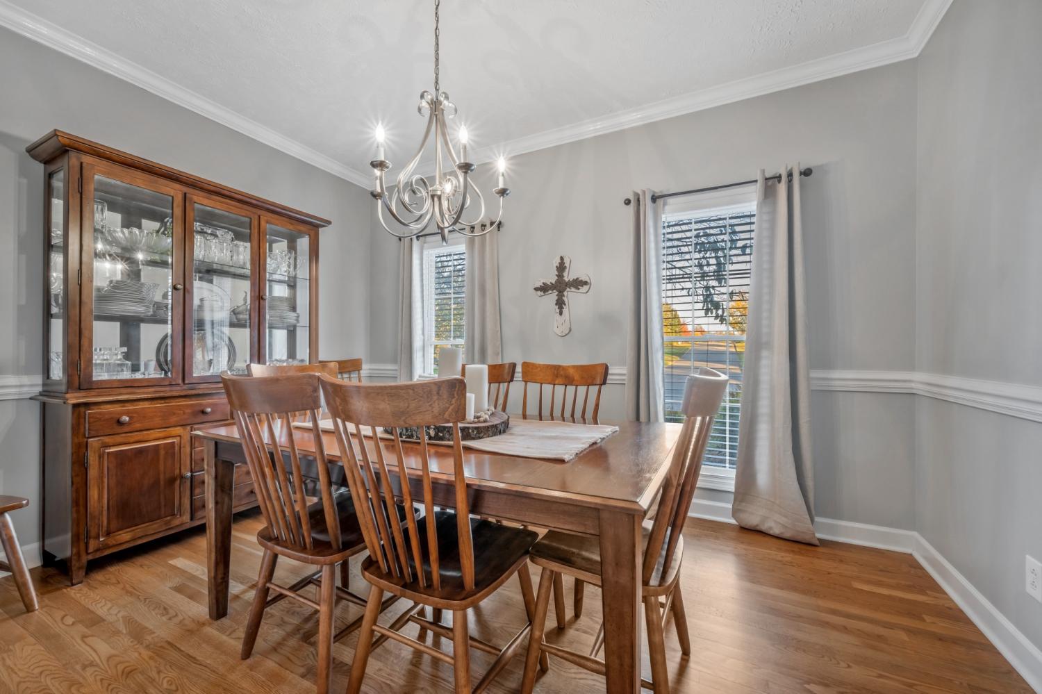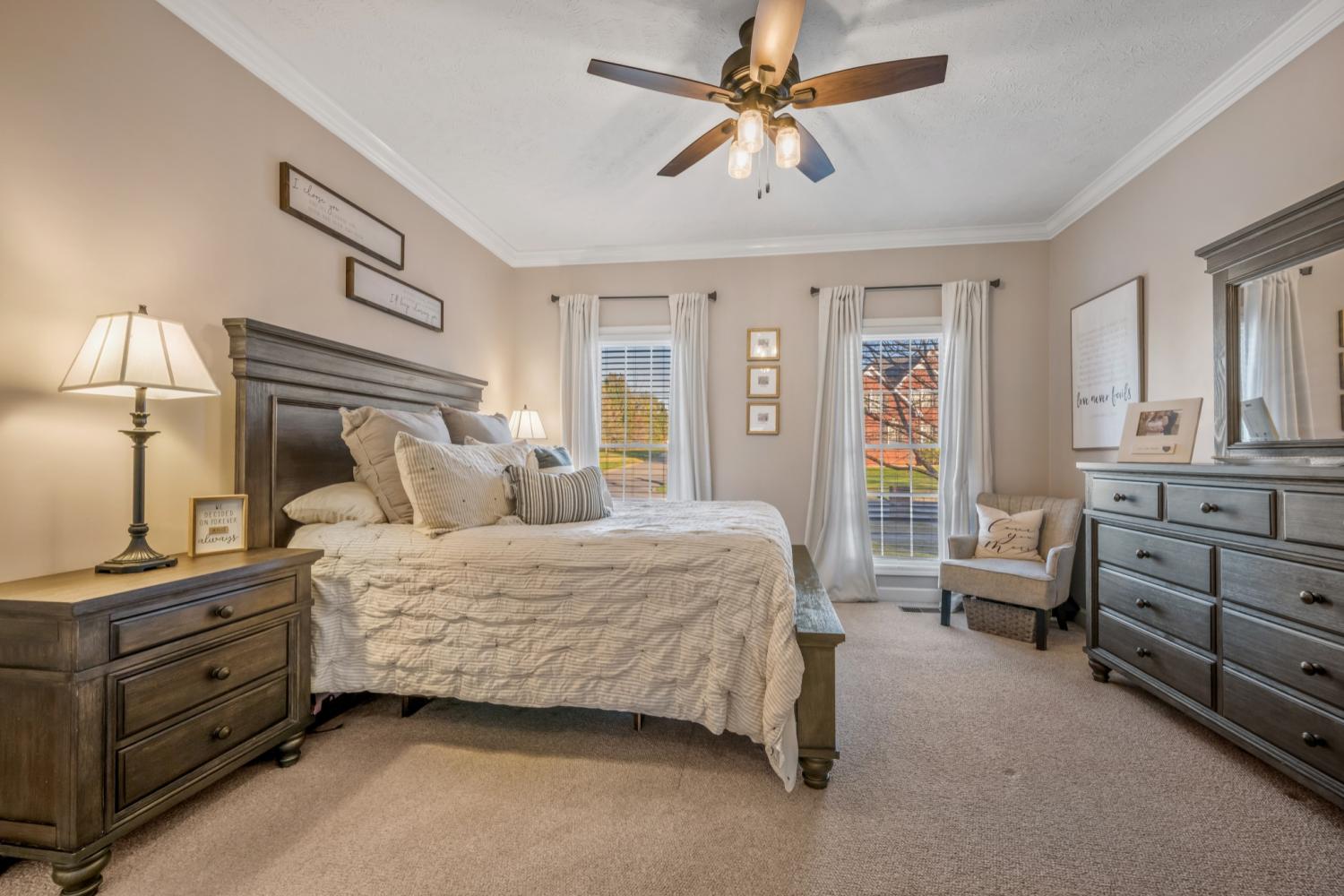 In the heart of Sango! This beautifully maintained all-brick home in South Ridge offers 3 bedrooms and 2.5 baths with hardwood floors, fresh paint, and timeless charm. The primary suite is on the main level, as is the laundry room, and half bath for convenience. The main level also features a formal dining room and a screened-in deck, perfect for morning coffee or evening relaxation. The fully finished basement includes a mud room and a safe room ideal for an office, hobby, or exercise space. It also features a large additional room with a gas fireplace perfect for a family den or guest retreat. The second floor features a Jack and Jill bathroom room with two bedrooms and big closets. Enjoy no neighbors on the back of the property; rather a wood line with beautiful sunsets, extra concrete for parking, and a well-kept yard in one of Clarksville’s most desirable Sango neighborhoods. HVAC, water heater,roof, and appliances have all been recently replaced.