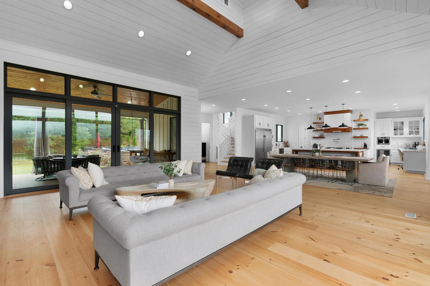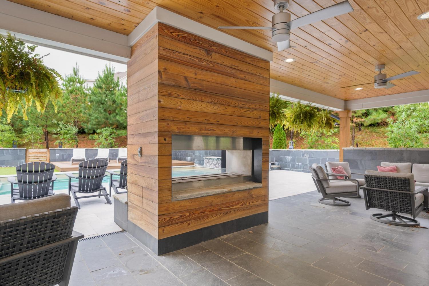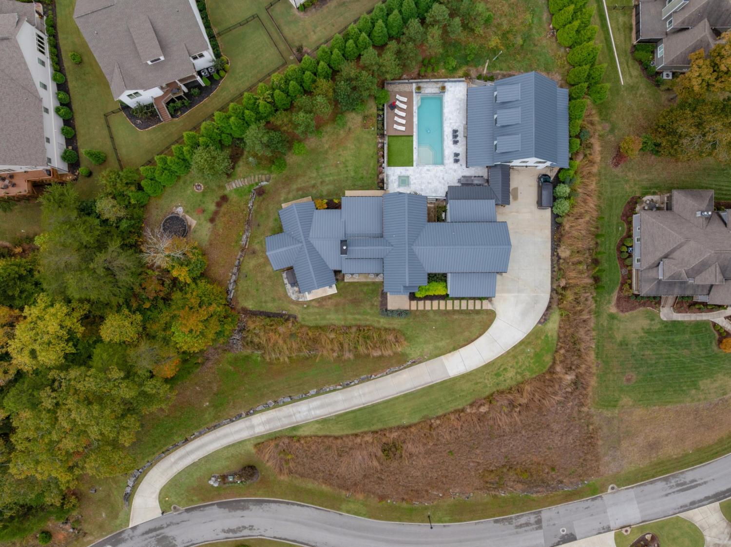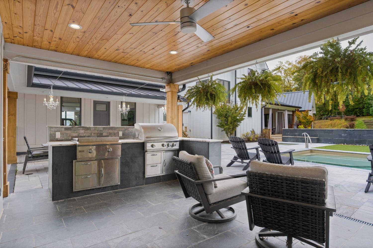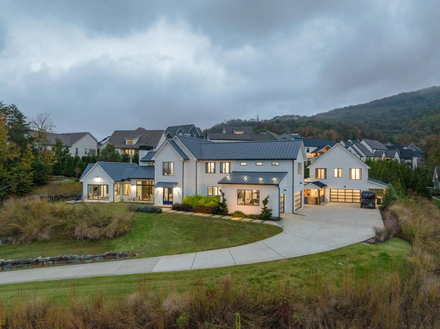 Truly spectacular modern farmhouse strategically positioned on a 1.76 +/- acre hilltop lot with a heated pool, guest house and stunning mountain views in the desirable Black Creek golf course community approximately 15 minutes to downtown Chattanooga. This well-designed home is loaded with amenities and fantastic outdoor living spaces and is truly meant for gathering and entertaining. The property features a 5 or 6 bedroom, 4.5 bath, 4,700 +/- sf main house with a 4-car garage, as well as a pool house with a rec room, kitchenette, double garage and a full pool bath on the main level, and a 2 bedroom, 1 bath guest apartment on the upper level, all connected via amazing outdoor living spaces. All of the garage doors are glass and provide both a modern look and great natural lighting atypical to most garages which allows for additional uses such as home gym in the pool house garage. As soon as you enter the main house, you will immediately note the wonderfully open living areas, including the kitchen, dining and great room, as well as the hardwood floors, shiplap accents walls and ceilings, and the oversized glass doors and windows with the colorful autumn views. The kitchen boasts a large center island with pendant lighting and an extra prep sink, custom cabinetry, stainless appliances, including 2 dishwashers, an under-counter microwave, an oversized built in refrigerator, and a Thor gas range with double ovens and convenient pot-filler. It also has a great workspace and a refreshment center with a sink, Bosch coffee maker and a beverage fridge with access to the mudroom/laundry with a pantry and access to the garage - perfect for loading and unloading. The center dining area has access to the powder room, staircase and a closet with access to a special room under the steps that leads to an exterior door which the sellers have utilized for their pets.