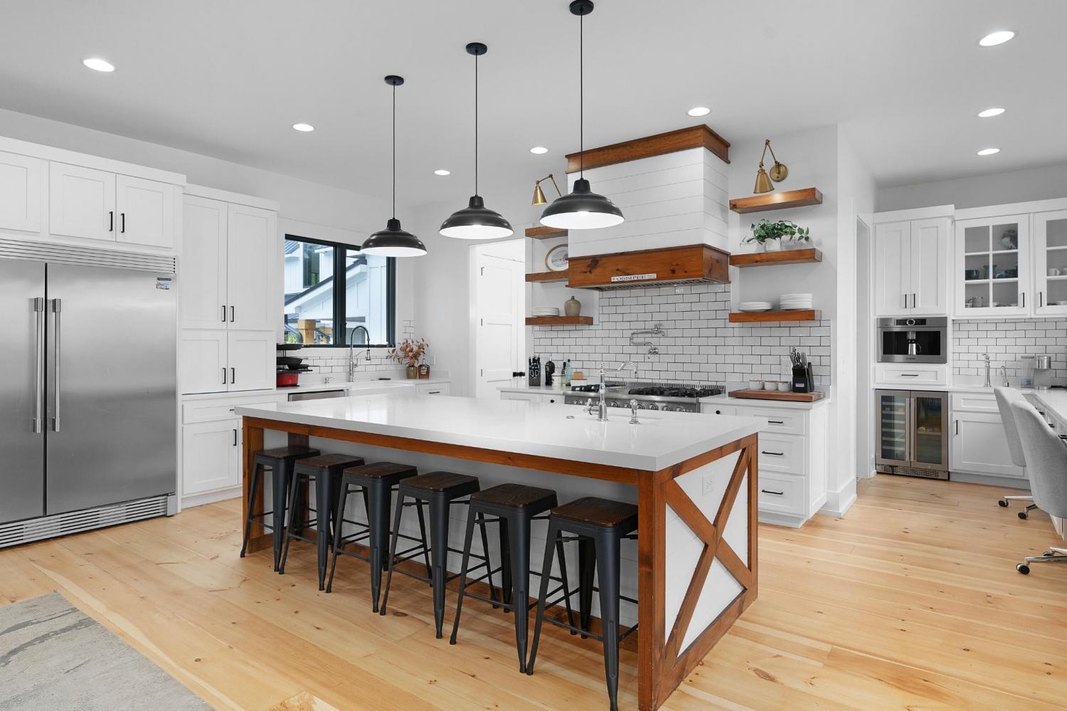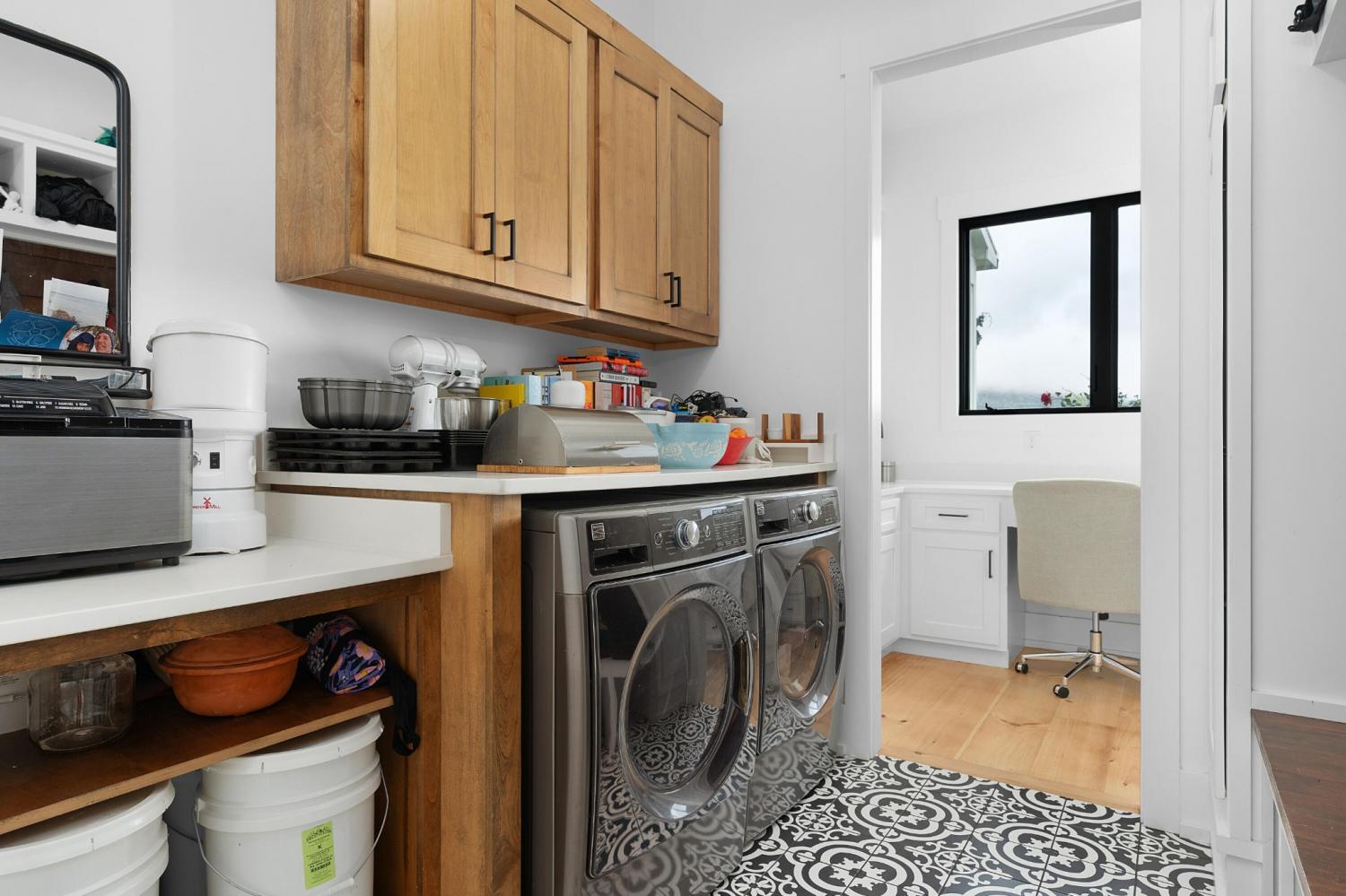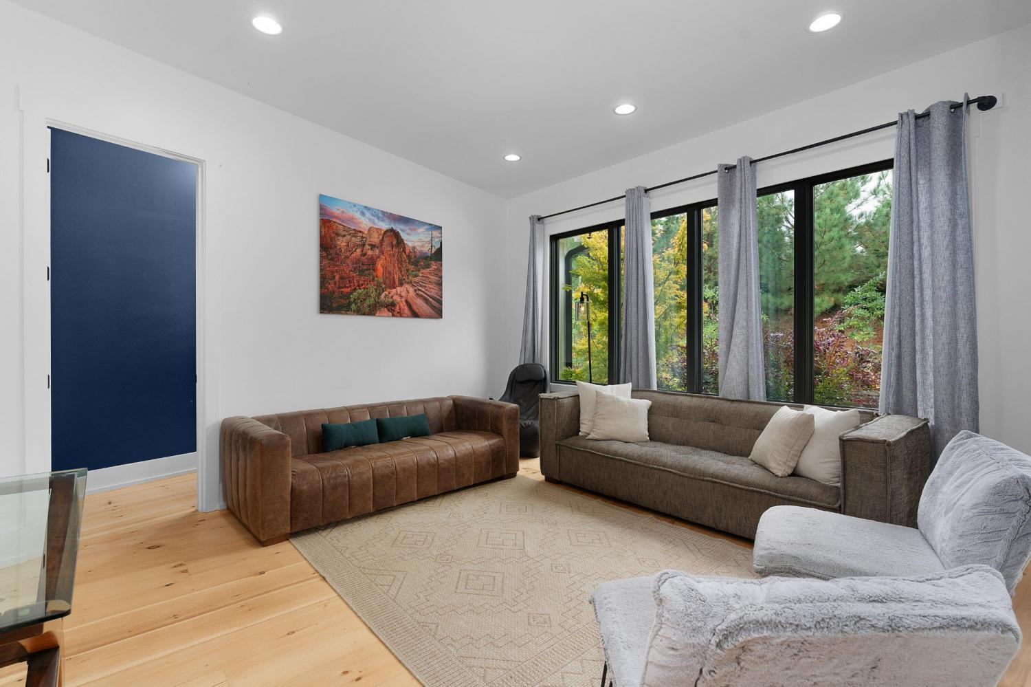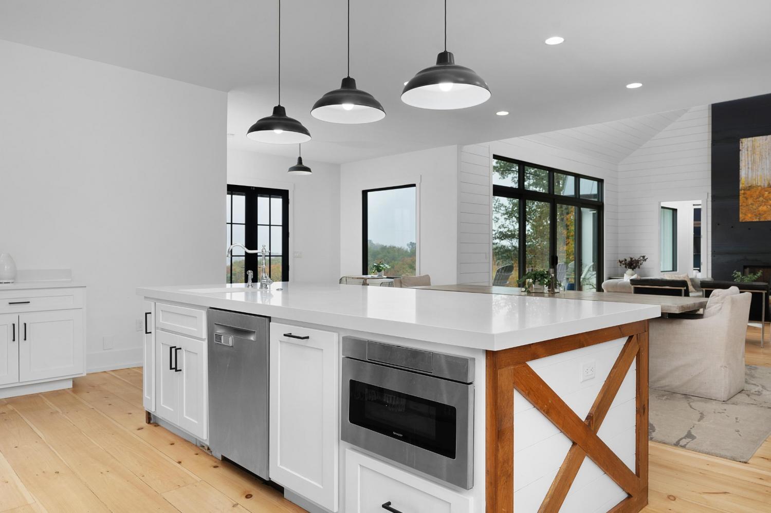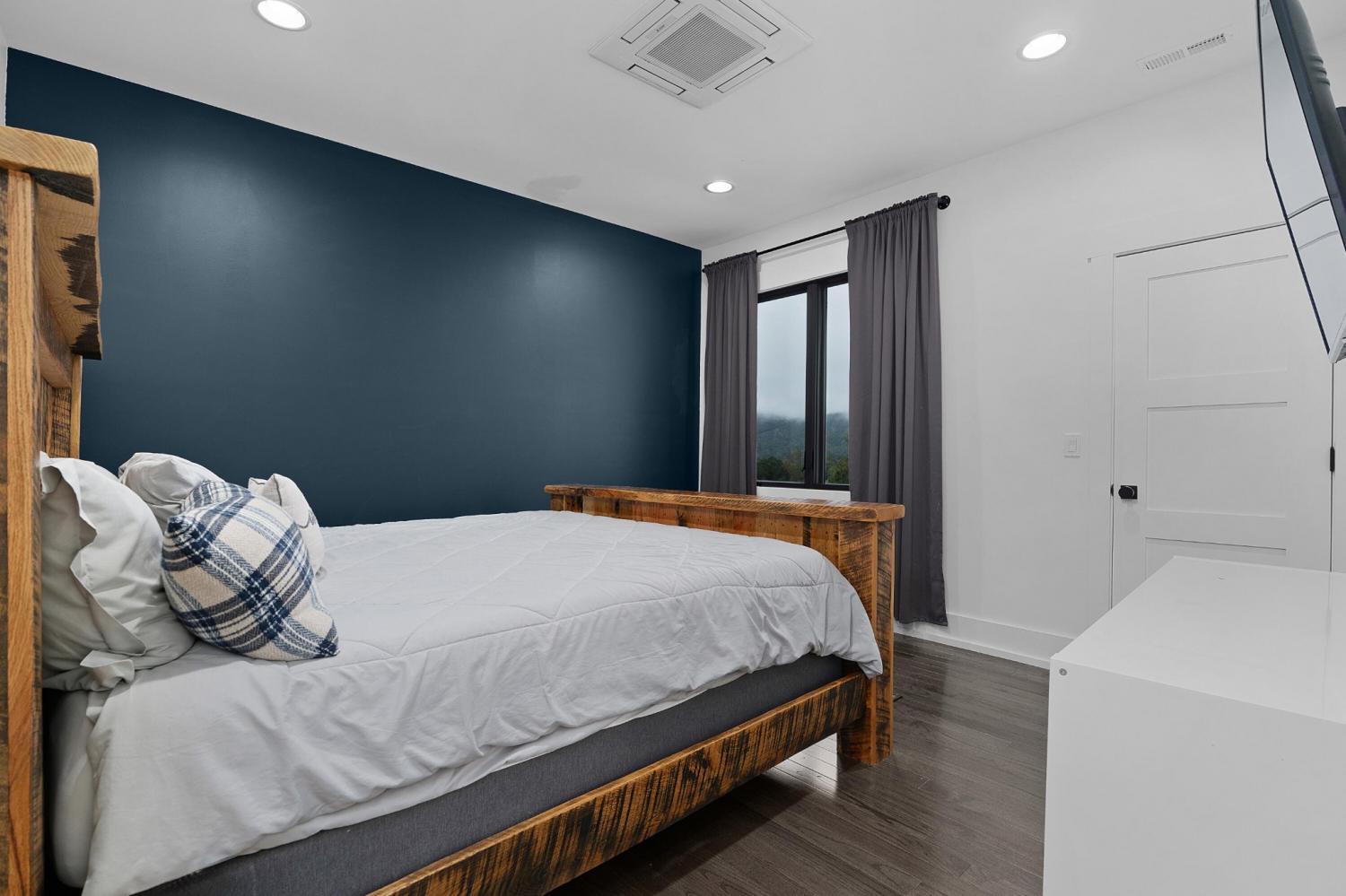 Truly spectacular modern farmhouse strategically positioned on a 1.76 +/- acre hilltop lot with a heated pool, guest house and stunning mountain views in the desirable Black Creek golf course community approximately 15 minutes to downtown Chattanooga. This well-designed home is loaded with amenities and fantastic outdoor living spaces and is truly meant for gathering and entertaining. The property features a 5 or 6 bedroom, 4.5 bath, 4,700 +/- sf main house with a 4-car garage, as well as a pool house with a rec room, kitchenette, double garage and a full pool bath on the main level, and a 2 bedroom, 1 bath guest apartment on the upper level, all connected via amazing outdoor living spaces. All of the garage doors are glass and provide both a modern look and great natural lighting atypical to most garages which allows for additional uses such as home gym in the pool house garage. As soon as you enter the main house, you will immediately note the wonderfully open living areas, including the kitchen, dining and great room, as well as the hardwood floors, shiplap accents walls and ceilings, and the oversized glass doors and windows with the colorful autumn views. The kitchen boasts a large center island with pendant lighting and an extra prep sink, custom cabinetry, stainless appliances, including 2 dishwashers, an under-counter microwave, an oversized built in refrigerator, and a Thor gas range with double ovens and convenient pot-filler. It also has a great workspace and a refreshment center with a sink, Bosch coffee maker and a beverage fridge with access to the mudroom/laundry with a pantry and access to the garage - perfect for loading and unloading. The center dining area has access to the powder room, staircase and a closet with access to a special room under the steps that leads to an exterior door which the sellers have utilized for their pets.