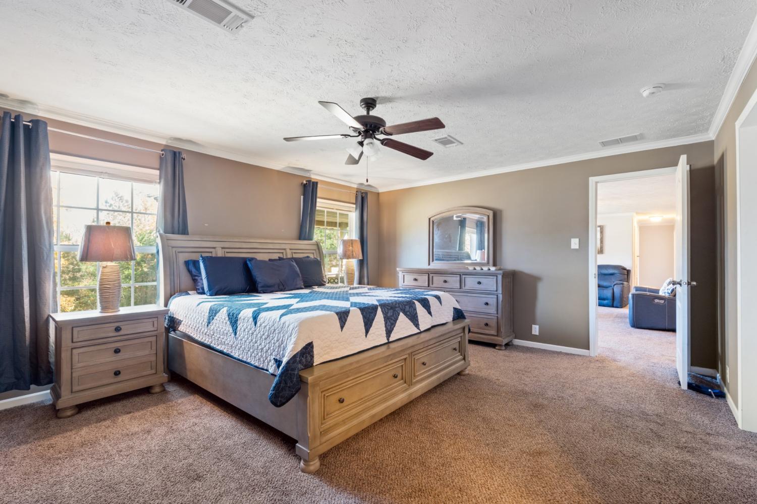 You will feel right at home here at 381 Baker Ridge Rd!! Sitting on 1.4 acres, this 3 BR/ 2 BA home has an open concept with spacious rooms, including an enormous utility/mud room with a wash sink. The kitchen not only has a kettle faucet, but tile backsplash, an abundance of cabinetry and a massive island. All bedrooms have a walk-in or large closet. Nice soaking tub in master bath, in addition to a large tiled shower. A conveniently attached 2 car garage. You will be impressed with the 30x60 screened-in back patio...perfect for family gatherings and entertaining!! You will also admire the covered front porch that has a relaxing view. A Generac generator, ensuring you never lose power and can remain comfortable regardless of the weather. A 16x25 storage building/workshop. The 25ft above ground salt water pool is 2 years old. Great garden spots. This property is a must see!!