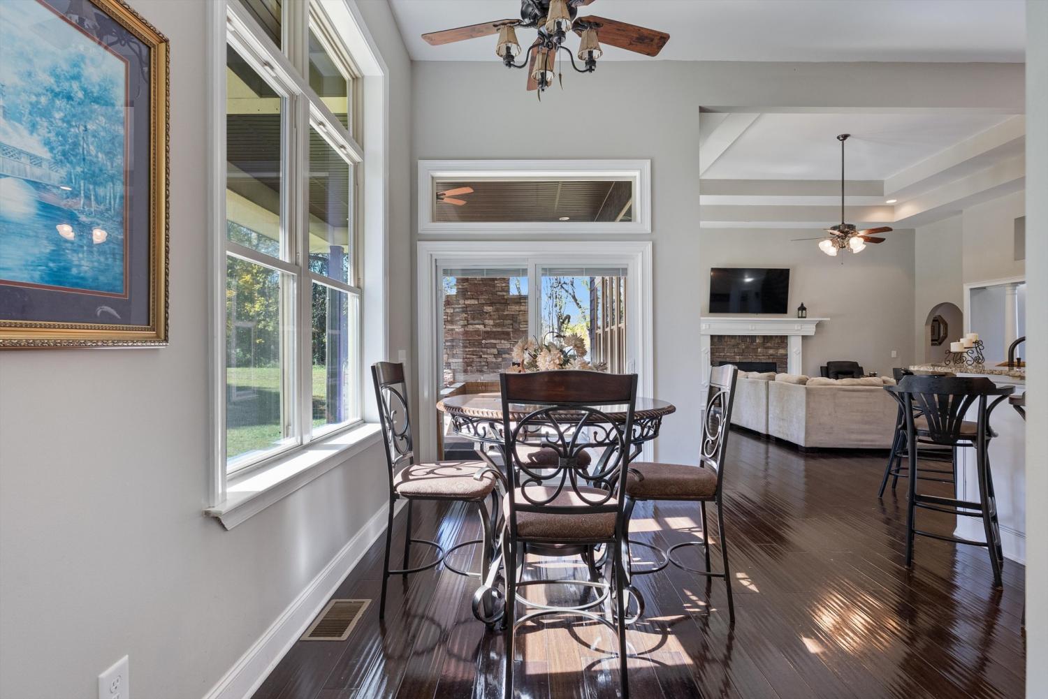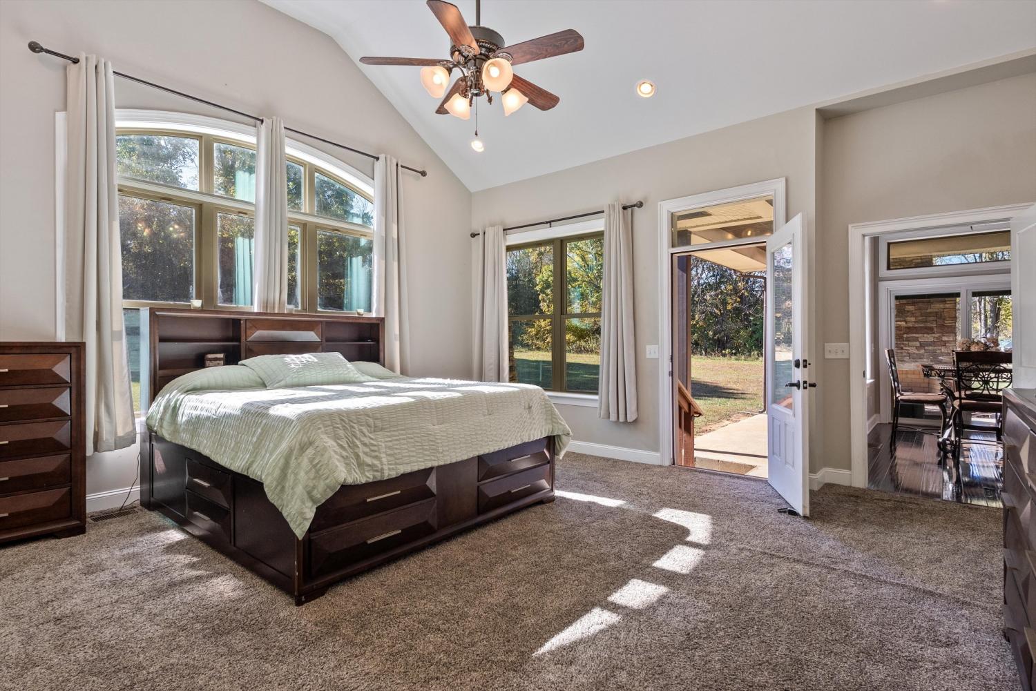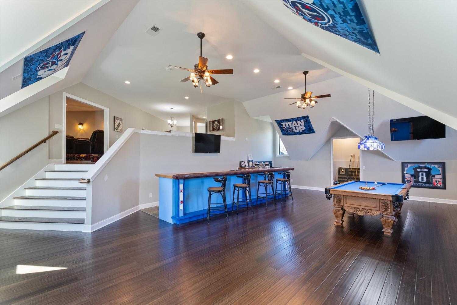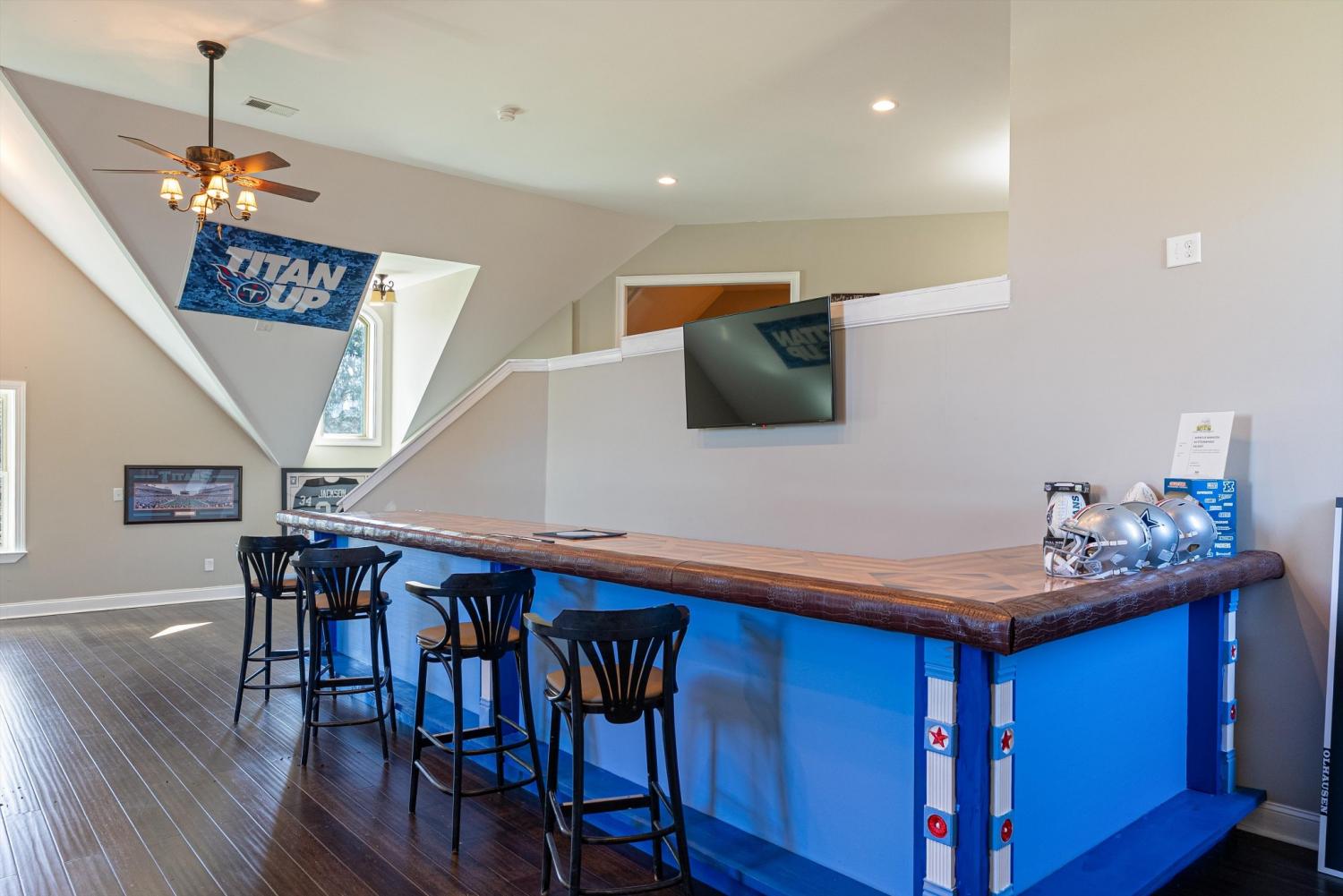 Welcome to 472 Parker Rd - The ultimate private retreat in Portland TN! Located at the true halfway point between Nashville and Bowling Green Kentucky, this luxurious gem sits on 5 pristine acres surrounded by mature trees and wide open green space. An additional 12-15 acres is also available for purchase, expanding the possibilities even further. Reach out for details on the additional acreage. Inside, the main floor delivers pristine luxury with an open living and kitchen layout ideal for everyday comfort and entertaining. Tall ceilings and a stunning stone fireplace anchor the living space, while massive windows flood the home with natural light. Standing in the kitchen, you get a sweeping view of the property, and it genuinely feels like the serenity of the outdoors flows right inside. The primary suite brings spa-level relaxation with dual sinks, a huge walk-in shower, and a jetted soaking tub. It also includes direct access to the back patio, giving you a private place to step out and unwind. Two additional main-floor bedrooms add convenience and flexibility. Hardwood floors run throughout these rooms, and every bedroom includes a ceiling fan. Upstairs, you step into a full entertainment zone with a full bar, shuffleboard, a pool table, and a dedicated movie theatre room. Furniture comes with the home if you'd like, and sports memorabilia are negotiable, making this a phenomenal turnkey setup. The outdoor potential is one of the biggest highlights. With 5 acres and the option to make it around 20 acres total, this property offers room for a future pool, horses, or a full garden setup. There is plenty of space to build out raised beds, plant fruit trees, or create your own small farm. A cleared walking trail is already in place for peaceful exploring. The back patio includes a large stone fireplace and overlooks the tranquil landscape. This home is the perfect blend of privacy, comfort, and luxury. You need to see this one in person to truly appreciate it!