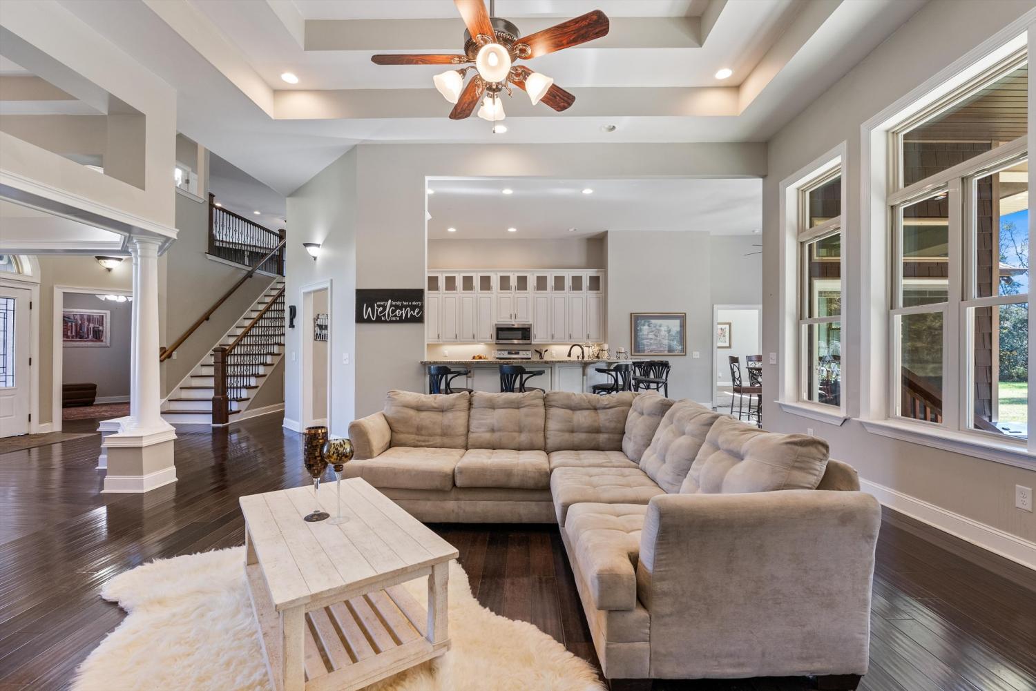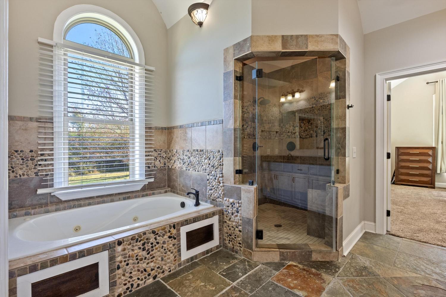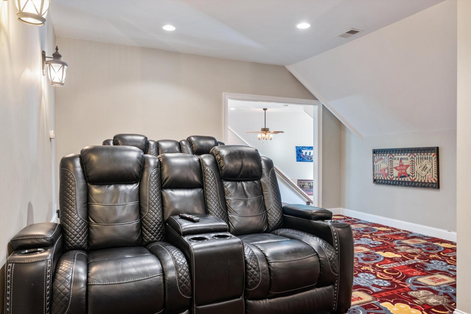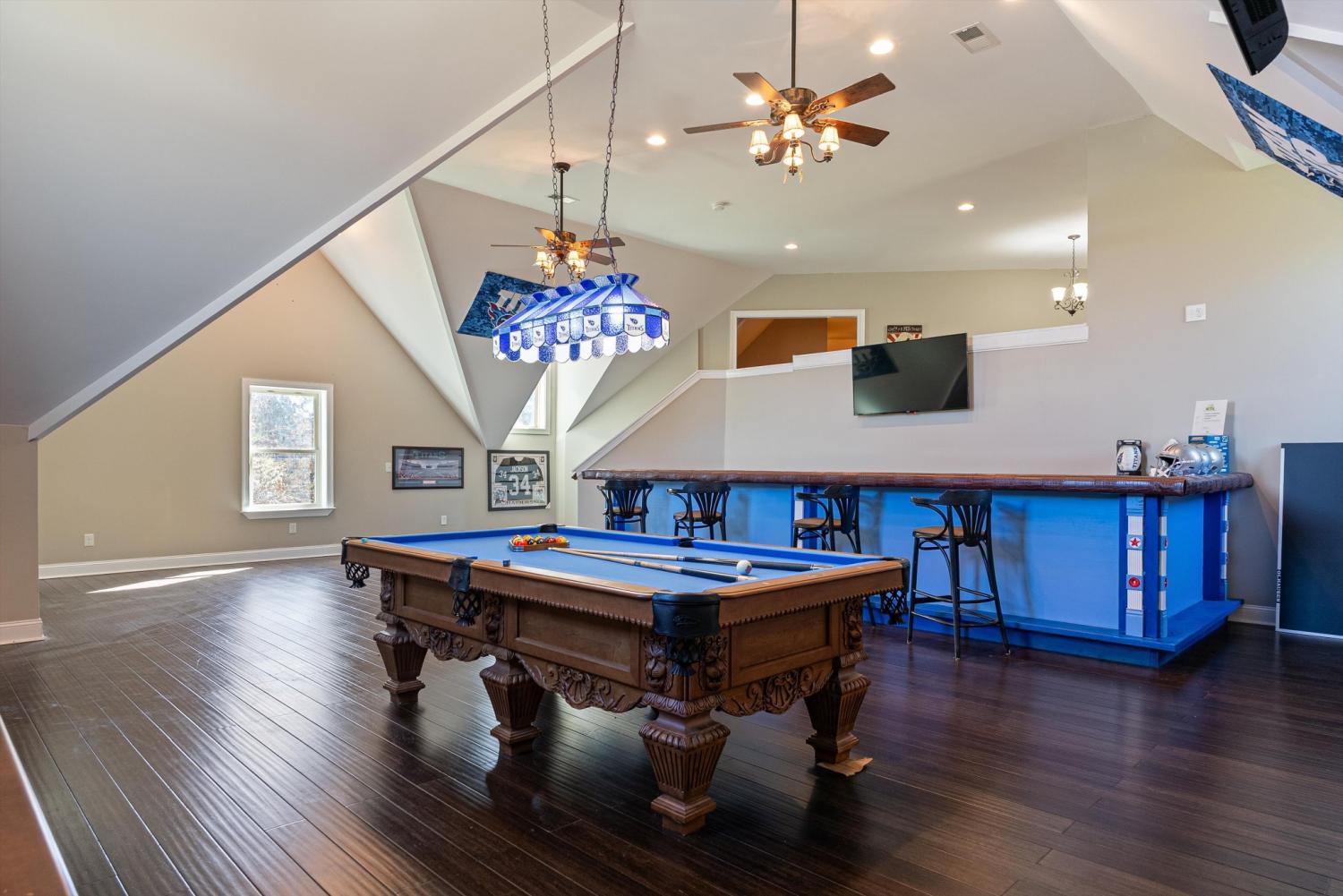 Welcome to 472 Parker Rd - The ultimate private retreat in Portland TN! Located at the true halfway point between Nashville and Bowling Green Kentucky, this luxurious gem sits on 5 pristine acres surrounded by mature trees and wide open green space. An additional 12-15 acres is also available for purchase, expanding the possibilities even further. Reach out for details on the additional acreage. Inside, the main floor delivers pristine luxury with an open living and kitchen layout ideal for everyday comfort and entertaining. Tall ceilings and a stunning stone fireplace anchor the living space, while massive windows flood the home with natural light. Standing in the kitchen, you get a sweeping view of the property, and it genuinely feels like the serenity of the outdoors flows right inside. The primary suite brings spa-level relaxation with dual sinks, a huge walk-in shower, and a jetted soaking tub. It also includes direct access to the back patio, giving you a private place to step out and unwind. Two additional main-floor bedrooms add convenience and flexibility. Hardwood floors run throughout these rooms, and every bedroom includes a ceiling fan. Upstairs, you step into a full entertainment zone with a full bar, shuffleboard, a pool table, and a dedicated movie theatre room. Furniture comes with the home if you'd like, and sports memorabilia are negotiable, making this a phenomenal turnkey setup. The outdoor potential is one of the biggest highlights. With 5 acres and the option to make it around 20 acres total, this property offers room for a future pool, horses, or a full garden setup. There is plenty of space to build out raised beds, plant fruit trees, or create your own small farm. A cleared walking trail is already in place for peaceful exploring. The back patio includes a large stone fireplace and overlooks the tranquil landscape. This home is the perfect blend of privacy, comfort, and luxury. You need to see this one in person to truly appreciate it!