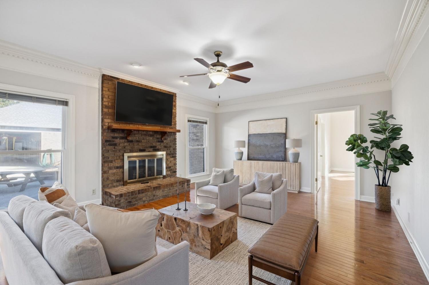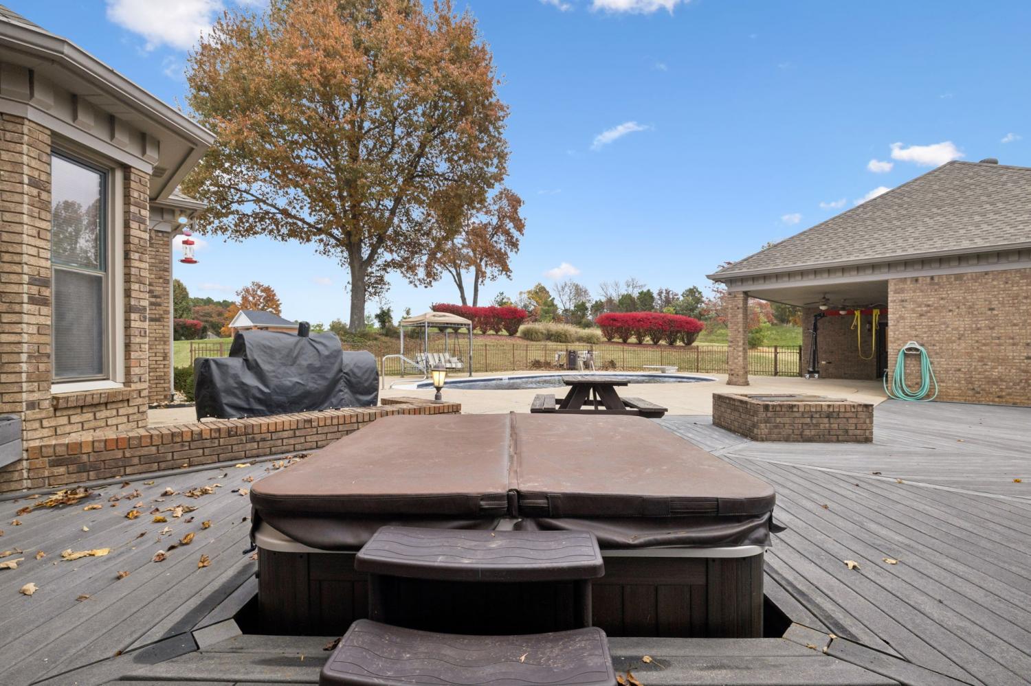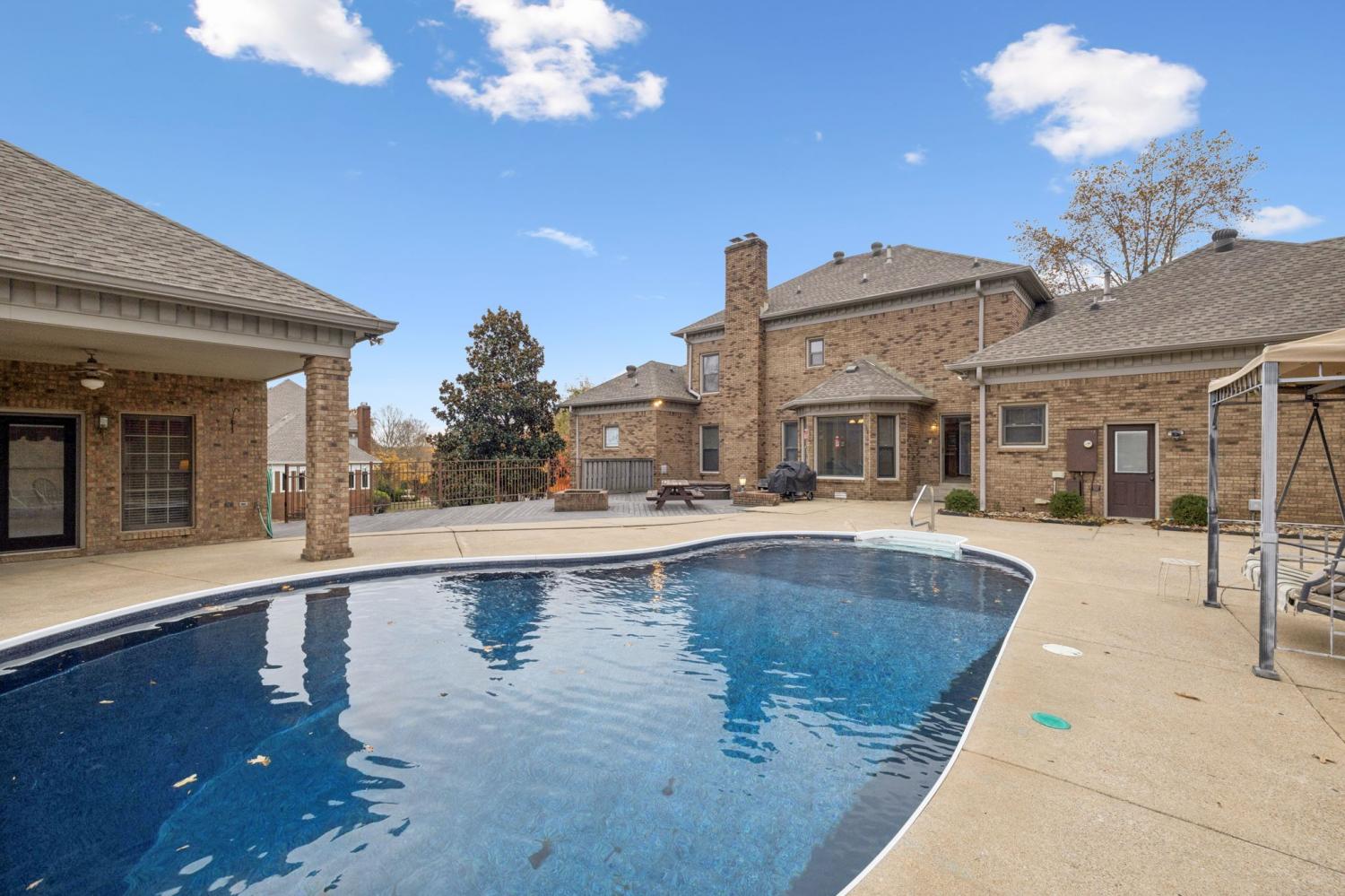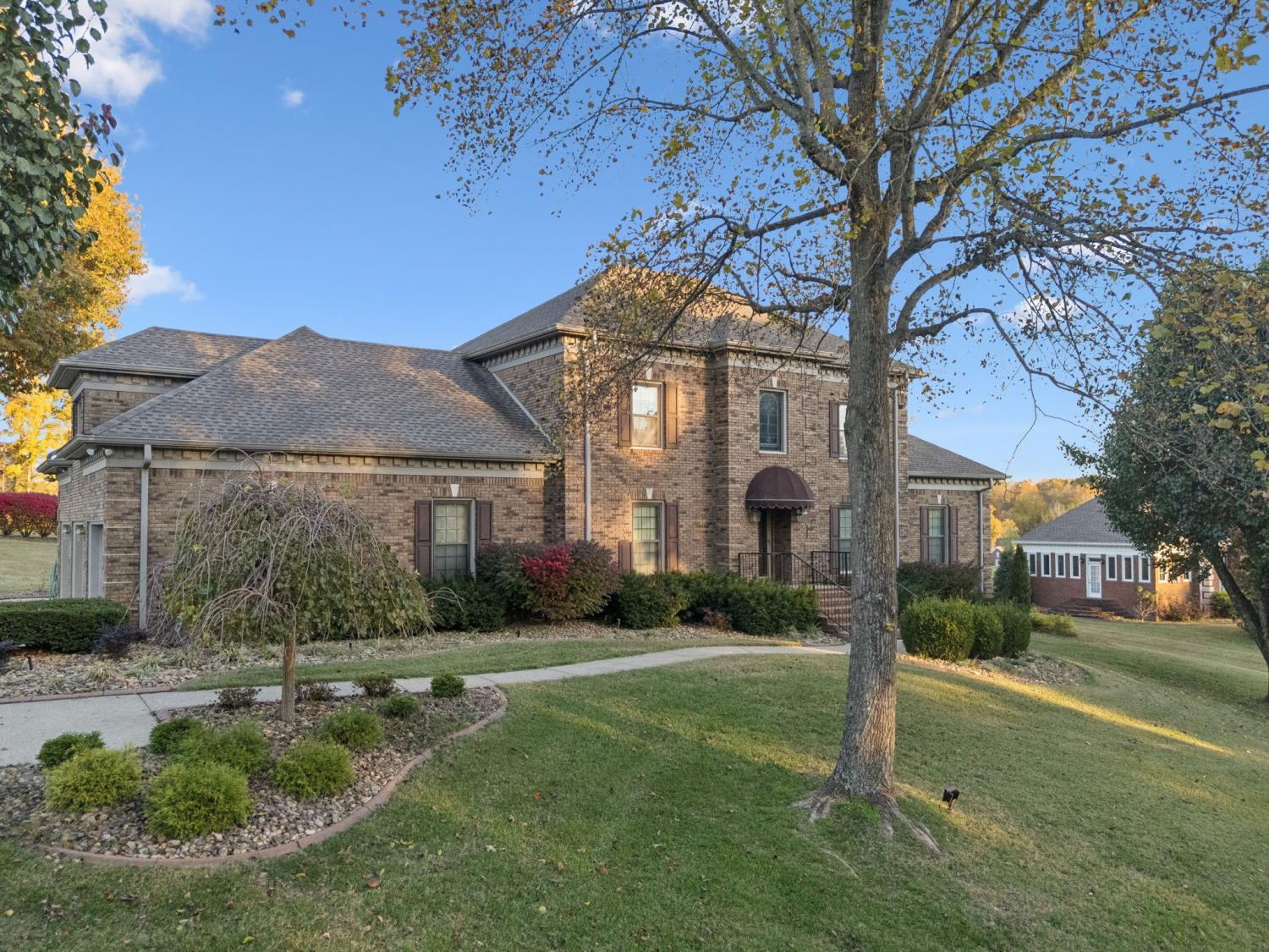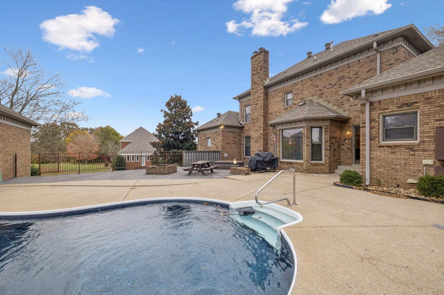 Nestled in one of Clarksville’s most desirable neighborhoods, 17 Huntington Drive offers the perfect blend of classic brick architecture and resort-style living. Pull into the spacious concrete drive, and 3-car garage to set the tone for what’s inside — a layout designed for both comfort and connection. FRESHLY PAINTED main living and 3 bedrooms upstairs-The main level features a welcoming foyer, formal dining and living rooms, a cozy den with a traditional brick fireplace, a beautifully maintained kitchen, and a convenient half bath with laundry (WITH A LAUNDRY CHUTE). The main-level primary suite provides a peaceful retreat with abundant natural light and an en-suite bath. Upstairs you’ll find three additional bedrooms, two full bathrooms, and a large bonus room. There is a 3 car garage on the side main level and below, a full-sized garage door opens to a partial basement ideal for storage or a workshop. The outdoor living space is nothing short of exceptional. Enjoy a sparkling in-ground heated salt pool with a brand-new liner and pump; plus a sunken spa, built-in firepit, and a composite deck perfect for entertaining. The detached pool house is a true highlight, offering full guest accommodations complete with its own bedroom and full bath, full kitchen, living room, and separate laundry with a half bath. Opportunities to own a home in this coveted neighborhood are few and far between — this one is truly special.