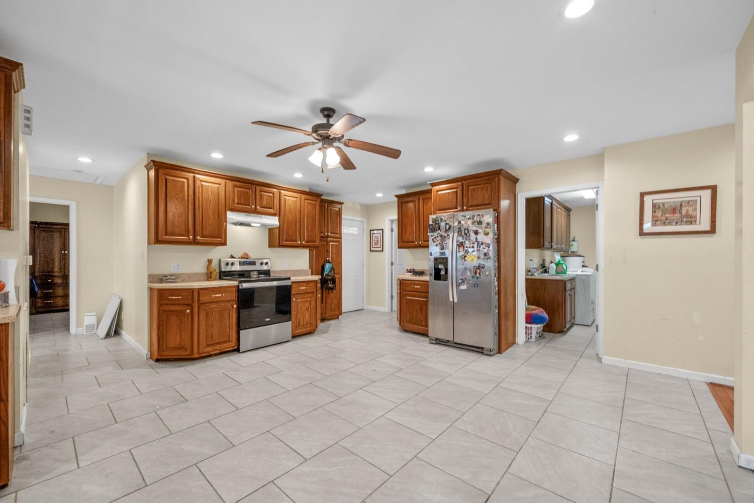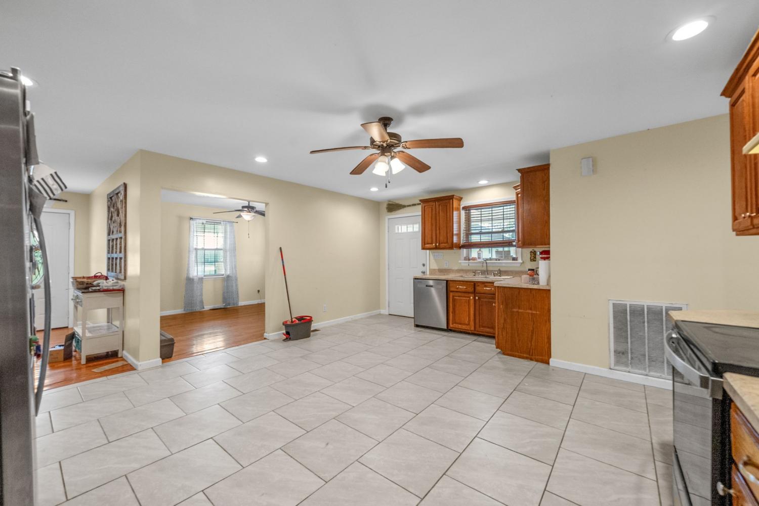 4-bedroom, 2.5-bath home offers a great layout with a huge kitchen that opens to the living areas, creating an easy flow throughout. It features hardwood and tile flooring, a nice-size laundry room, and an accessible bathtub for added convenience. Enjoy the outdoors with a covered deck and spacious front and back yards, plus a concrete driveway, carport, and storage building for extra space. The home also includes a durable metal roof and a propane tank, combining practicality with comfort—ready for you to move right in and make it your own.