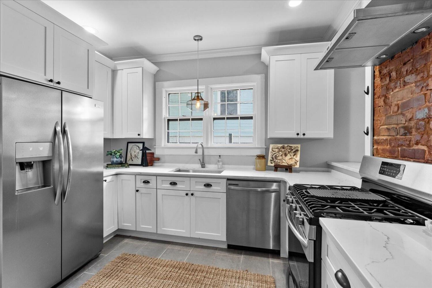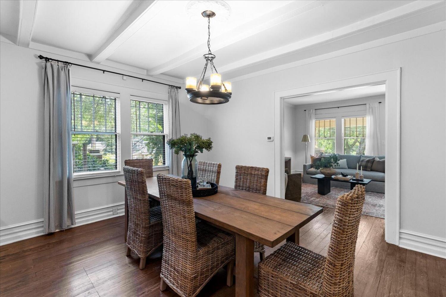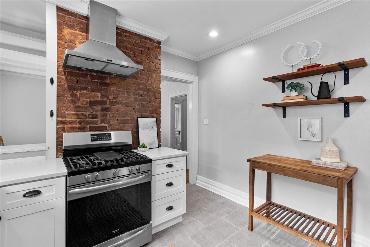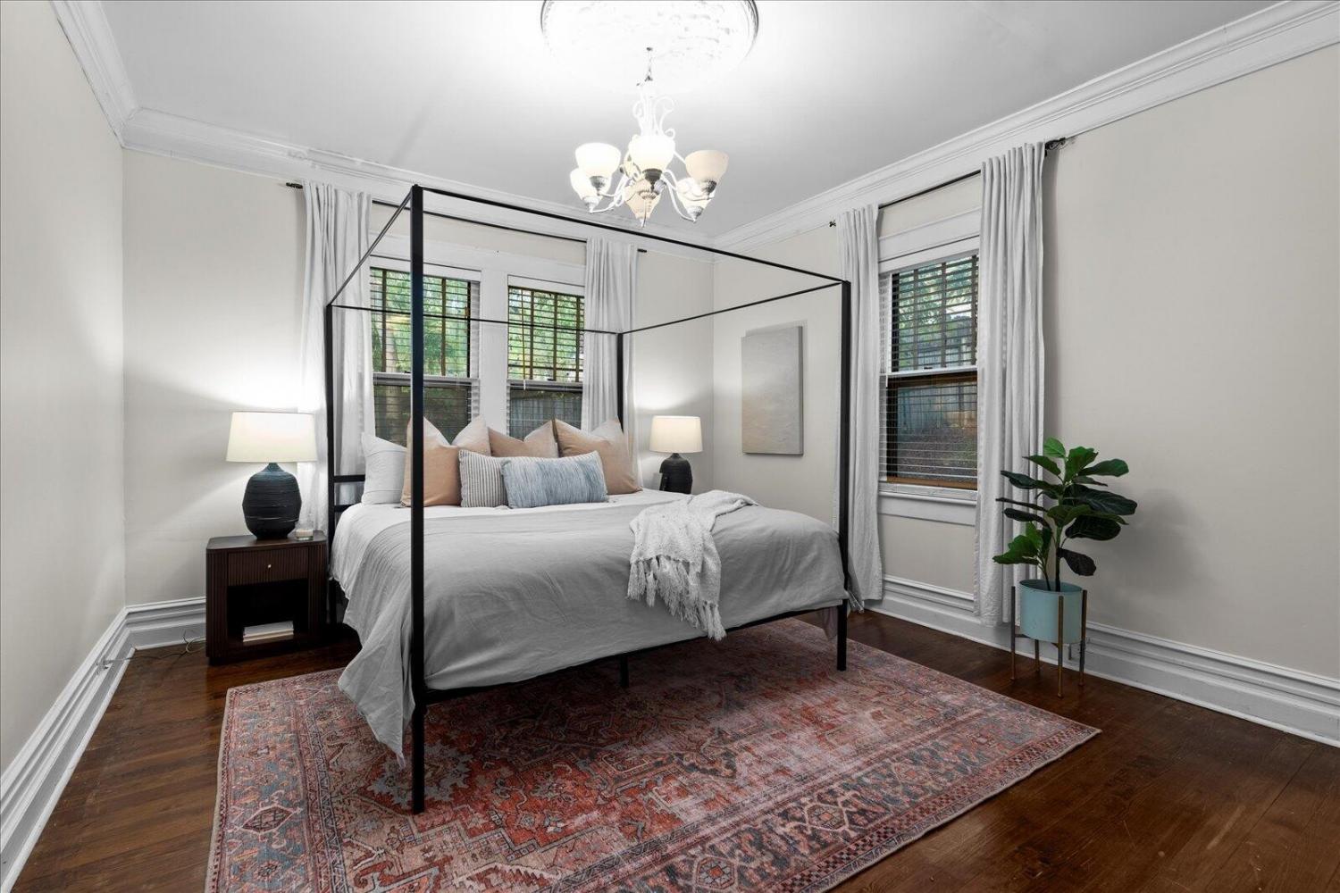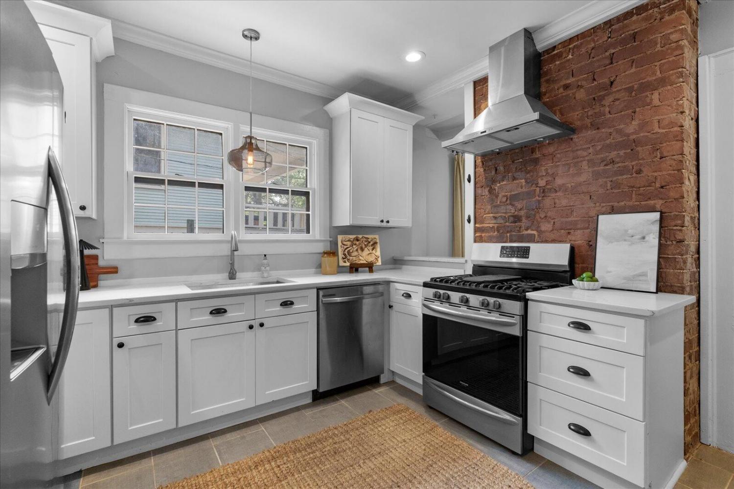 Charming 1925 St. Elmo Home with new updates including: new shingle roof, updated decking, fascia, corbels, and soffit, foundation work, new moisture shield vapor barrier in crawlspace, repointed brick, electrical updates, new water heater, HVAC unit, new fence, interior and exterior paint, and a termite bond. This beautifully restored 1925 home in the heart of St. Elmo seamlessly combines historic charm with thoughtful modern updates. Recent renovations include a fully remodeled kitchen, upgraded HVAC system, and an updated primary bathroom. Enjoy scenic Lookout Mountain views from the inviting covered front porch. Inside, you'll find a spacious living room and a formal dining room with a beamed ceiling and exposed brick fireplace—perfect for gatherings. The kitchen features rich wood cabinetry, granite countertops, and updated appliances. The primary suite offers a private bath with a tiled shower, while two additional bedrooms share a full hall bath. Original details like hardwood floors, crown molding, and high ceilings enhance the home's character throughout. Additional highlights include a fenced backyard, detached garage, off-street parking, an enclosed mudroom, and an expansion-ready attic. All information is deemed reliable but not guaranteed. Buyers to verify all details. Schedule your private showing today!