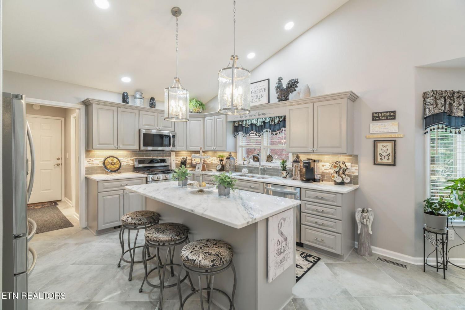 BRAND NEW ROOF! Have you dreamed of retiring somewhere that feels like a vacation—where every day brings new ways to stay active, meet new friends, and enjoy nature? Welcome to your next chapter in Fairfield Glade, Crossville's premier active lifestyle community. This fully remodeled ranch-style home backs up to the Catawba Forest Reserve Sanctuary, giving you unmatched privacy and a serene natural setting—perfect for peaceful mornings and quiet evenings. Designed for ease, comfort, and low-maintenance living, this home is ideal for those who want to spend less time on upkeep and more time enjoying life. Step inside to discover vaulted ceilings, an open-concept layout, and stunning woodland views through energy-efficient Anderson windows. A two-way gas fireplace connects the cozy living area with the bright breakfast nook, creating the perfect space for relaxing or entertaining. A brand new high end fiberglass roof was just installed in November 2025 and comes with a 10- year full warranty. The kitchen is both beautiful and functional, with granite countertops, new stainless appliances (including a gas stove), and a large center island ideal for gathering. Whether you're cooking a meal for two or hosting visiting family, this space makes it effortless. The spacious master suite features a luxurious walk-in tile shower, dual vanities, and a private sunroom—ideal for a home office, craft space, or simply enjoying your morning coffee in peace. Two additional bedrooms and an updated guest bath make it easy to host friends or grandkids with comfort. Outside, enjoy a level yard with mature trees, a freshly painted deck, and room for birdwatching, reading, or just taking in the fresh mountain air. With a double-car garage and over $150K in thoughtful upgrades, you can simply move in and start enjoying. Living in Fairfield Glade means joining a vibrant, active community where opportunities to stay social and active are everywhere.