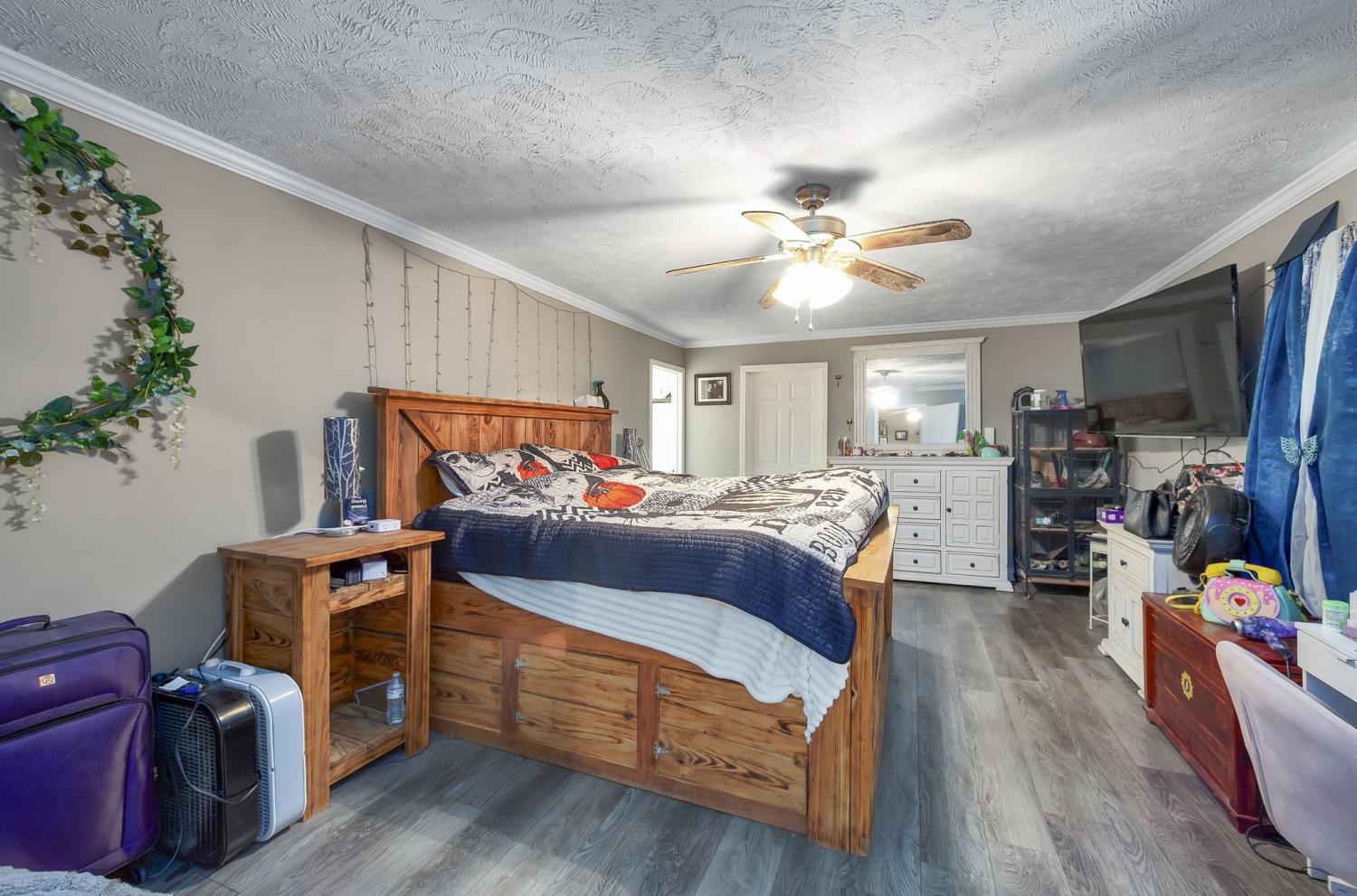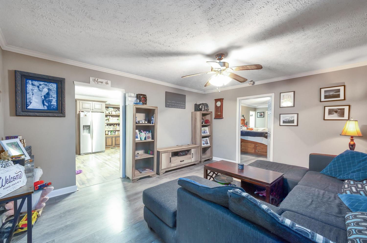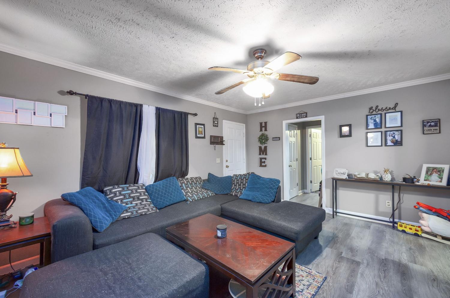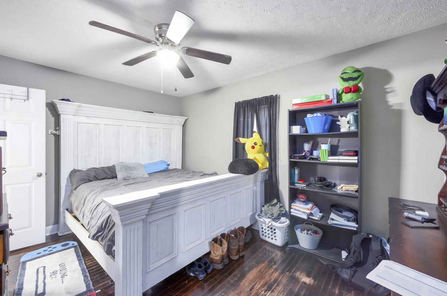 Spacious 3,780 sq. ft. home featuring 4 bedrooms and 2.5 baths with plenty of extra space throughout. The main level offers 3 bedrooms, 2 full baths, and a large bonus room on the back of the home—perfect for a family room or game area. Upstairs includes an additional bedroom, half bath, and a generous storage area. The fenced backyard includes a storm shelter and is ideal for pets or outdoor entertaining. Conveniently located in town, close to shopping, schools, and amenities.