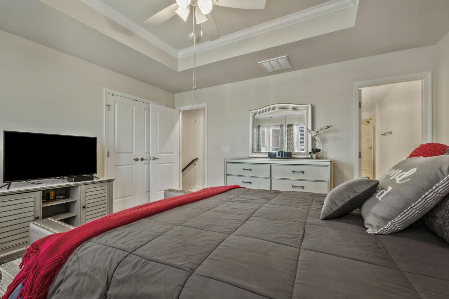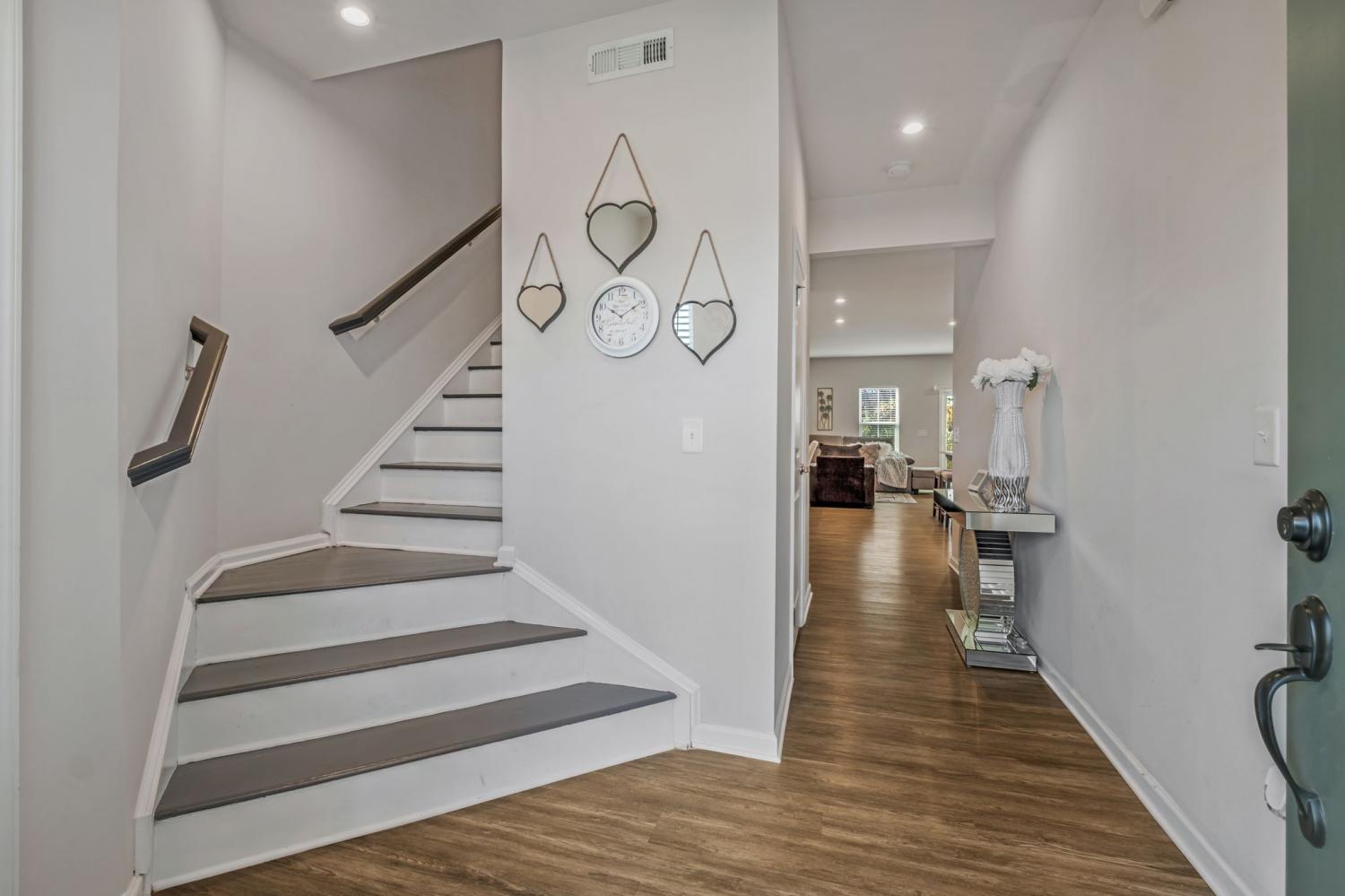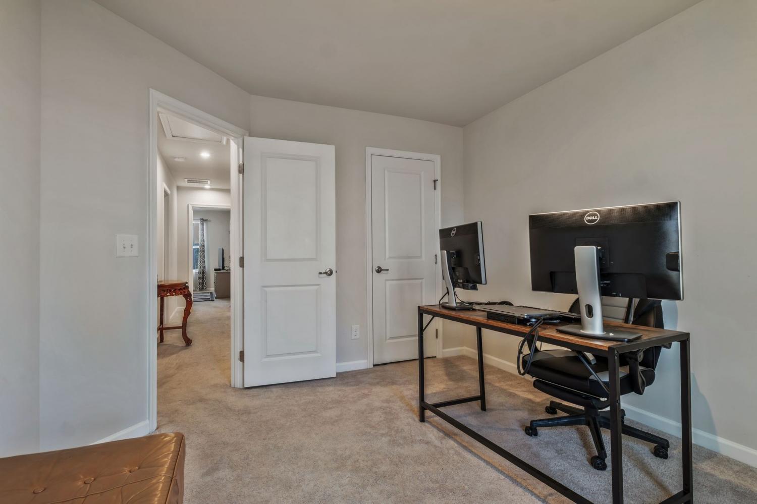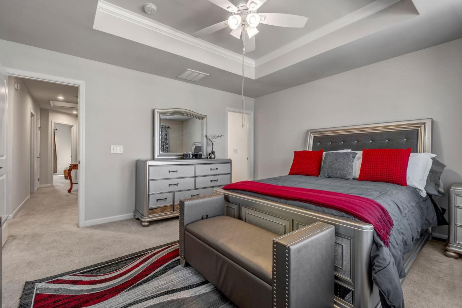 Gorgeous Roxbury floor plan featuring a 6-ft patio extension and a private backdrop of mature trees. This spacious home offers 3 bedrooms, 2.5 bathrooms, and a 1-car attached garage. The open-concept layout includes hard-surface flooring throughout and an exceptional kitchen with 42-inch black cabinets, a large island, stainless steel appliances, and quartz . countertops. The owner’s suite showcases a tray ceiling, double vanity, a dual-head Roman tile shower with bench, and separate walk-in closets. Secondary bedrooms are generously sized and also feature walk-in closets. Also take advantage of this home’s assumable interest rate.