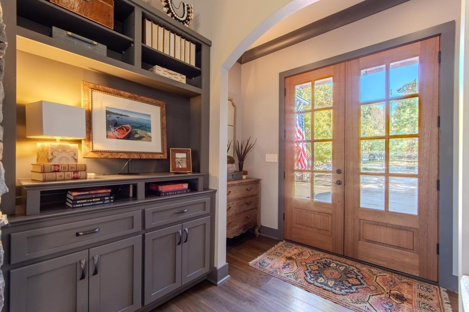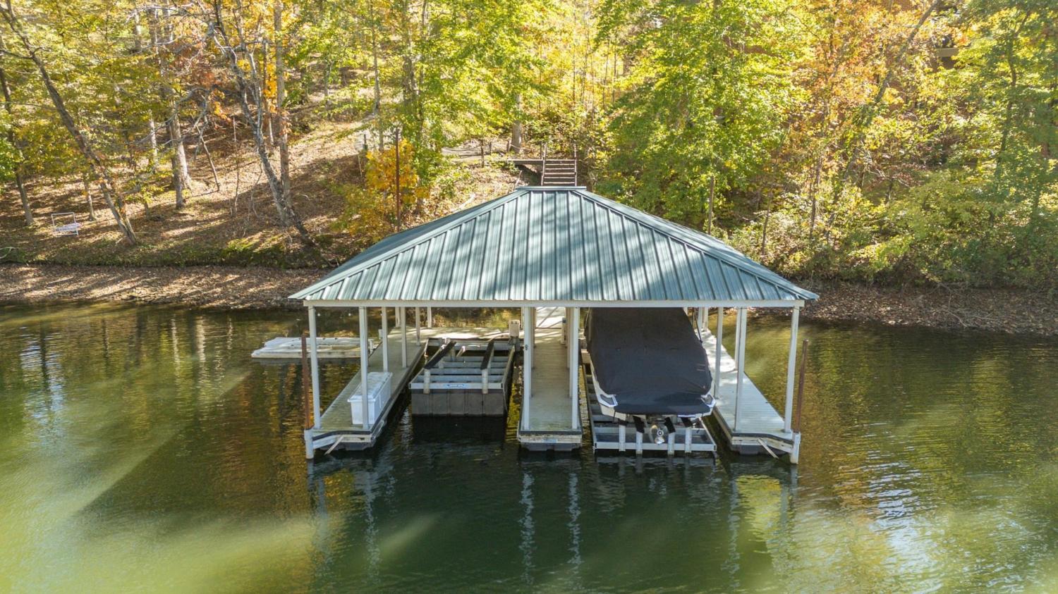 Nestled within the prestigious gated community of The Preserve at Pickwick, this stunning four-bedroom home offers luxurious living. The main level welcomes you with an open-concept design, showcasing hardwood floors, a striking stone fireplace, & rustic cedar beams. The gourmet kitchen features custom cabinetry, elegant quartz countertops, & stainless steel appliances. The master suite is complete with a tile shower & heated floors. Step outside onto the covered porch over looking the wooded scenery & the waters of Pickwick Lake. Boating enthusiasts will appreciate the convenience of a covered slip in a private dock, equipped w/ a ski boat lift & seadoo port. The lower level is designed for relaxation & entertainment, boasting a spacious den/media area, three additional bedrooms, & a full bath. Enjoy the outdoors year around on the large screened porch. Enjoy access to amenities including, clubhouse w/ swimming pool, golf simulator, HydroMassage, putt-putt, pickleball, tennis & more!