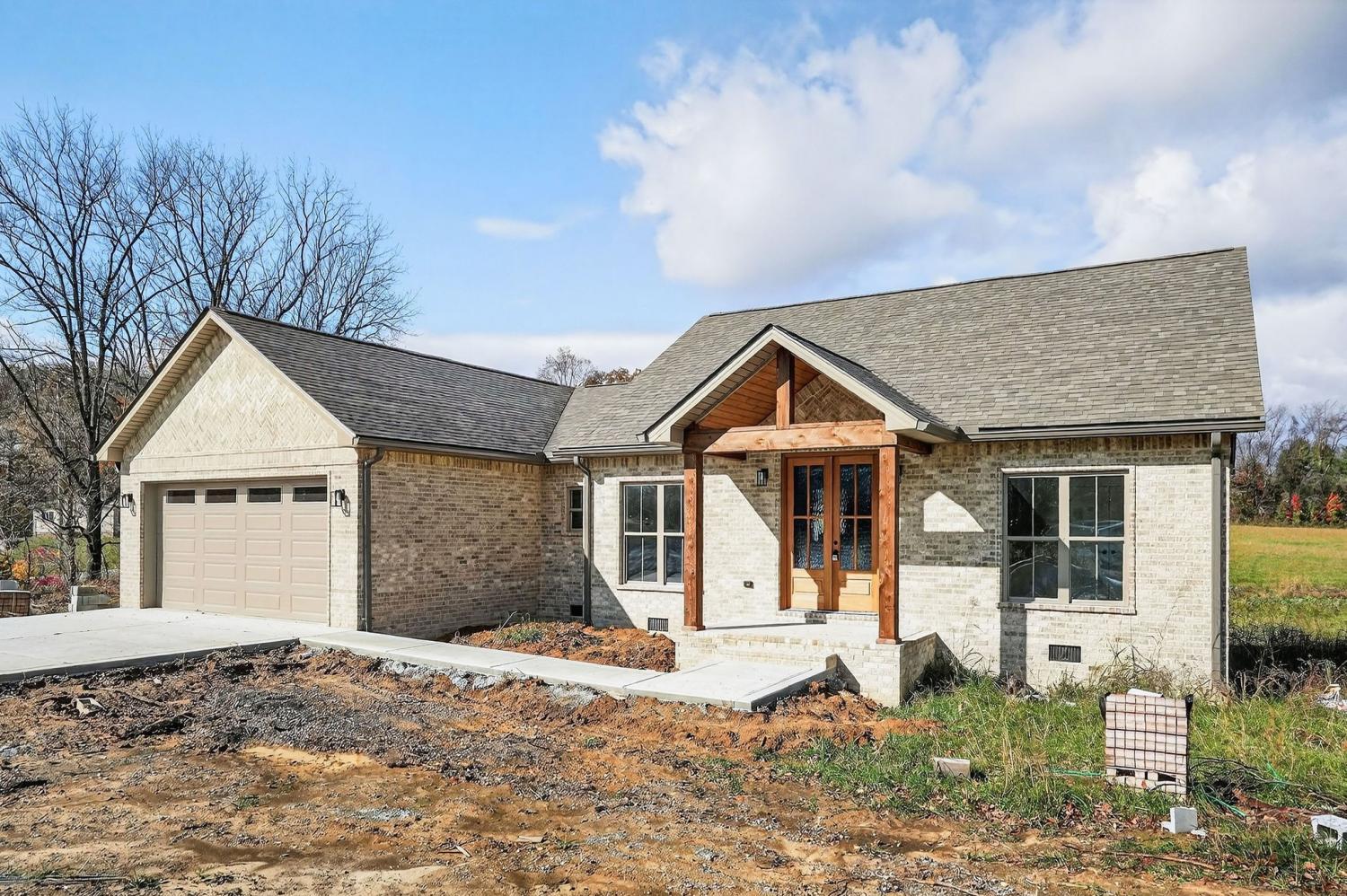Step inside this brand-new brick home perfectly situated between Rickman and Livingston with easy access to Hwy 111! With 1,600 sqft, this thoughtfully designed 3 bedroom, 2.5 bath floor plan has all the right touches. The open concept living room features tray ceilings and beautiful double wood entry doors that make a statement. The kitchen is a showstopper with a large center island, quartz countertops, pantry, and plenty of cabinet space. The split-bedroom layout offers privacy, and the primary suite includes a spacious walk-in closet, double vanities, and a stunning tiled shower. You’ll love the tiled laundry room with sink, the covered back porch with tongue-and-groove ceilings, and the garage with attic access for extra storage. Every detail has been carefully chosen for comfort, functionality, and style. Ready for you to move right in and enjoy!