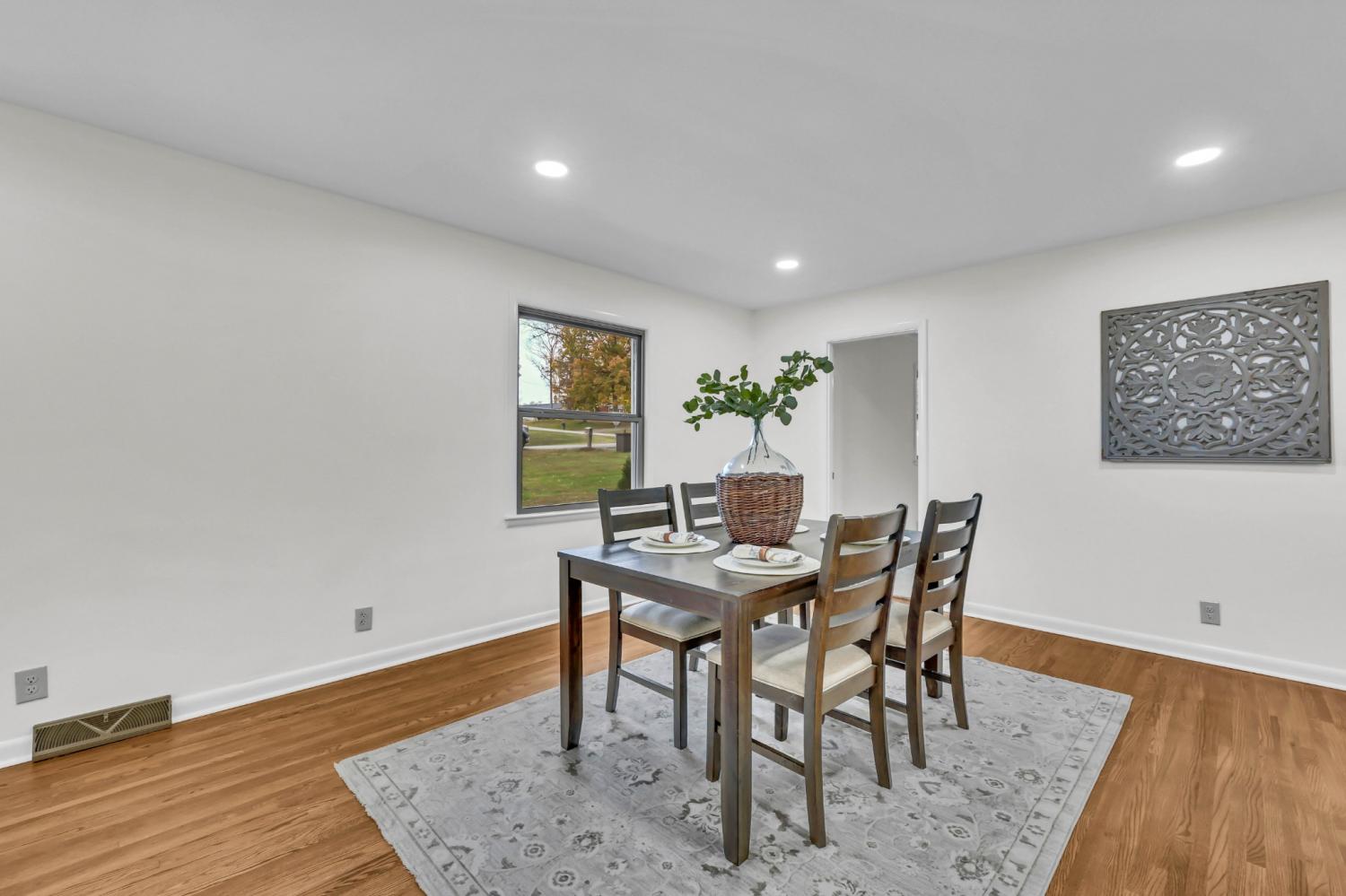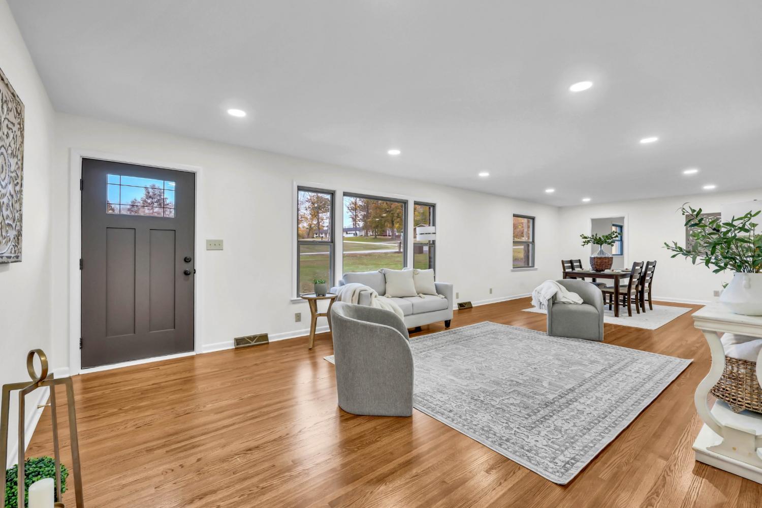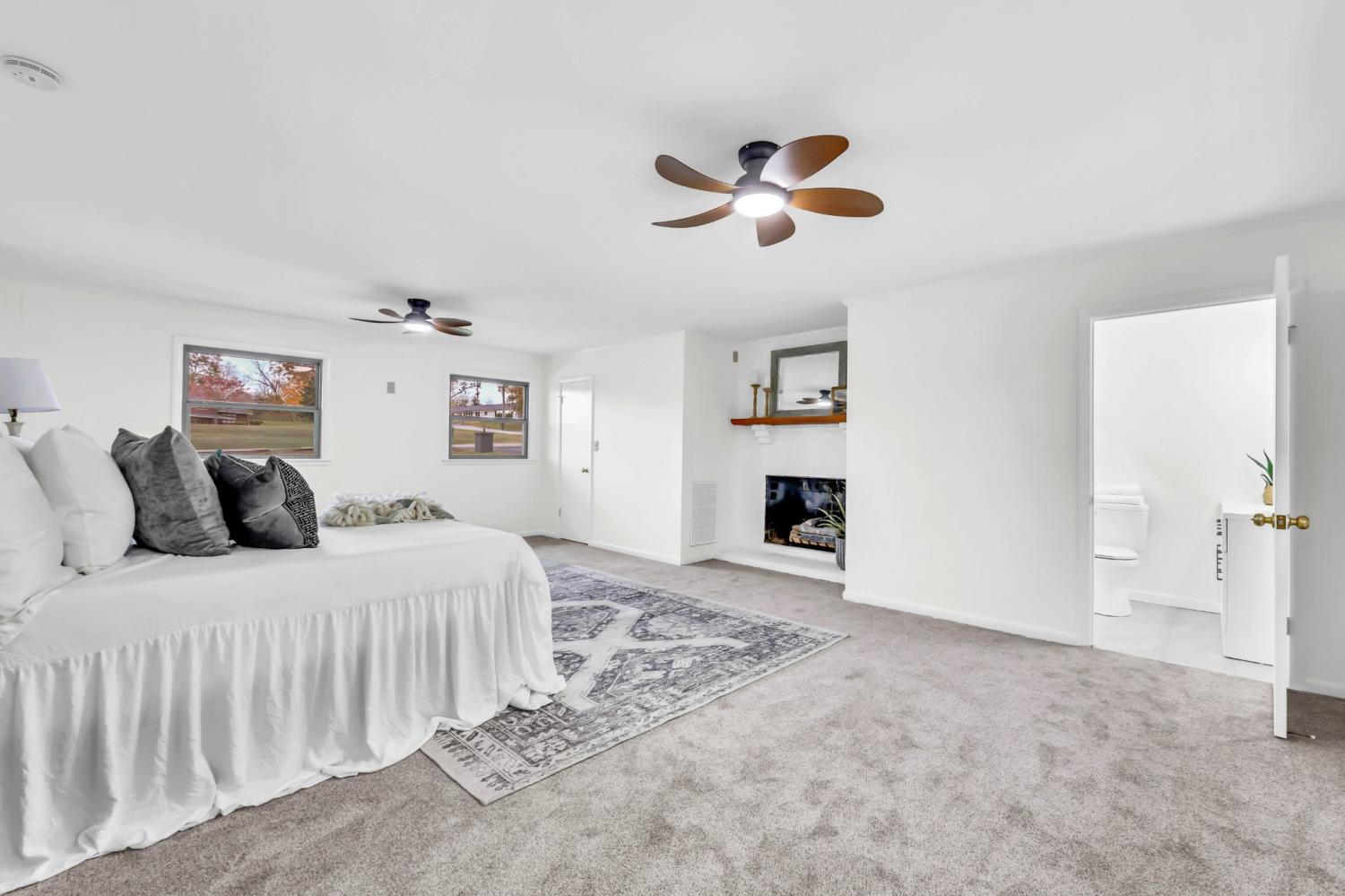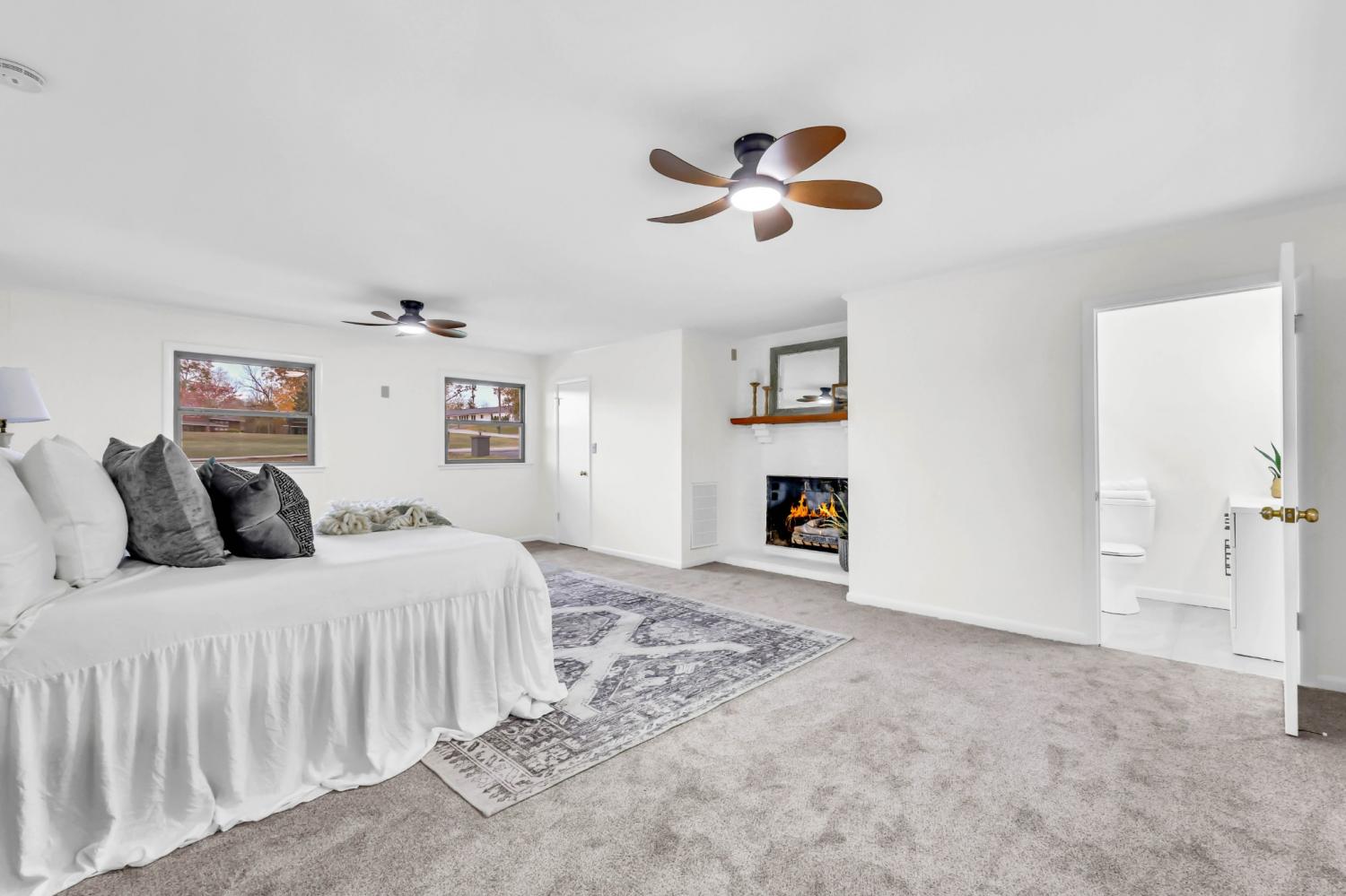 This all-brick ranch is a perfect blend of timeless character and modern design. Step inside to find gleaming hardwood floors, fresh finishes, and inviting spaces throughout. The kitchen is a showstopper—featuring new quartz countertops, new cabinetry, stainless steel appliances, a farmhouse sink, and an oversized walk-in pantry. The primary suite offers a cozy fireplace, walk-in closet, and stylishly updated bath. Every corner shines with updates: new roof, windows, flooring, bathrooms, light fixtures, landscaping, gutters, and a spacious new deck. A true laundry room with sink and storage, resurfaced wrap-around driveway, and a 20x23 storm shelter in the sub-basement with poured concrete walls complete the package. Move-in ready and beautifully redone from top to bottom.