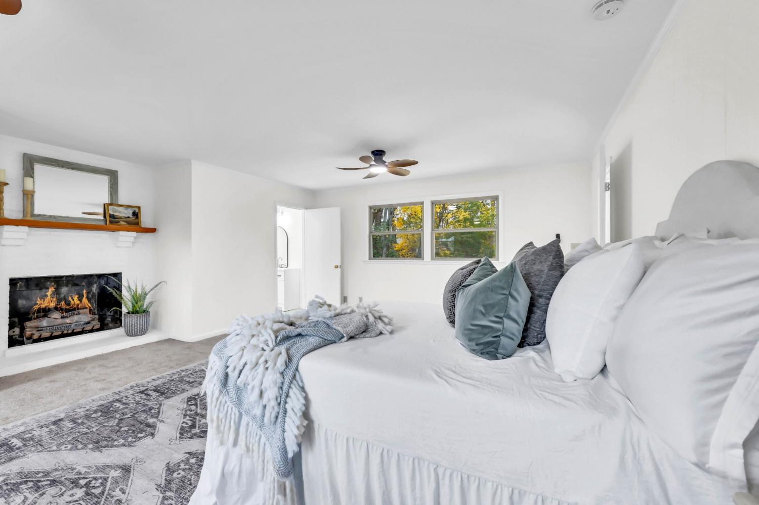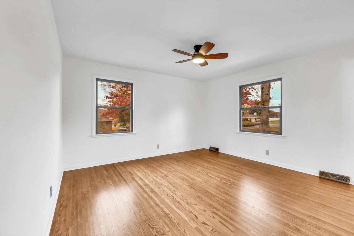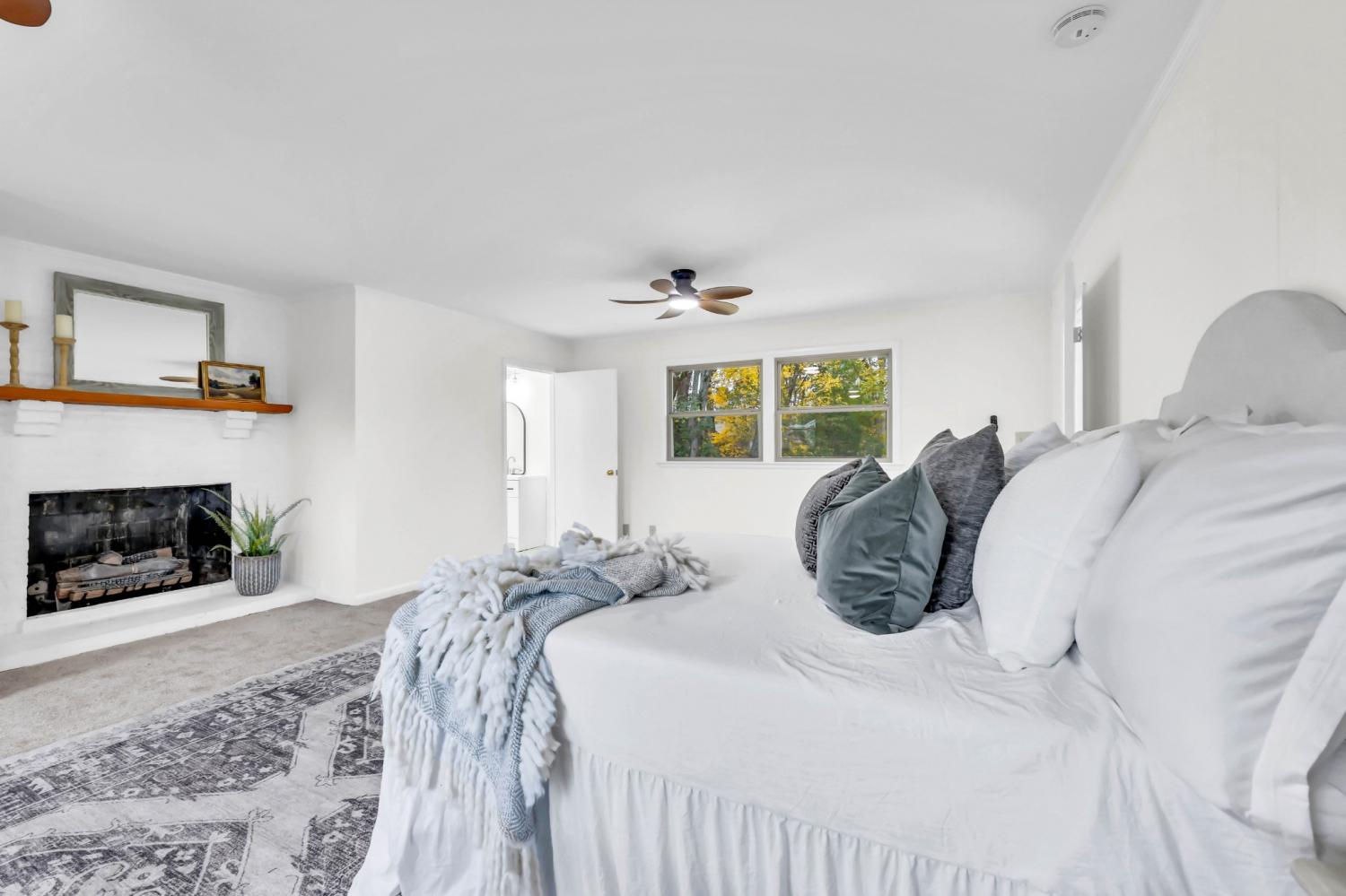 This all-brick ranch is a perfect blend of timeless character and modern design. Step inside to find gleaming hardwood floors, fresh finishes, and inviting spaces throughout. The kitchen is a showstopper—featuring new quartz countertops, new cabinetry, stainless steel appliances, a farmhouse sink, and an oversized walk-in pantry. The primary suite offers a cozy fireplace, walk-in closet, and stylishly updated bath. Every corner shines with updates: new roof, windows, flooring, bathrooms, light fixtures, landscaping, gutters, and a spacious new deck. A true laundry room with sink and storage, resurfaced wrap-around driveway, and a 20x23 storm shelter in the sub-basement with poured concrete walls complete the package. Move-in ready and beautifully redone from top to bottom.