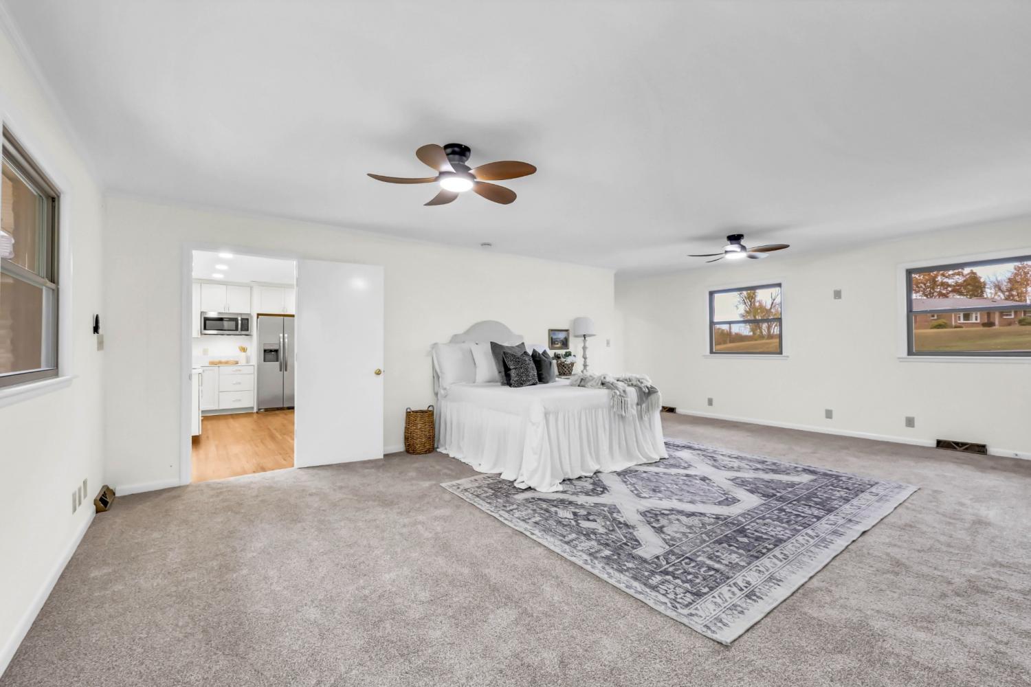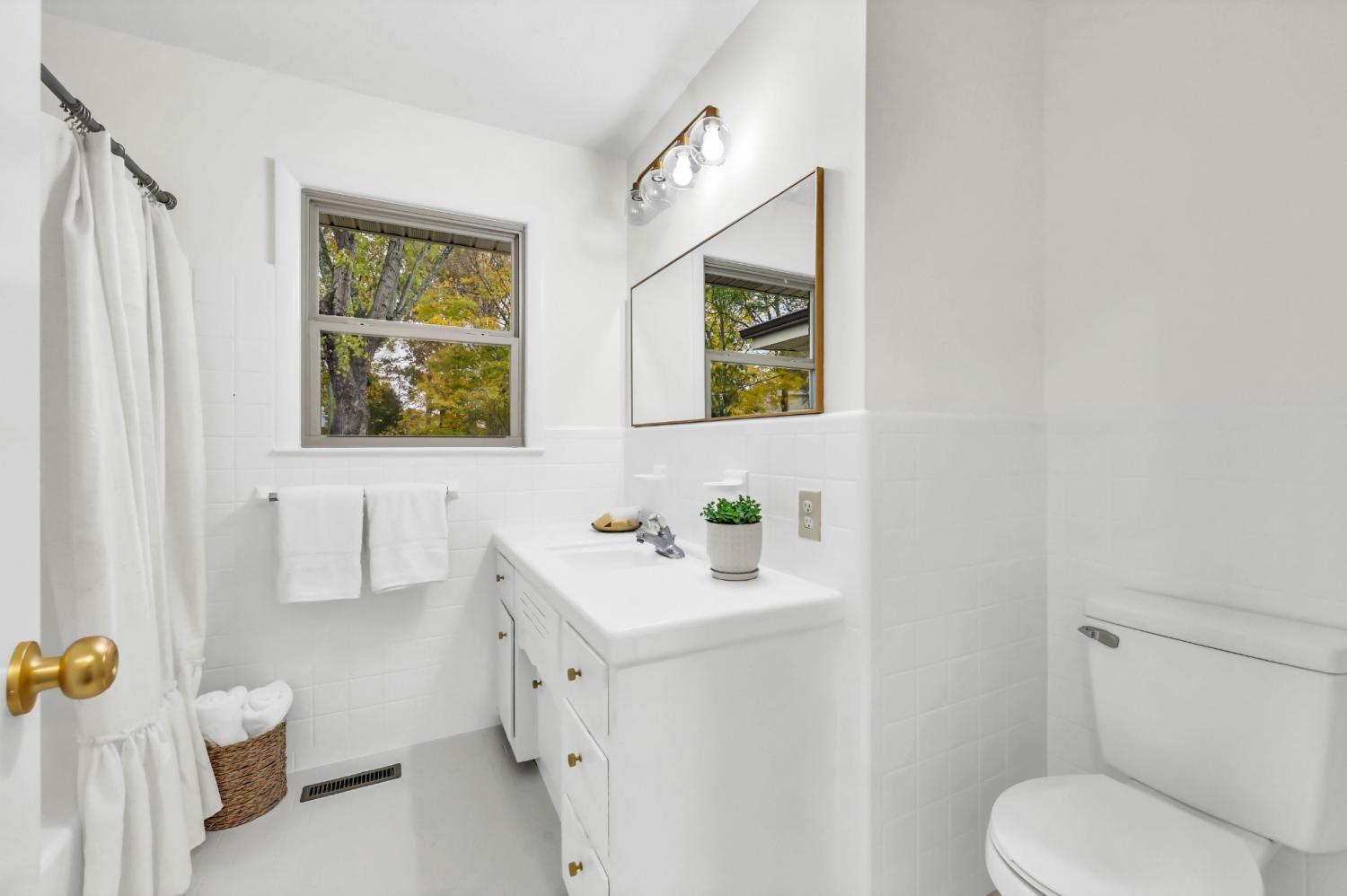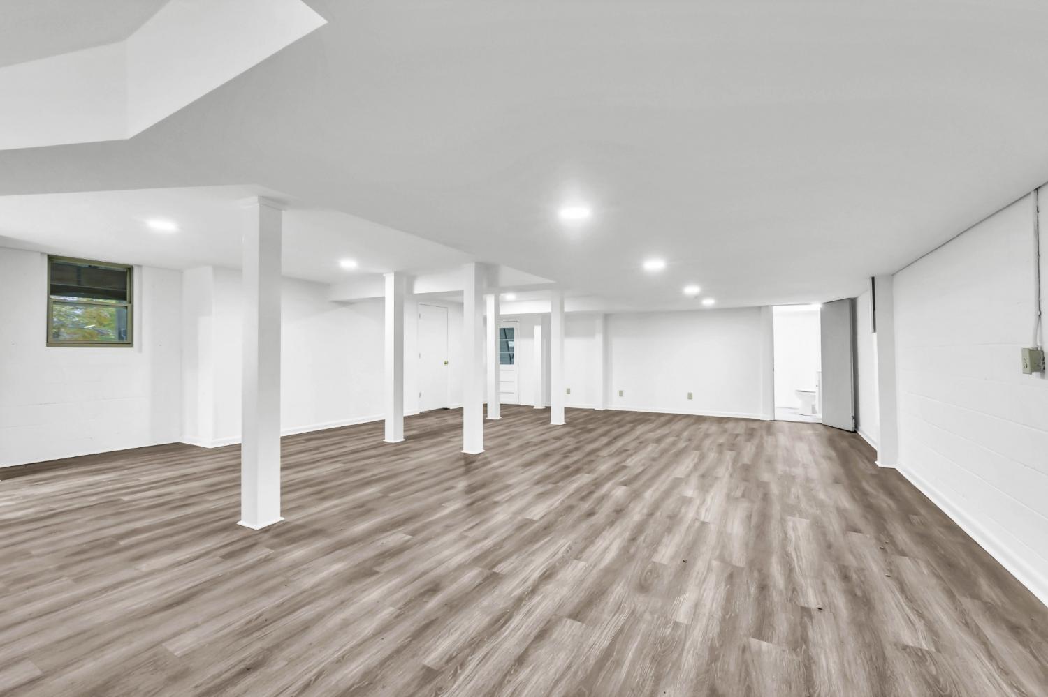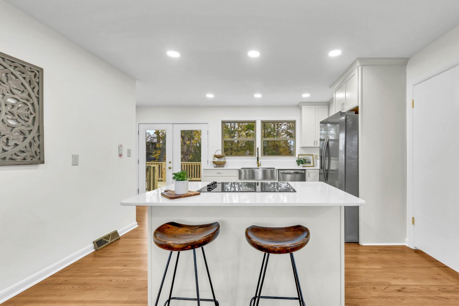 This all-brick ranch is a perfect blend of timeless character and modern design. Step inside to find gleaming hardwood floors, fresh finishes, and inviting spaces throughout. The kitchen is a showstopper—featuring new quartz countertops, new cabinetry, stainless steel appliances, a farmhouse sink, and an oversized walk-in pantry. The primary suite offers a cozy fireplace, walk-in closet, and stylishly updated bath. Every corner shines with updates: new roof, windows, flooring, bathrooms, light fixtures, landscaping, gutters, and a spacious new deck. A true laundry room with sink and storage, resurfaced wrap-around driveway, and a 20x23 storm shelter in the sub-basement with poured concrete walls complete the package. Move-in ready and beautifully redone from top to bottom.