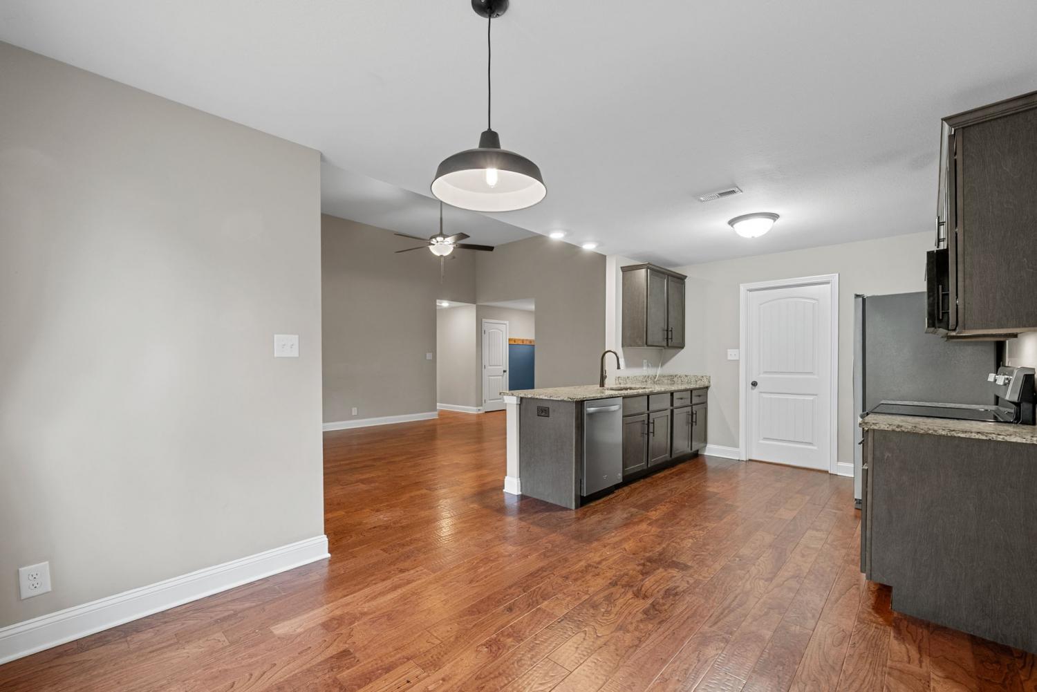Step right into your new home!!!! This Ranch style home is nestled in the heart of Clarksville’s sought-after Timber Springs Subdivision! The home offers a spacious open floor plan featuring hardwood flooring and a gourmet kitchen with stainless steel appliances. Washer and Dryer convey with the home. The living area flows effortlessly into a private backyard covered patio. This residence is designed for both comfort and entertaining. The primary suite offers vaulted ceilings with a spa-inspired ensuite bath and double vanity. Two additional bedrooms provide flexible space for guests, office, or hobby needs. You will find the large bonus located above the garage with endless possibilities for use. The garage is equipped with several industrial free-standing shelving units, making your unpacking process a breeze. Outdoors, you’ll find a well-kept, landscaped yard perfect for weekend cookouts or quiet morning coffee. The backyard is oversized and fenced.Come view your new home.