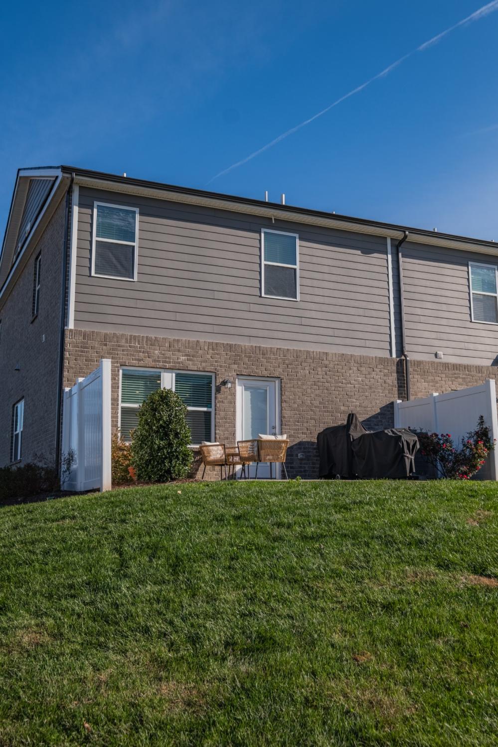 Stylish End Unit with Rare Outdoor Space in West End Station. This upgraded 1,861-sq-ft end unit stands out with its extra light, curb appeal, and private outdoor living space you won’t find elsewhere. The open main level feels bright and social, with a kitchen featuring quartz counters, a mix of white and blue cabinetry, and a custom herringbone tile backsplash. Upstairs, the loft works perfectly as an office or reading nook, and the primary suite includes a spacious layout and tile shower. Step outside to your inviting patio with added landscaping, ideal for morning coffee or evening get-togethers. Located on a dead-end street just a short stroll from the community pool. Fresh paint, professionally cleaned carpets, and updated hardware and fixtures make it move-in ready. Lebanon continues to grow with new shopping, restaurants, and entertainment coming this year and beyond. 1% lender credit with preferred lender.