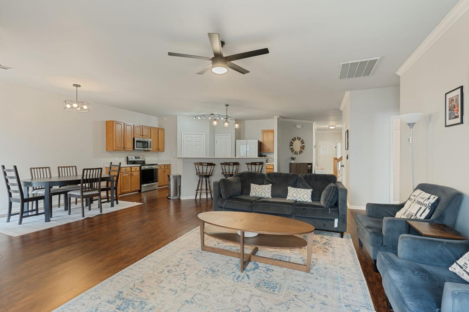 You will feel right at home the moment you step into this charming Nashville property situated on a spacious corner lot. This 3 bedroom, 2.5 bath home offers plenty of room for everyone, with thoughtful spaces designed to make everyday living easy and enjoyable. The open floor plan connects the living room, kitchen, and dining area, creating a comfortable space for family time or entertaining friends. A large, versatile flex room on the main floor can easily serve as an office, playroom, or formal dining room — whatever fits your lifestyle best. Upstairs, a spacious bonus room adds even more flexibility for work, play, or relaxation. Step outside to enjoy the fully fenced backyard — perfect for kids, pets, or simply unwinding after a long day. This home has been lovingly maintained and is truly move-in ready. Located in a friendly neighborhood with walking trails, community green space and private lake access, this home combines comfort and convenience. Don’t miss the chance to make it yours — schedule a showing today!