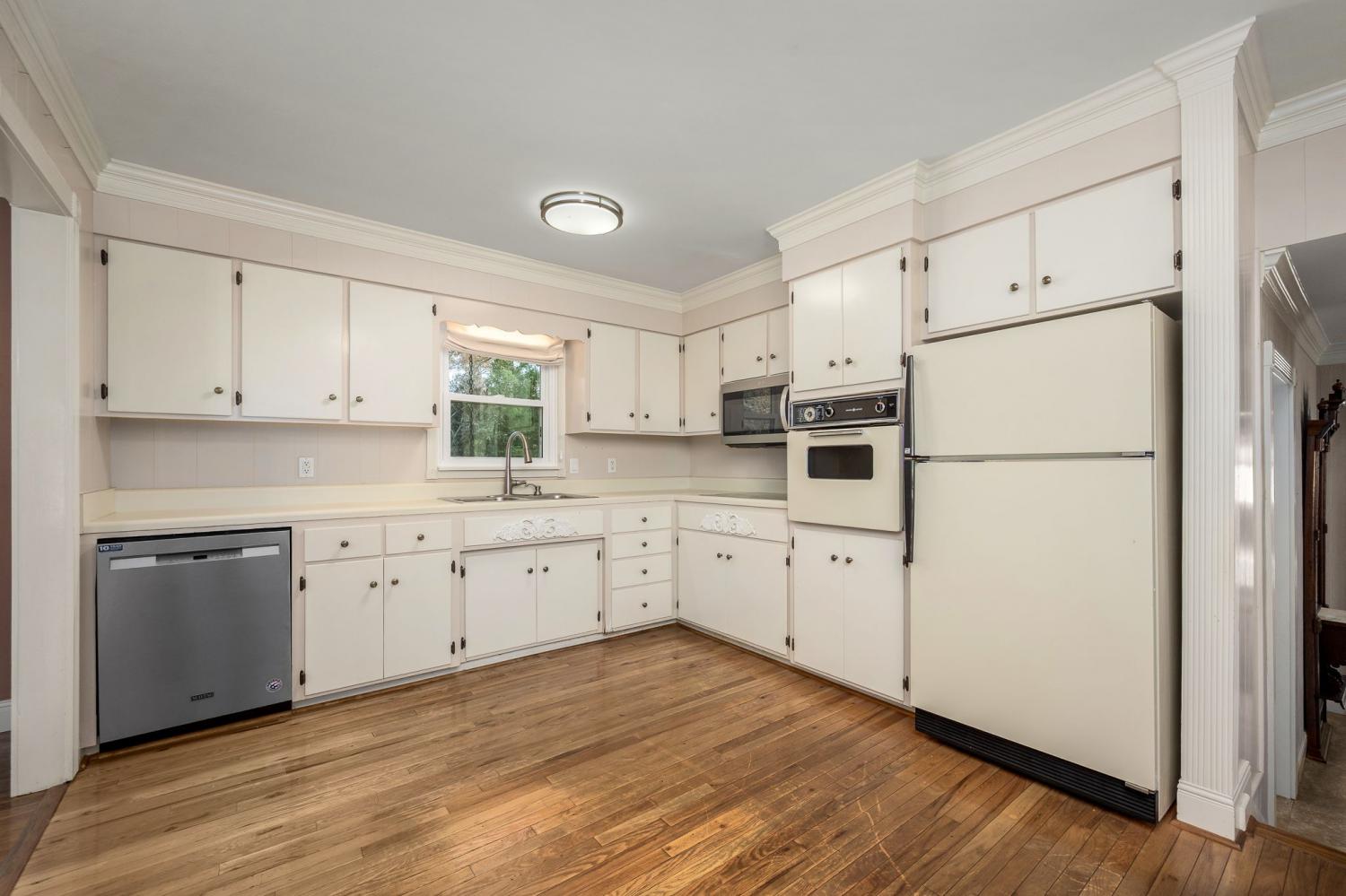 Welcome to this beautifully maintained 4 bedroom 2.5 bath home nestled on a large manicured .80 acre lot surrounded by mature trees. This classic residence offers a perfect blend of comfort, character, and space in an established neighborhood. Features include a large light filled bonus room with bar area w/sink & gorgeous stained glass piece great for entertaining, gas log fireplace w/remote, downstairs office/4th bedroom with bookshelves, all hardwood or tile upstairs, replacement windows, plantation shutters, patio courtyard with large backyard perfect for a pool! Lake Tullahoma is just right across the street and Lakewood Golf & Country Club is located within a couple minutes from this property.