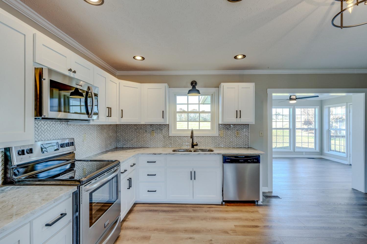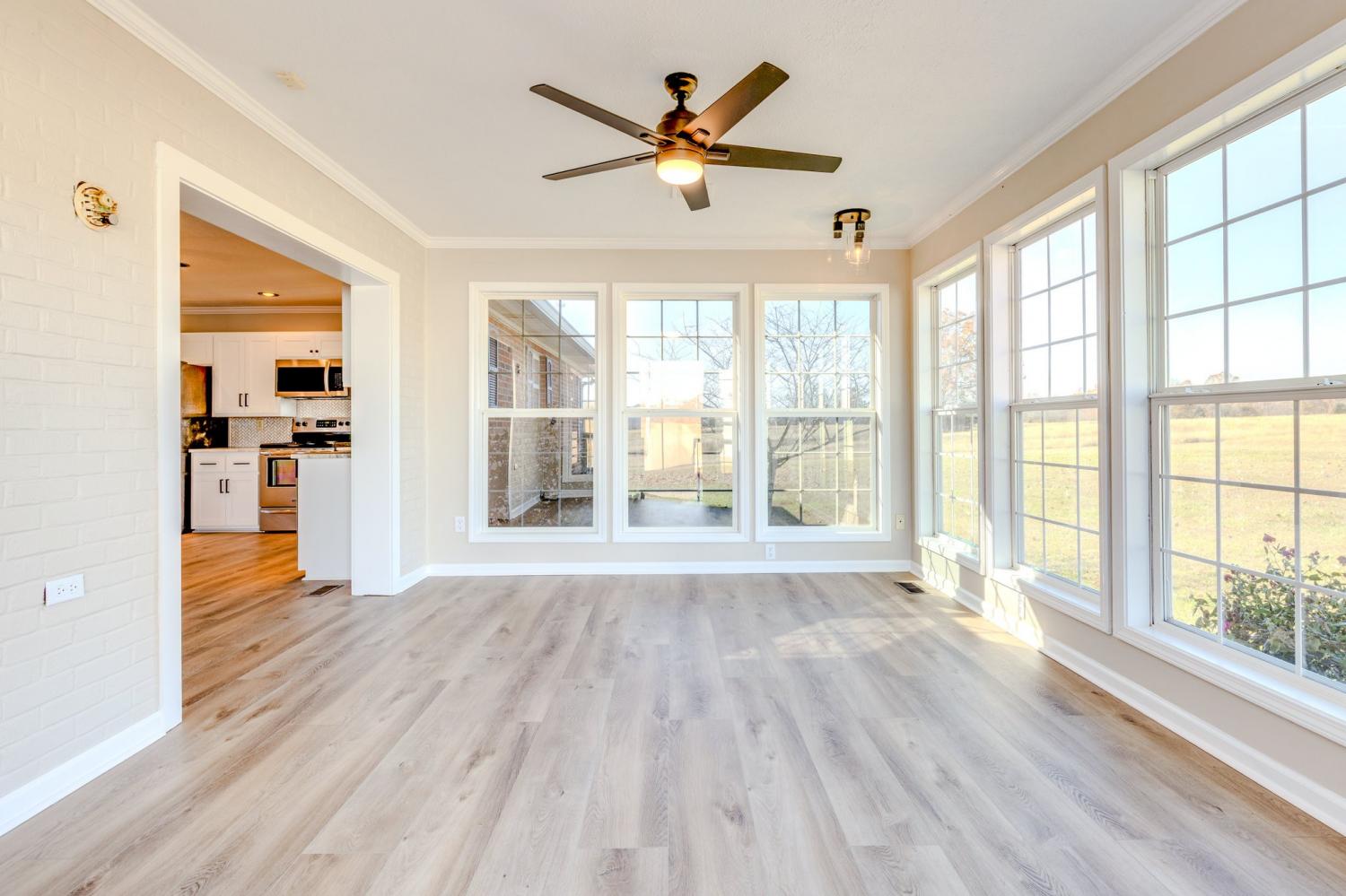 Welcome to this beautifully updated all-brick, one-level home that delivers classic curb appeal and peaceful country living on 5.01 scenic acres. The inviting front porch, accented with crisp white columns and charming black shutters, sets the tone for a home that has been thoughtfully refreshed from top to bottom. Inside, you’ll find BIG Bedrooms, Bright Bathrooms, and 1,650 square feet of comfortable, easy flow living space with only real tile and LVP flooring. Recent renovations include an updated kitchen, renovated bathrooms, new flooring, fresh paint, and new doors, creating a bright and move-in-ready interior that feels both stylish and welcoming to all. A favorite feature is the spacious sunroom, offering the perfect spot to relax, unwind, and enjoy year-round views of your own private acreage. Whether you dream of gardening, hobby farming, or simply soaking up the quiet, this property provides endless possibilities. There is a large, detached garage with electricity—great for storage, projects, or a workshop—as well as a storm shelter for added peace of mind. The large covers carport with a porch swing offers an extra touch of country charm! This Bethpage gem blends comfort, convenience, and wide-open space—an ideal opportunity for anyone looking to enjoy the best of Tennessee living.