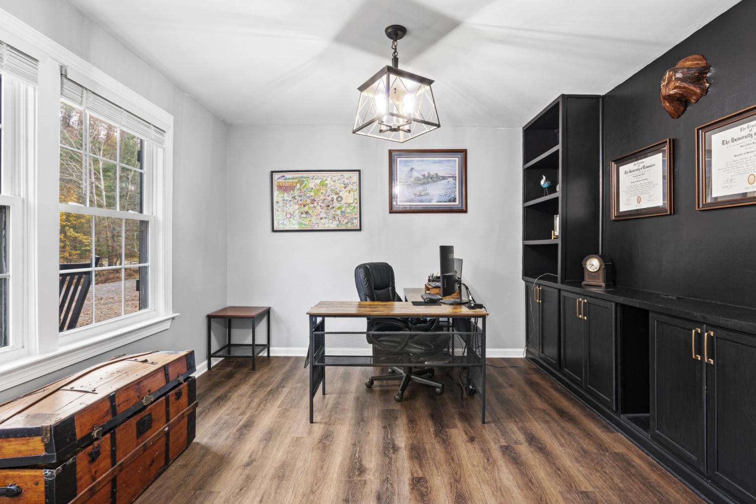 Nestled along a peaceful, year-round creek, this beautifully renovated home blends modern comfort with natural serenity. Every inch has been thoughtfully updated—new finishes, refreshed systems, and a clean, cohesive design make it feel truly move-in ready. Large windows bring in calming views of the water and surrounding trees, creating a retreat-like atmosphere right from your living room. The 3rd bedroom is being used as the office. Enjoy the sounds of the creek while relaxing on the patio, hosting friends, or simply unwinding at the end of the day. With its fully updated interior, low-maintenance exterior, and the rare perk of creekside living without the worry, this home offers the perfect mix of charm, style, and peace of mind.