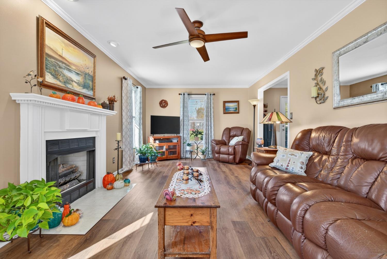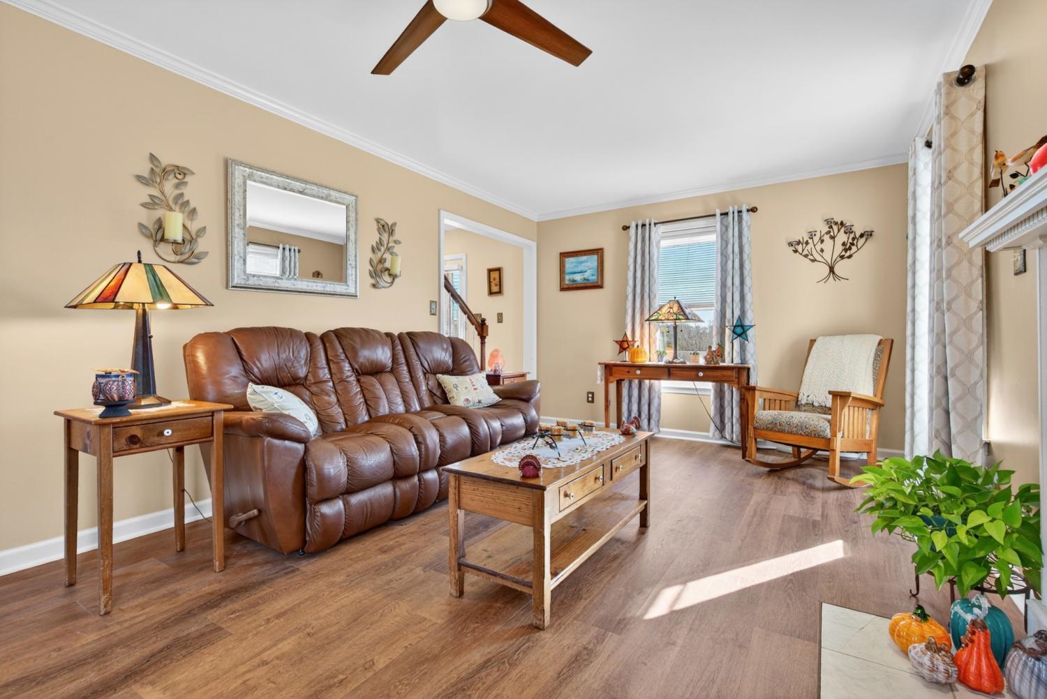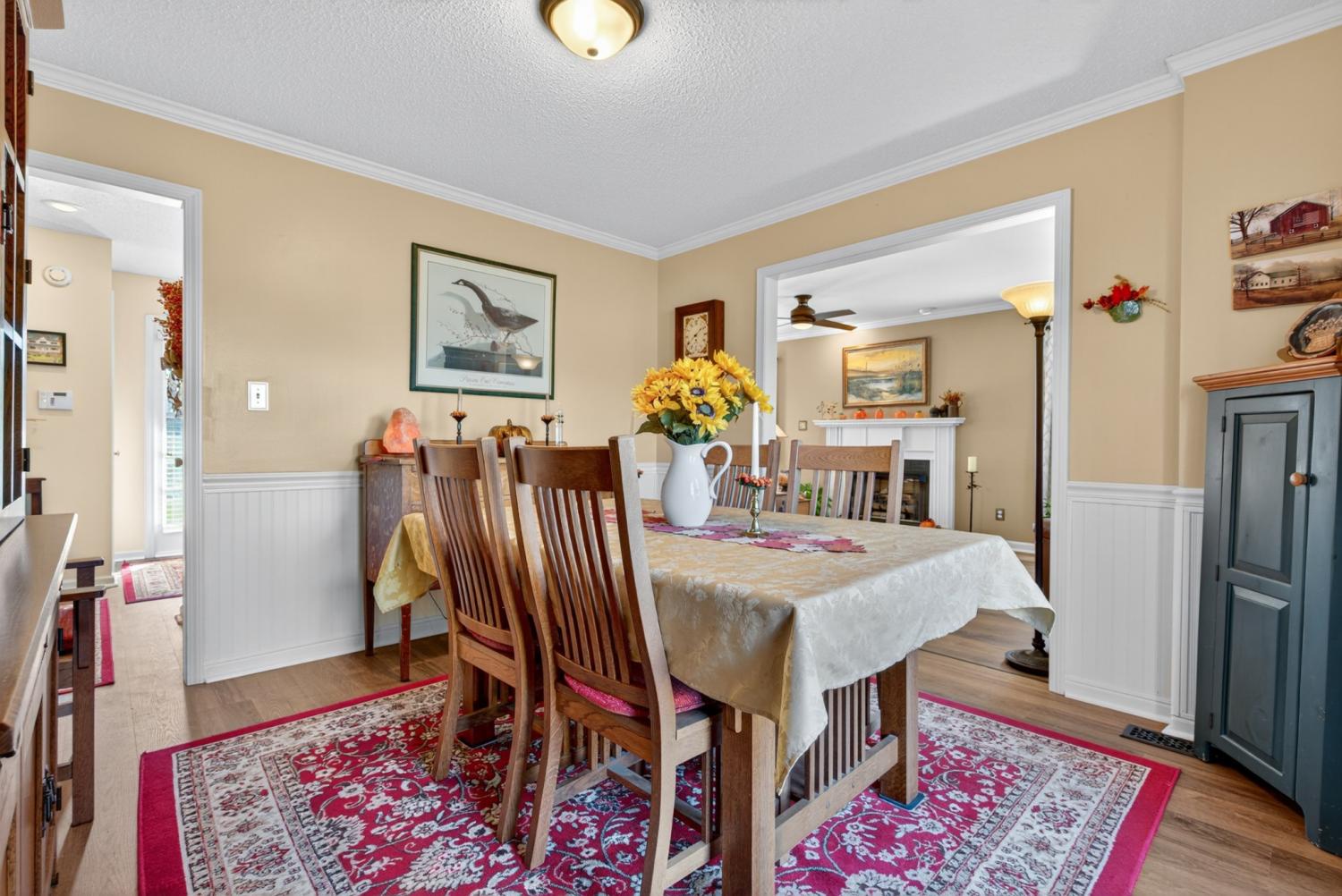 Beautiful 3 bedroom, 2.5 bath home offering 2,358 square feet of living space on a spacious .56-acre lot. The property features a fully fenced backyard lined with mature fruit trees, creating both privacy and charm. Trex decking offers low maintenance carefree relaxing outdoors. Inside, the home offers new LVP flooring in the main areas, an inviting eat-in kitchen with granite countertops and a separate dining room perfect for entertaining. The basement includes a convenient two-car garage as well as a cozy den/office area, providing flexible space for work or relaxation. With comfortable living areas and a large outdoor space, this home is ideal for relaxing or hosting holidays with your loved ones.