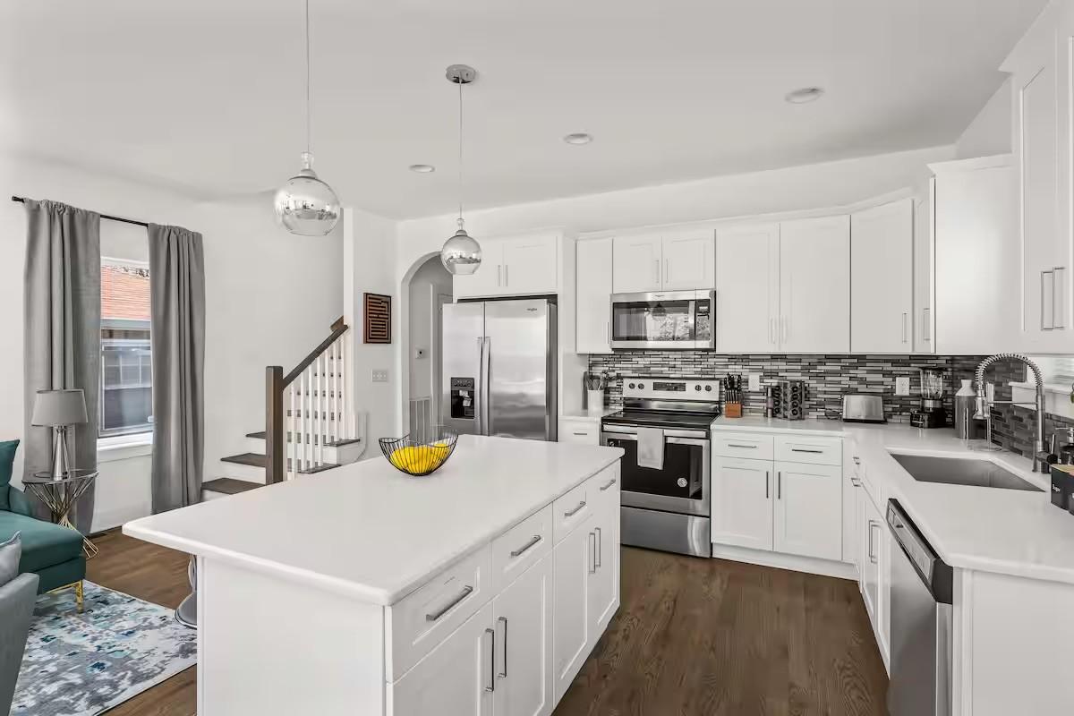 This home is a stunning, income-producing modern property in the heart of Nashville—offering a rare blend of luxury, design, and location. This three-level, four-bedroom, four-bathroom home with a large bonus room was built for both comfort and entertainment, featuring a bold, music-inspired interior and an open-concept layout perfect for hosting or relaxing. The chef’s kitchen includes stainless steel appliances, quartz countertops, and custom cabinetry, opening to a spacious living and dining area ideal for gatherings. Upstairs, the primary suite boasts a walk-in closet and spa-style bath, while the massive third-floor bonus room offers four queen beds and lounge space—perfect for guests or short-term rentals. With high-speed fiber internet, a 65” 4K Smart TV, in-home laundry, and free parking, every detail is turnkey and professionally designed. Located just minutes from Broadway, Vanderbilt University, and Nashville’s top attractions, this property delivers exceptional value as a high-performing STR.